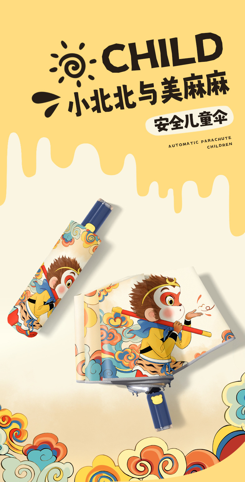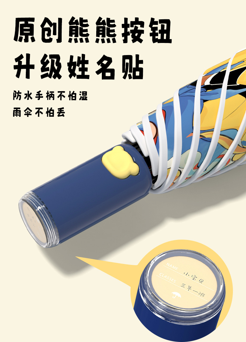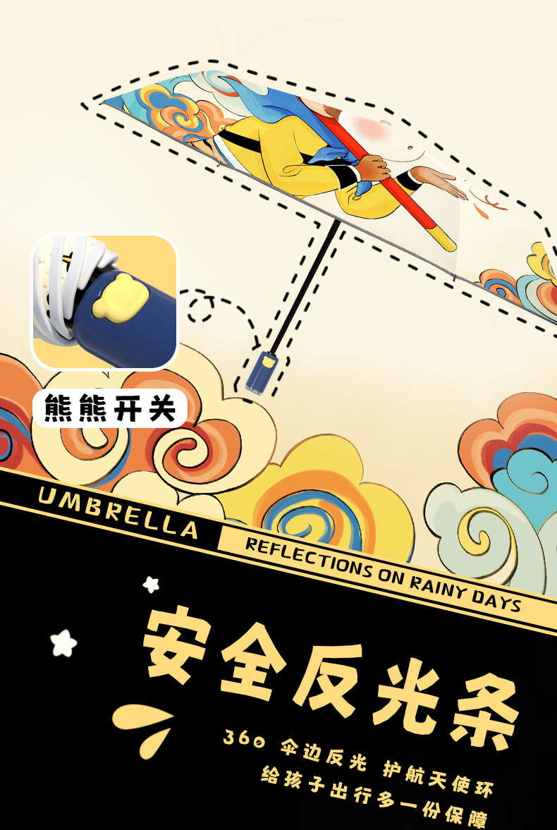 만화 애니메이션 안전 반등 방지 자동 우산 소년 학교 우산 휴대용 접히는 맑고 비오는 우산