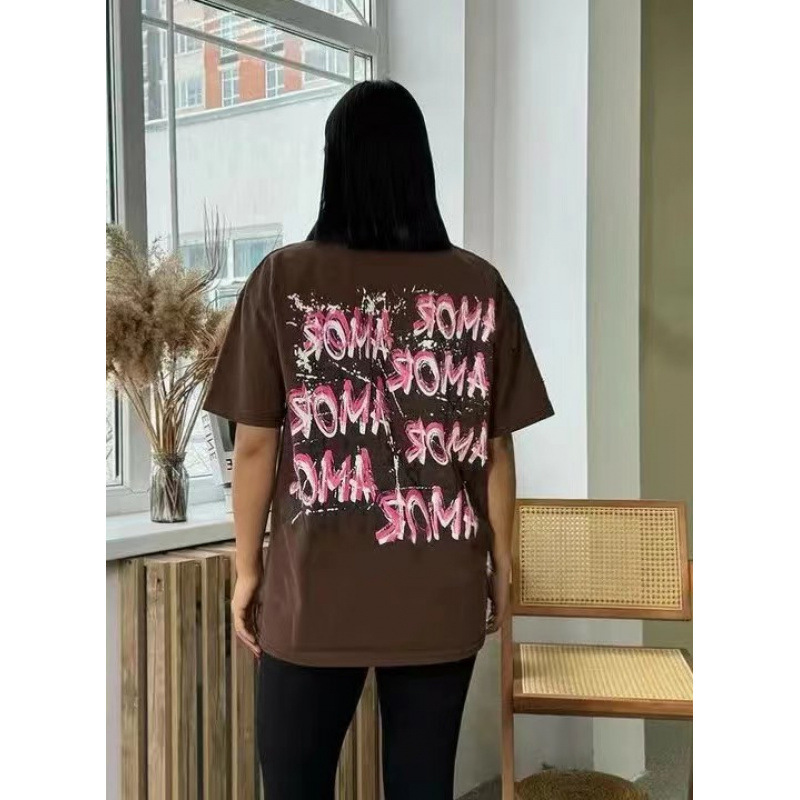 아메리칸 스타일 레트로 퓨어 코튼 헤비 듀티 반팔 티셔츠 여성의 여름 새로운 디자인 센스 레터 인쇄 느슨한 슬림 핏 탑스토어 가기