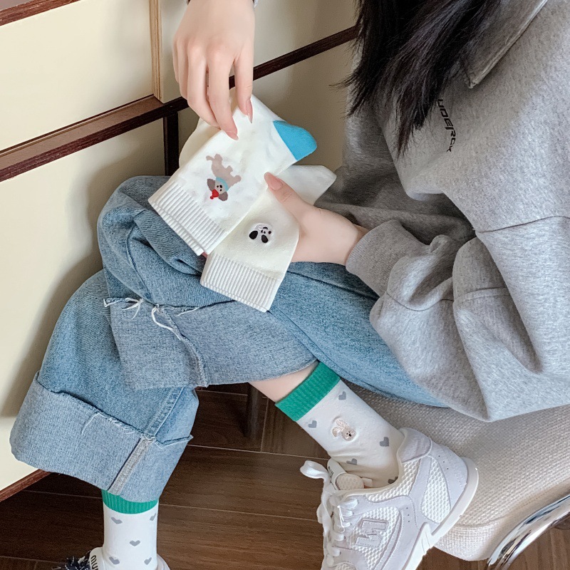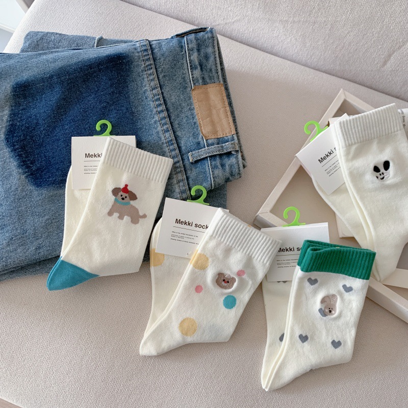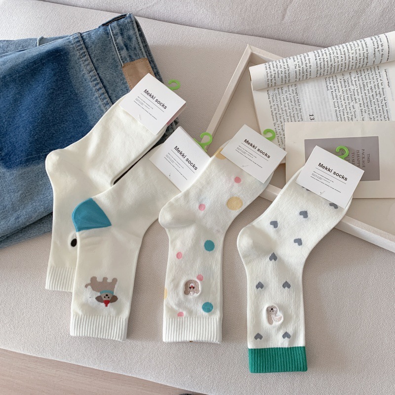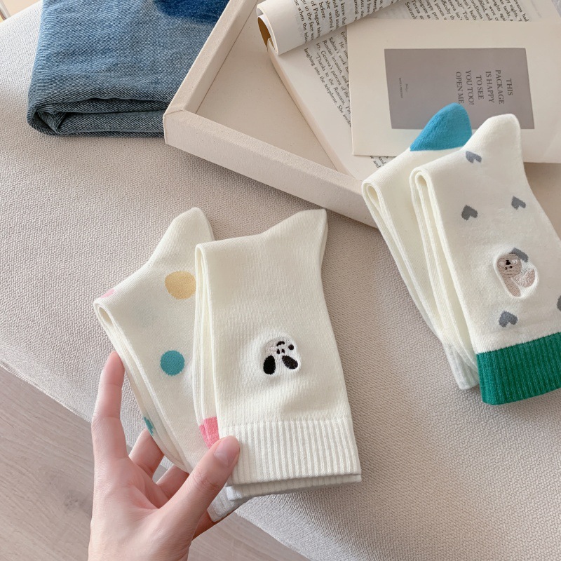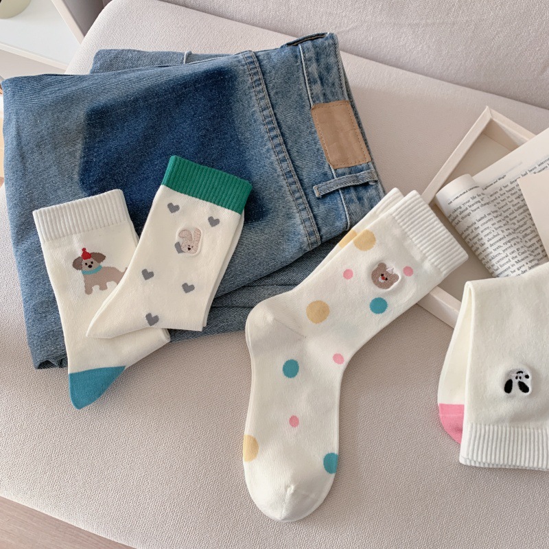 2025 년 이른 봄 새로운 사탕 색깔의 얇은 통기성 더미 양말 귀여운 강아지 자수 학술 스타일 튜브 양말스토어 가기