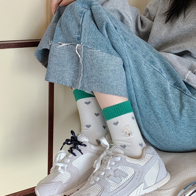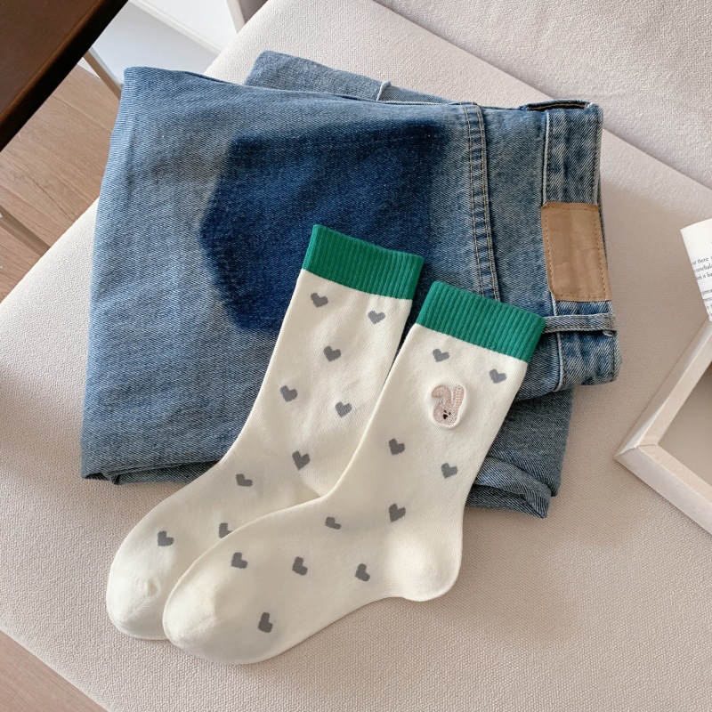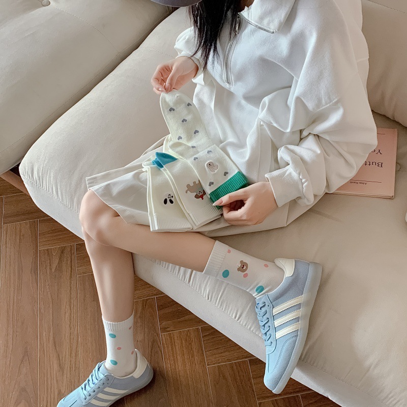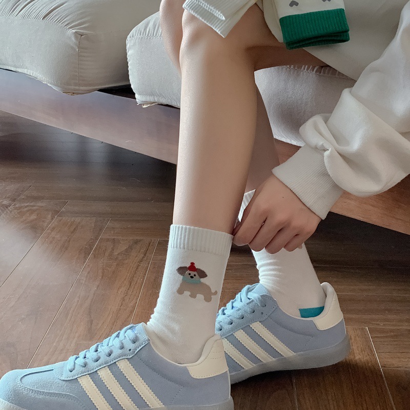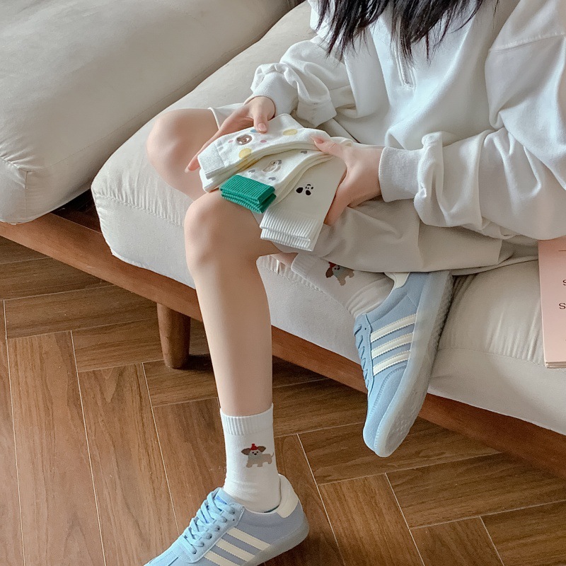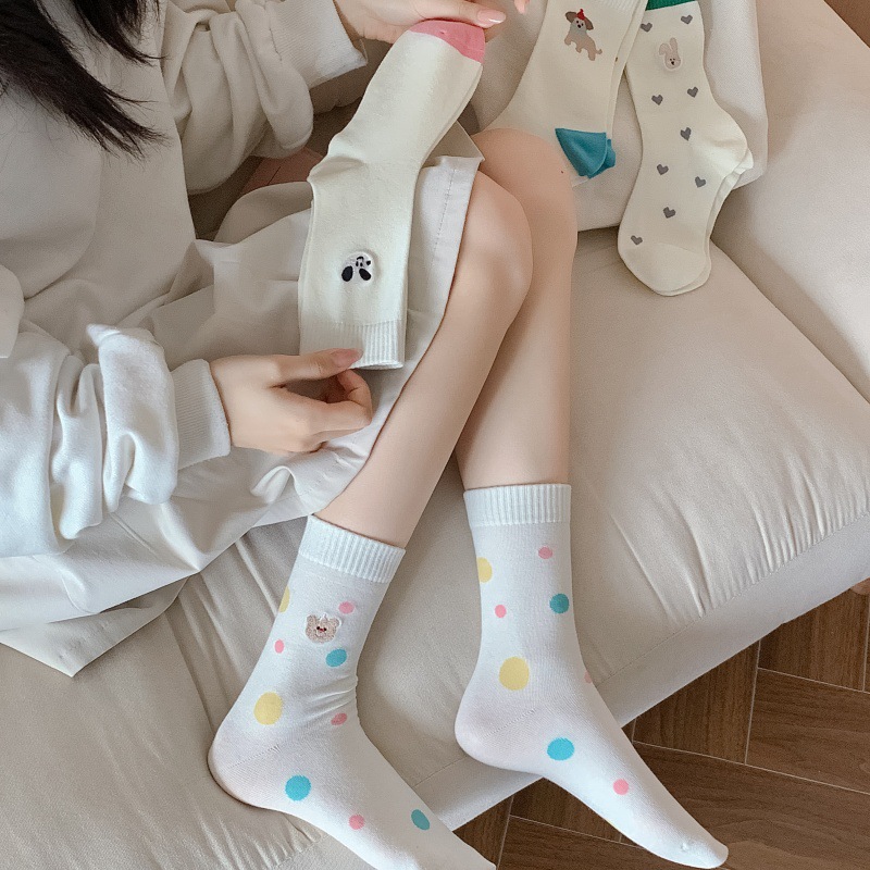 2025 년 이른 봄 새로운 사탕 색깔의 얇은 통기성 더미 양말 귀여운 강아지 자수 학술 스타일 튜브 양말스토어 가기
