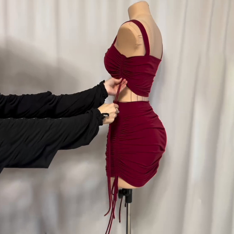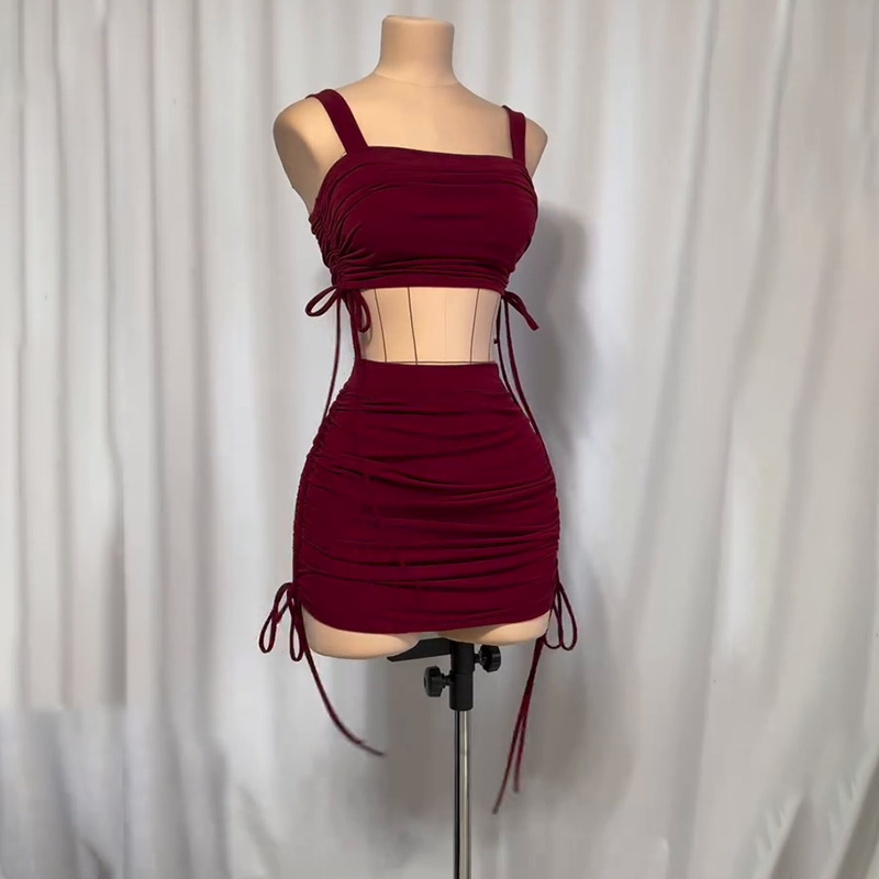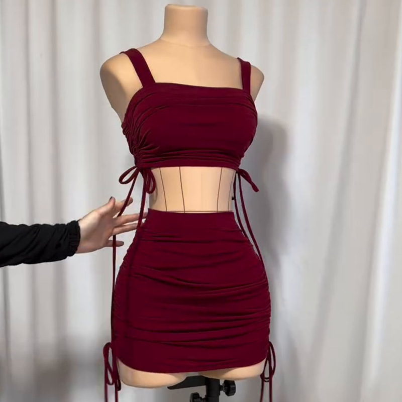 2025 여름 새로운 국경 유럽 및 미국 대외 무역 여성 패션 스트랩 섹시한 끈이없는 힙합 스커트 뜨거운 소녀 세트