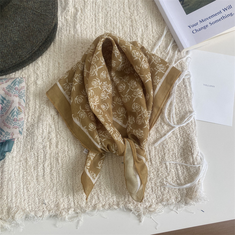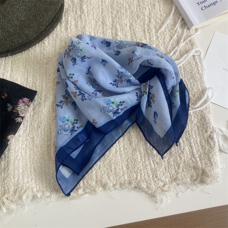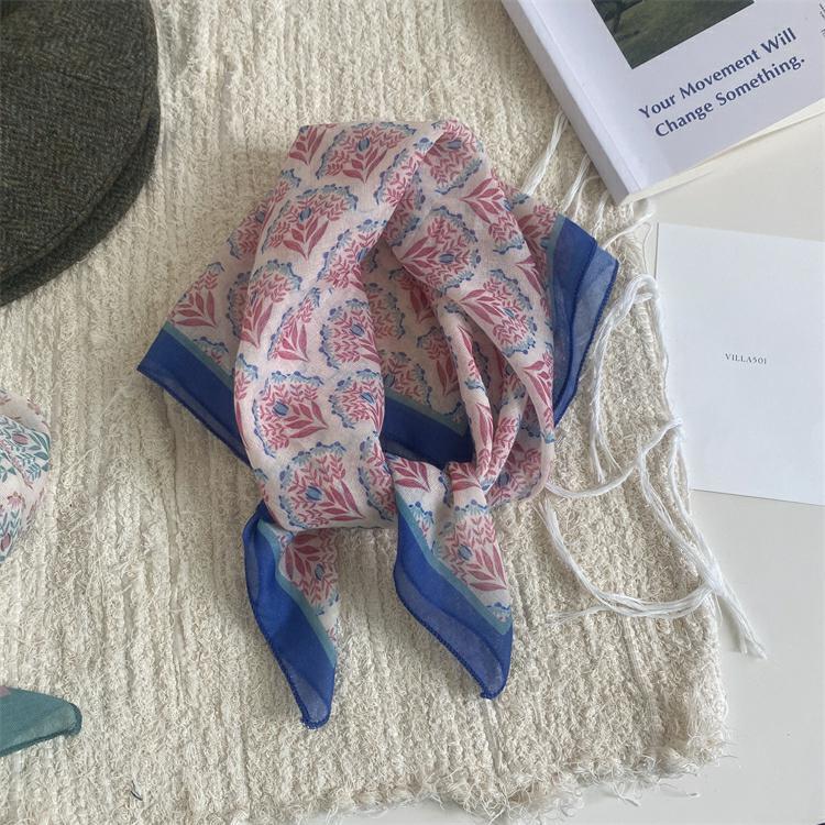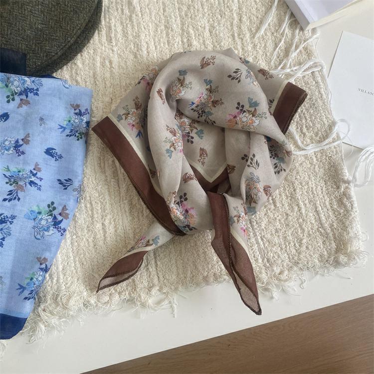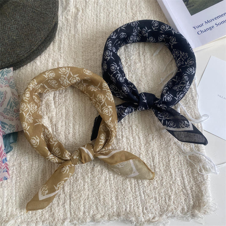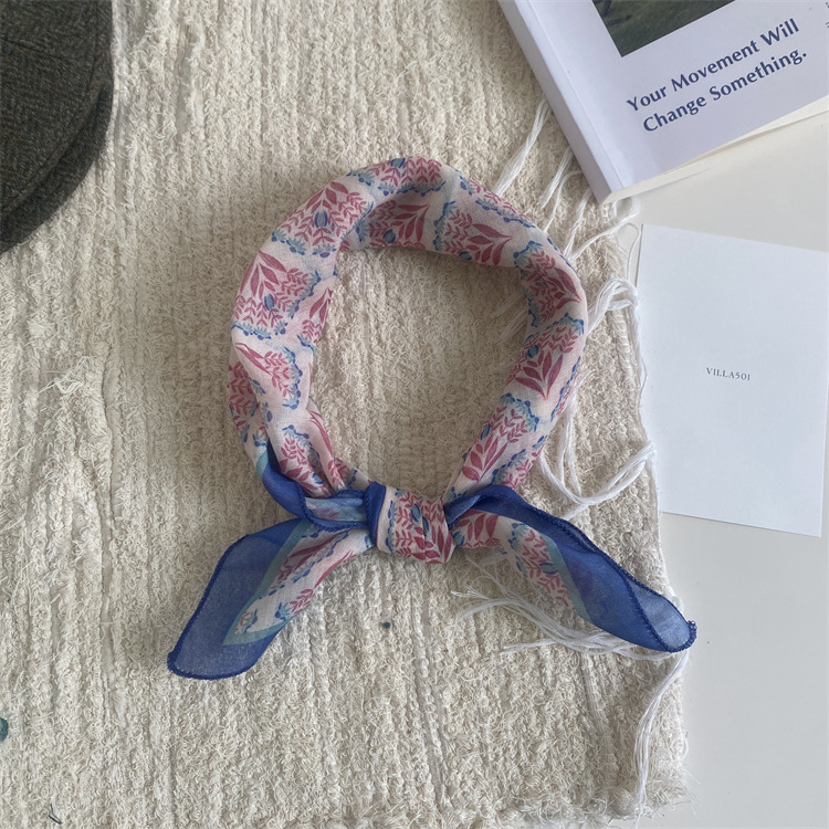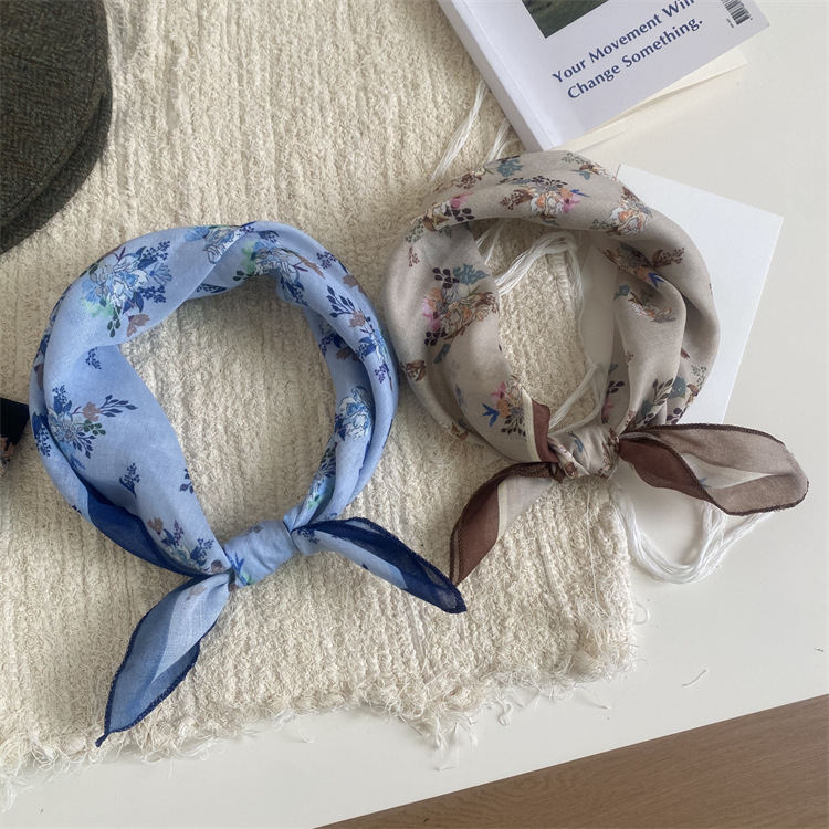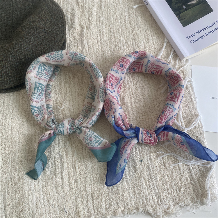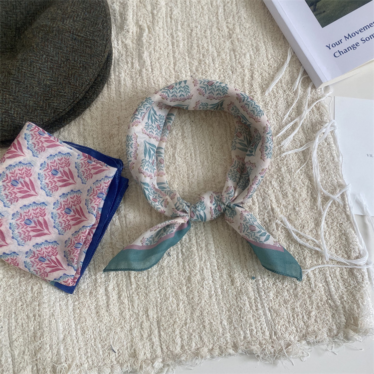 2025 새로운 작은 광장 스카프 여성의 봄과 여름 머리 스카프 머리 벨트 한국 인쇄면 및 리넨 스카프 장식 스카프