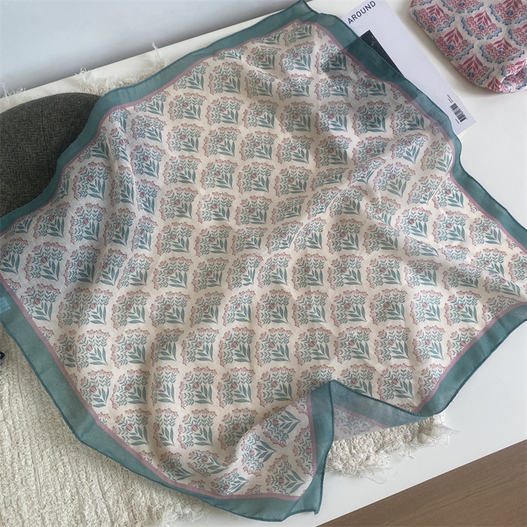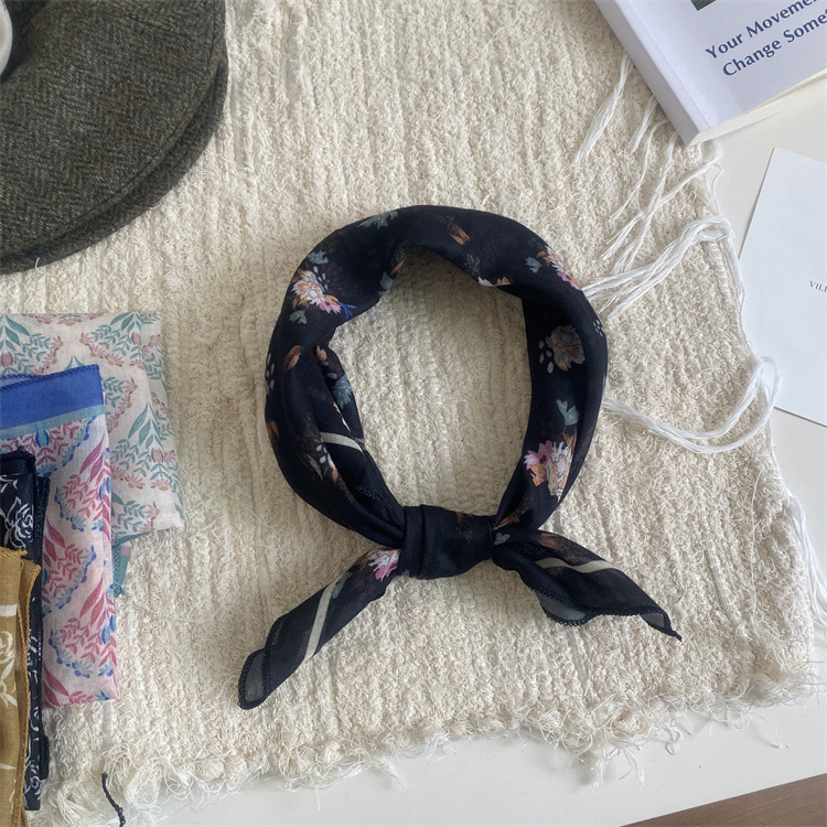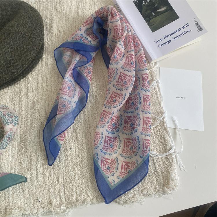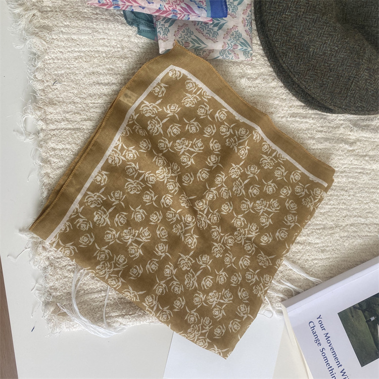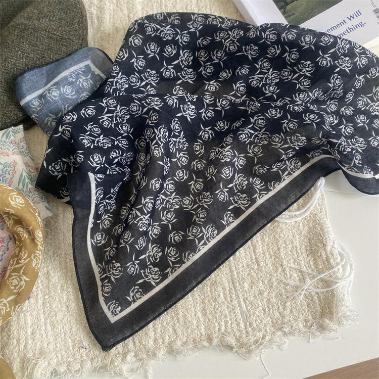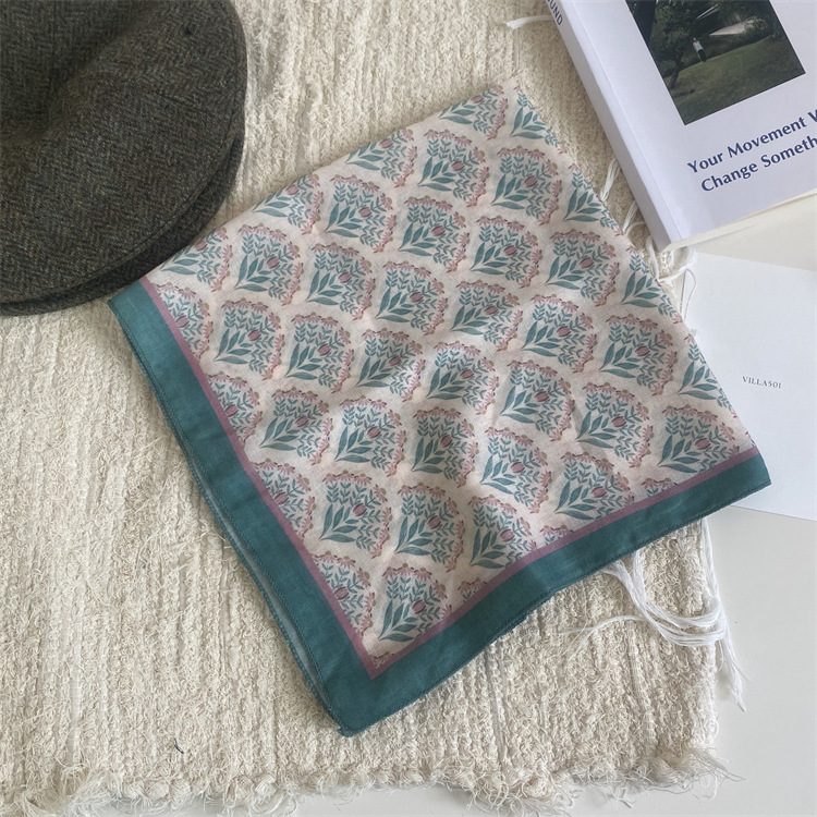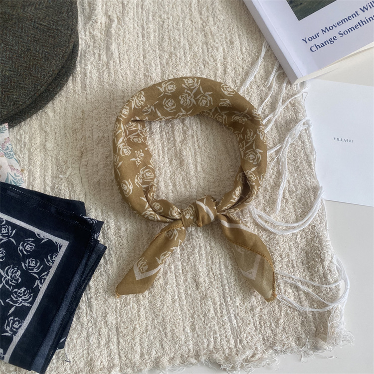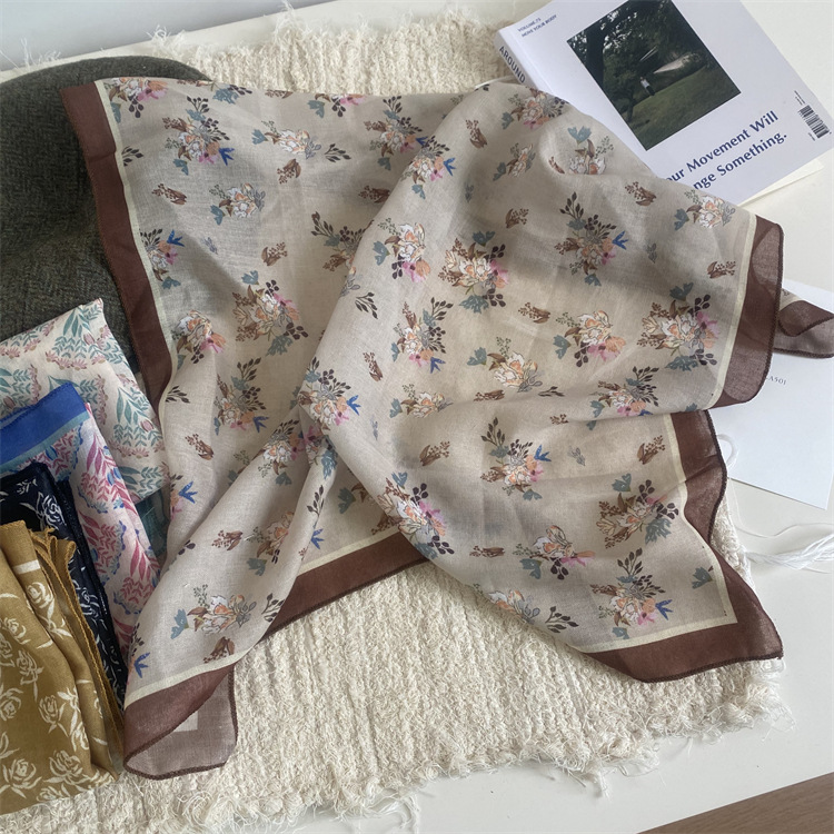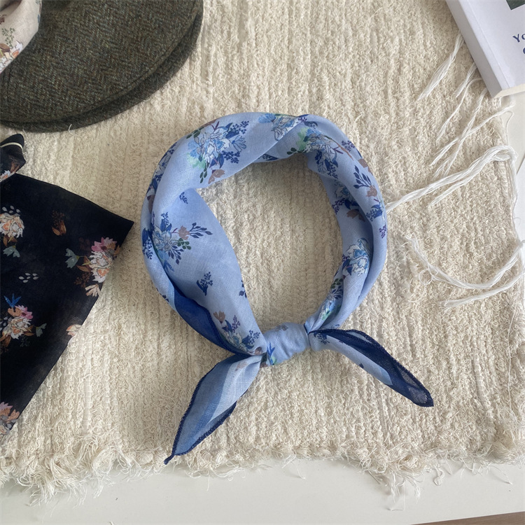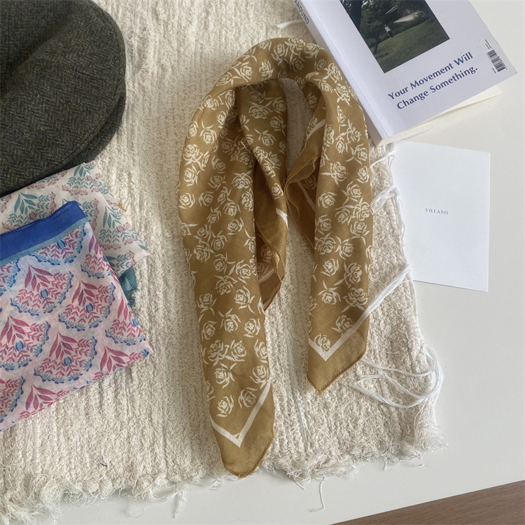 2025 새로운 작은 광장 스카프 여성의 봄과 여름 머리 스카프 머리 벨트 한국 인쇄면 및 리넨 스카프 장식 스카프