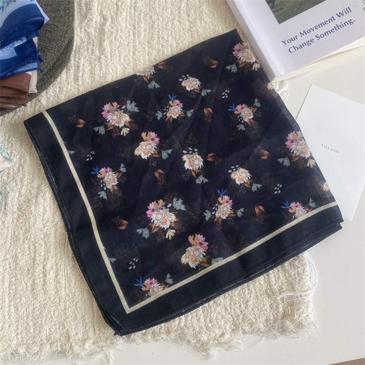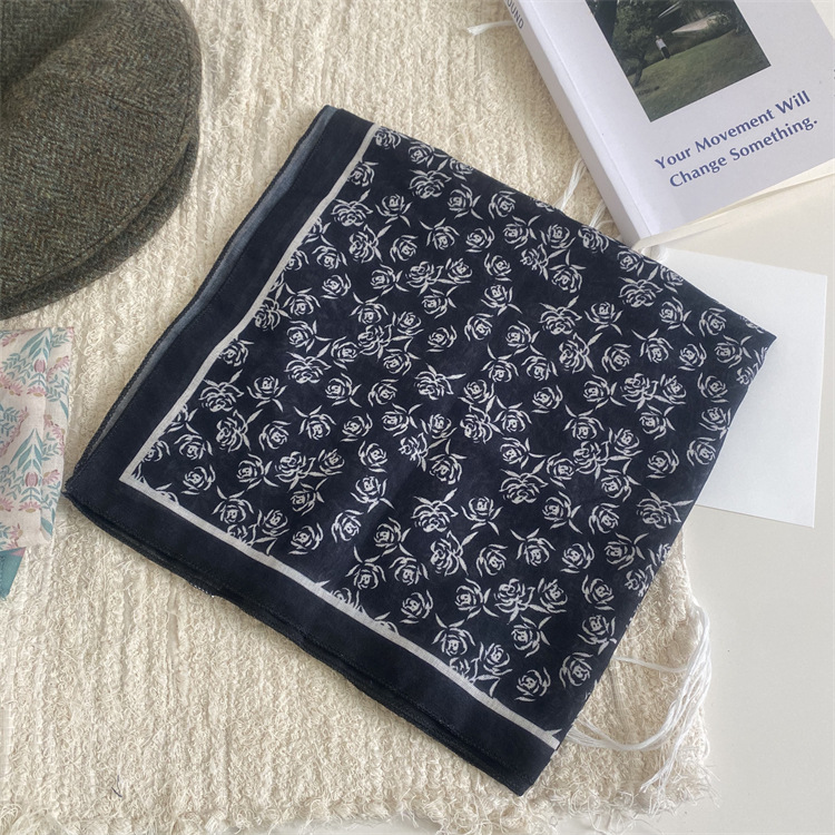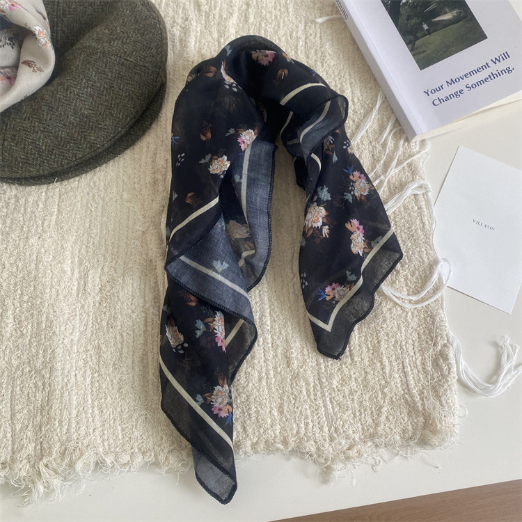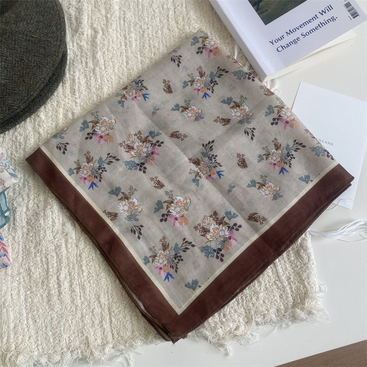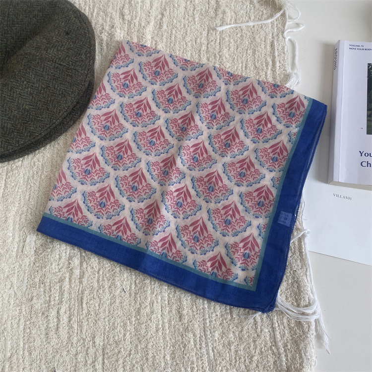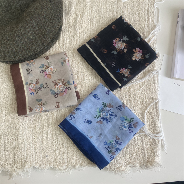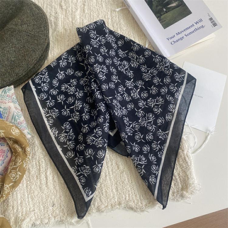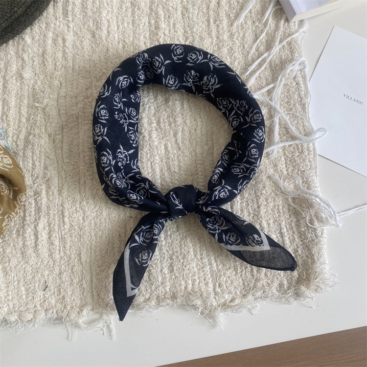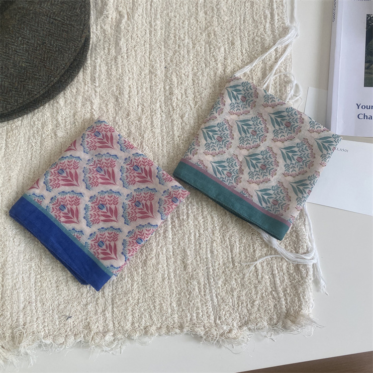 2025 새로운 작은 광장 스카프 여성의 봄과 여름 머리 스카프 머리 벨트 한국 인쇄면 및 리넨 스카프 장식 스카프