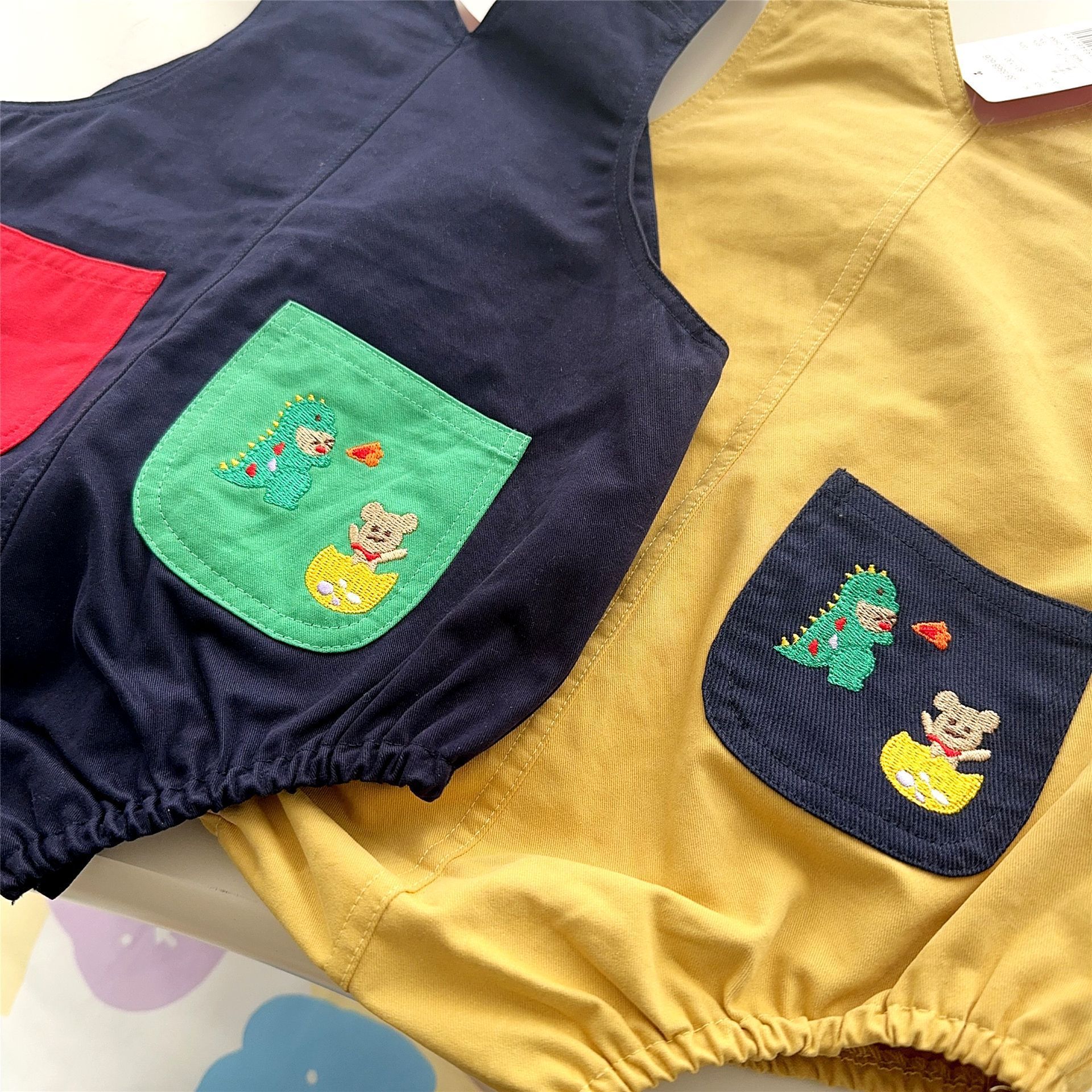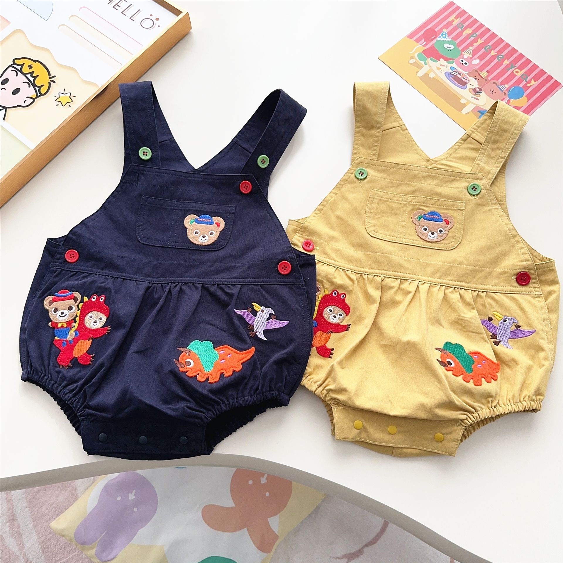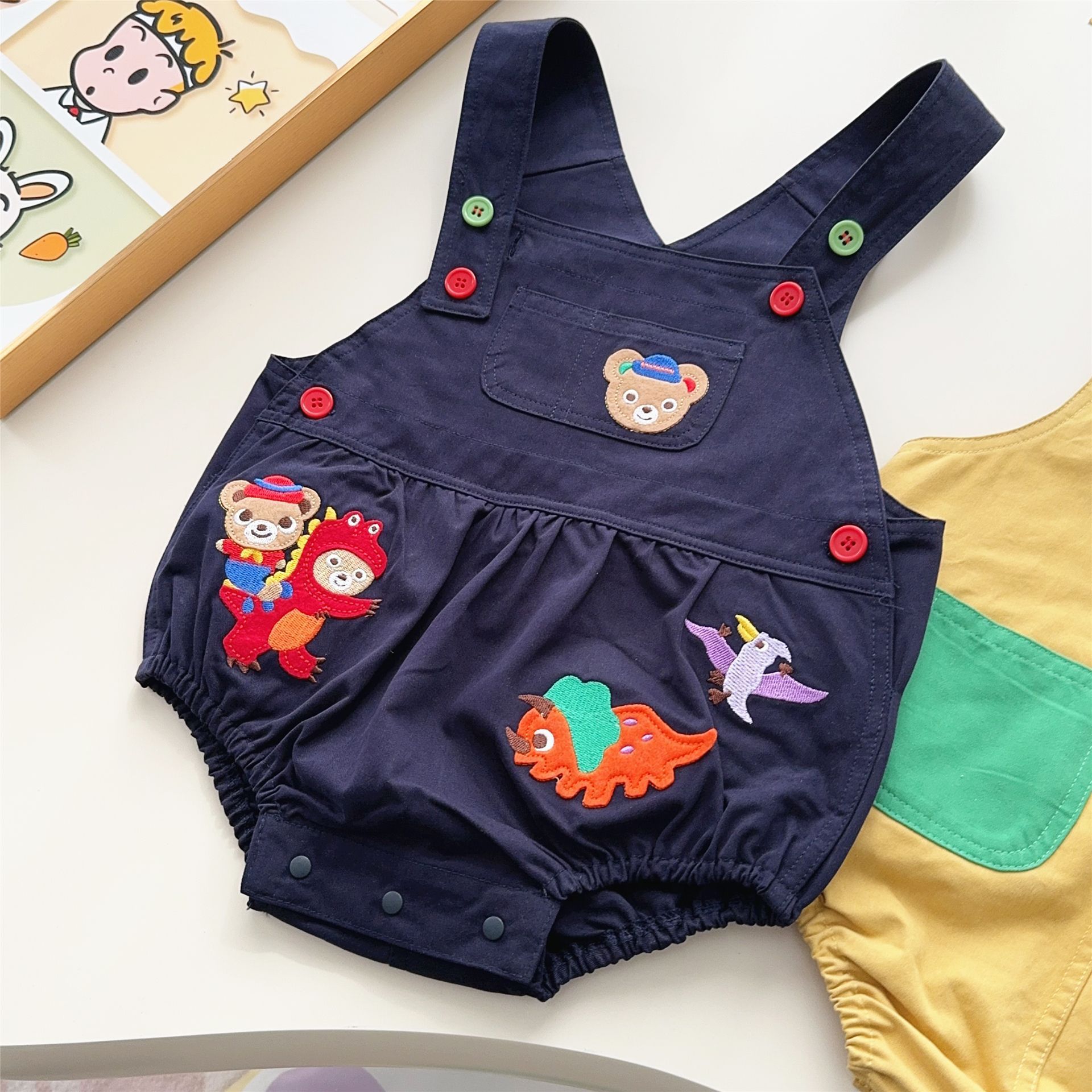 귀여운 멜빵바지 25 여름 신상 남아 여아 아동 곰 자수 공룡 프로레드 팬츠 반바지 7002