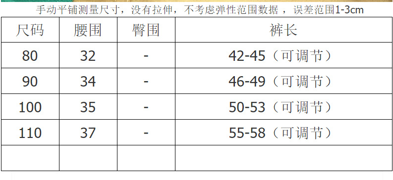 手动平铺测量尺寸,没有拉伸,不考虑弹性范围数据 ,误差范围1-3cm