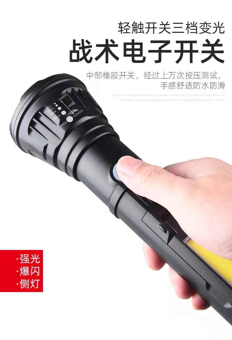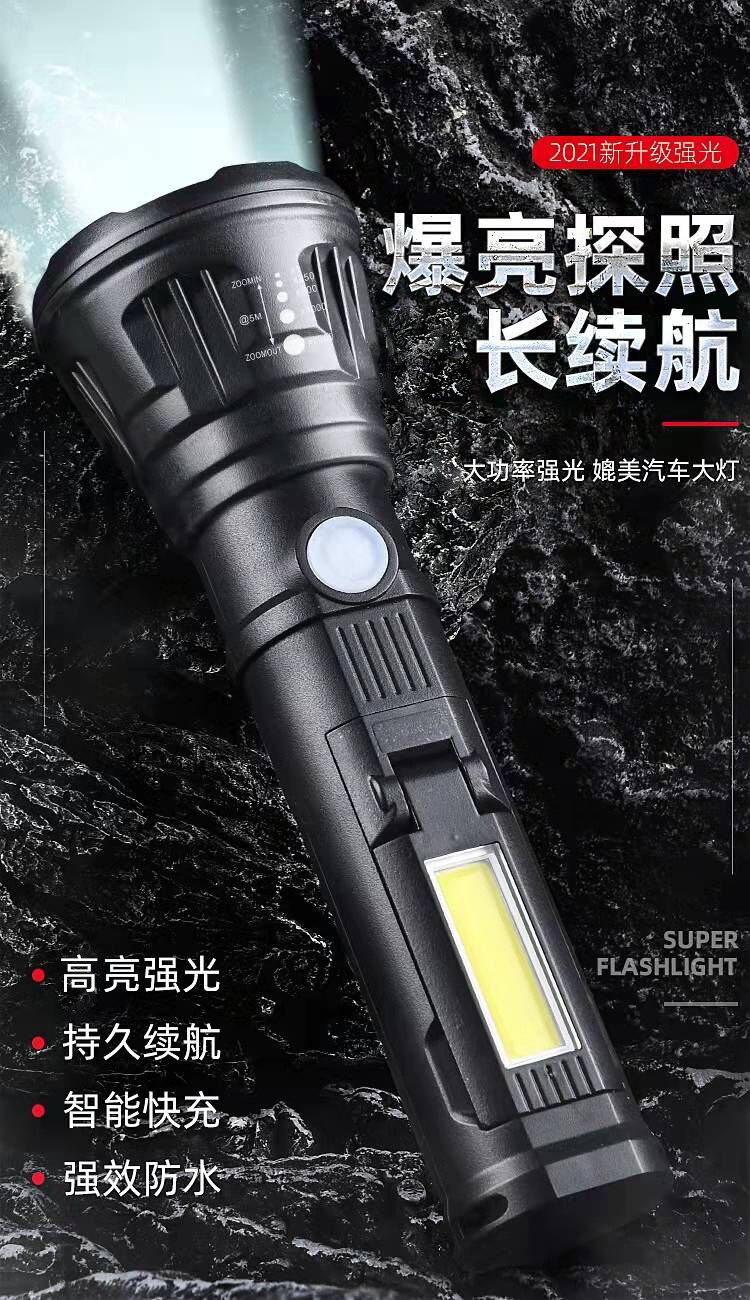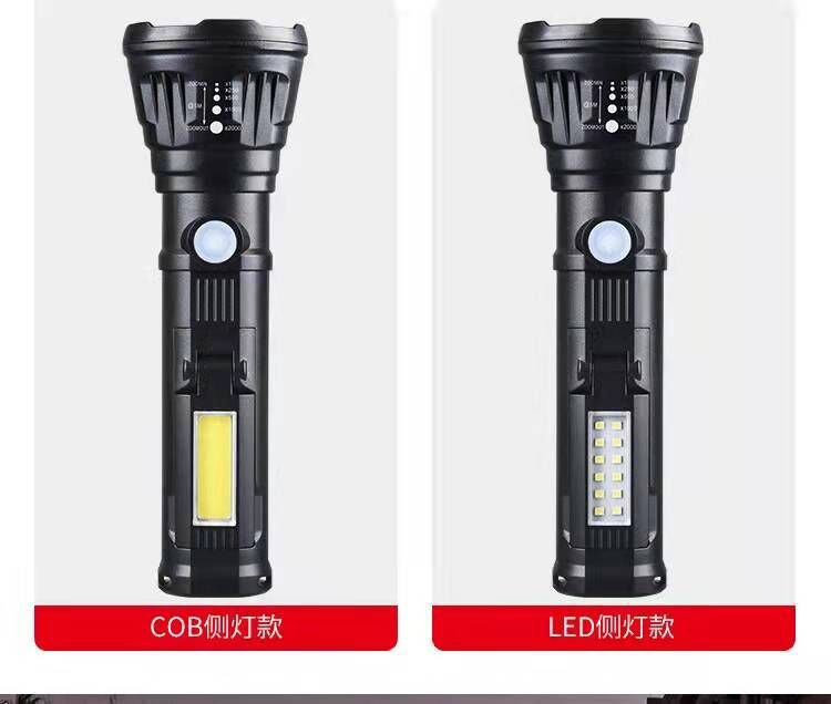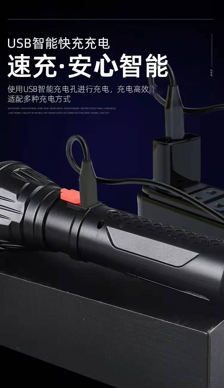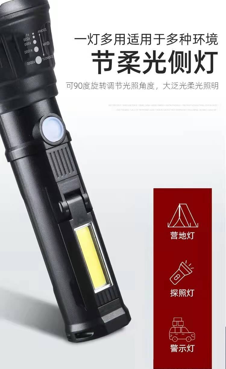 듀얼 광원 줌 강한 빛 손전등 야외 방수 USB 충전 텔레스코픽 줌 다기능 손전등 LED스토어 가기