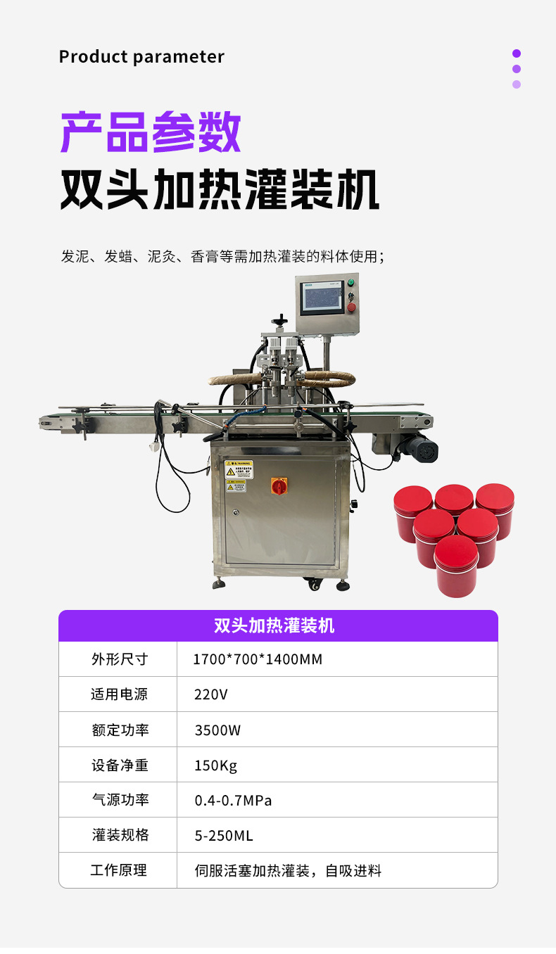 • 더블 헤드 가열 충전 기계