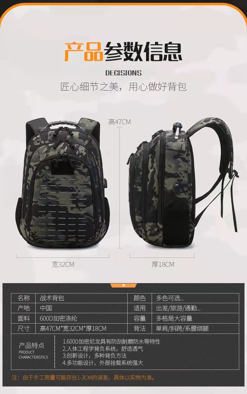 새로운 캐주얼 위장 배낭 등산 야외 수하물 배낭 여행 전술 컴퓨터 학교 가방 대용량 배낭