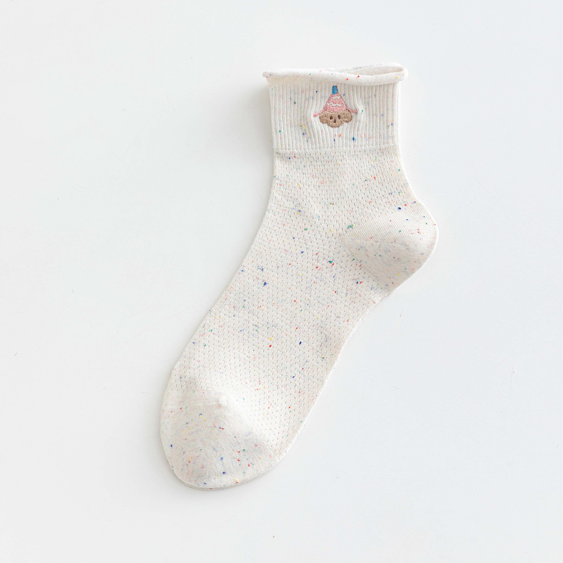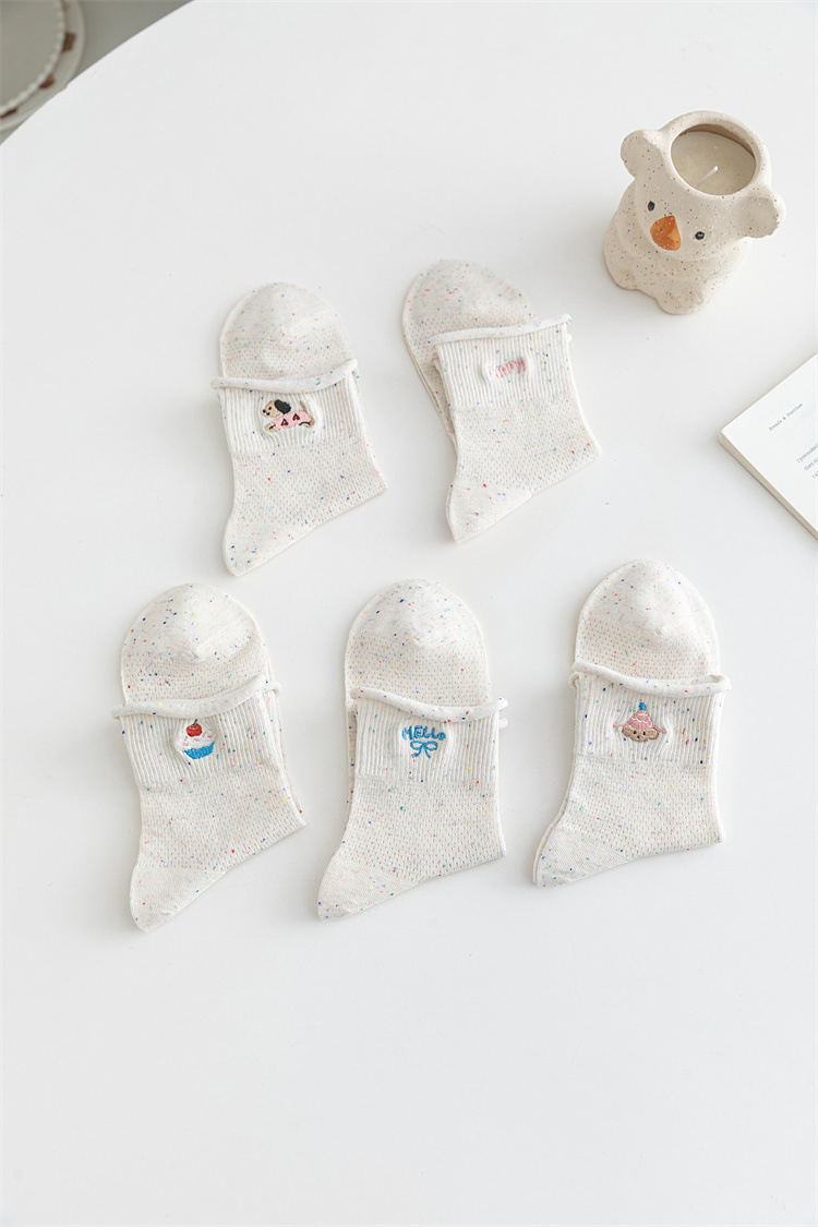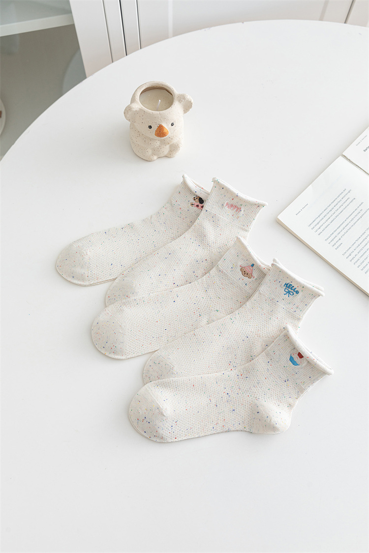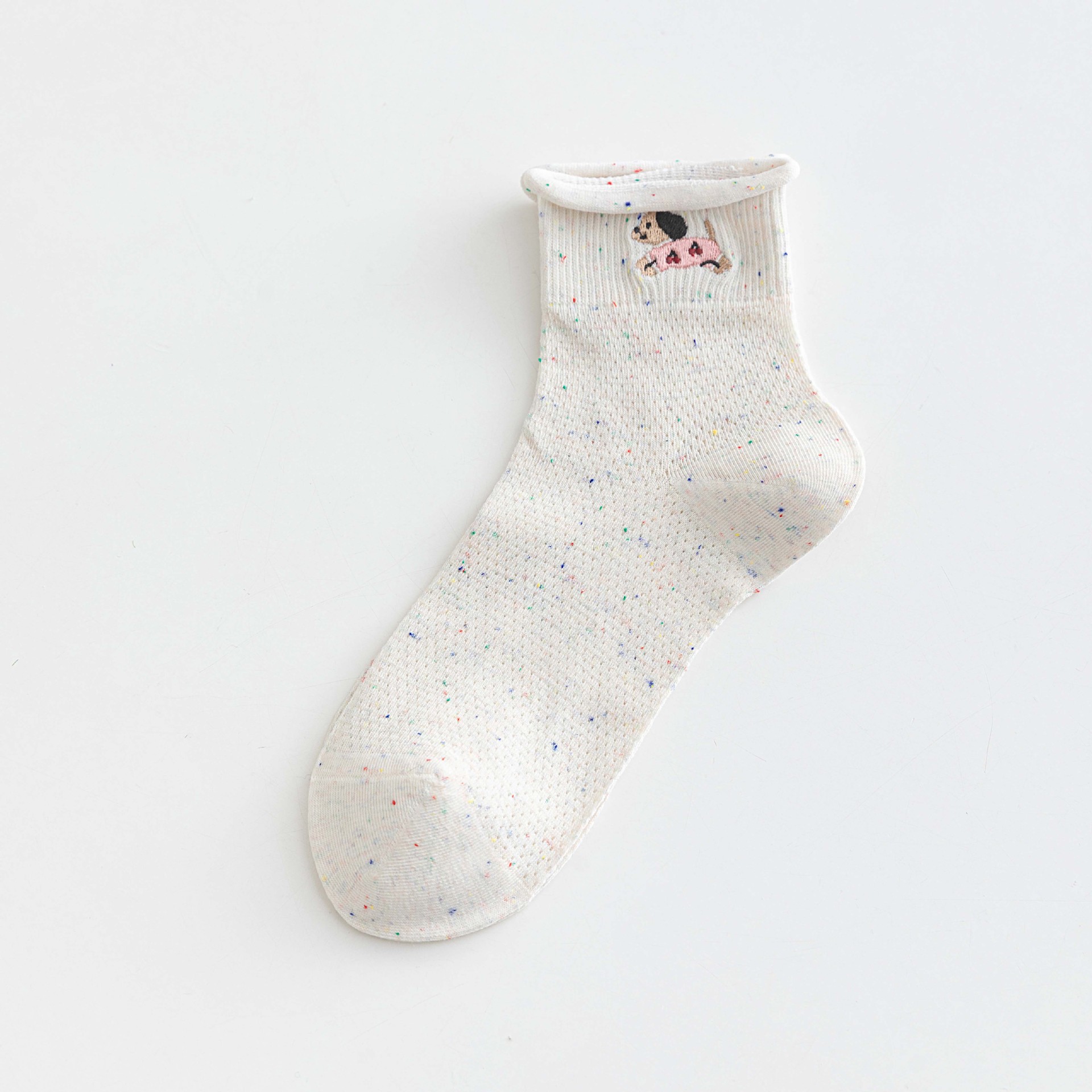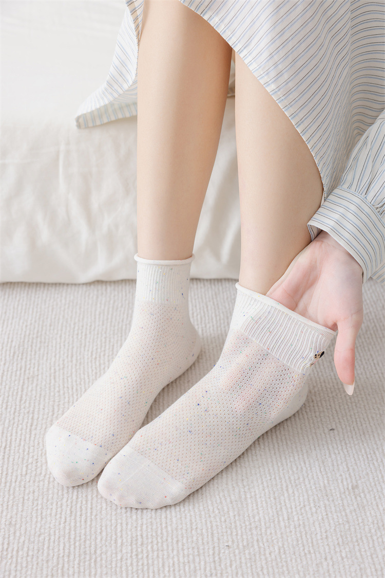봄과 여름 양말 ns 포인트 원사 면 양말 만화 강아지 빗질면 메쉬 통기성 짧은 튜브 양말 흰색 여성 양말