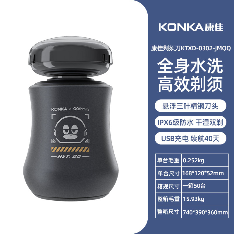 Konka 전기 면도기 가정용 완전 자동 미니 남성용 면도기 여행 휴대용 충전식 수염 면도기 국경 간스토어 가기