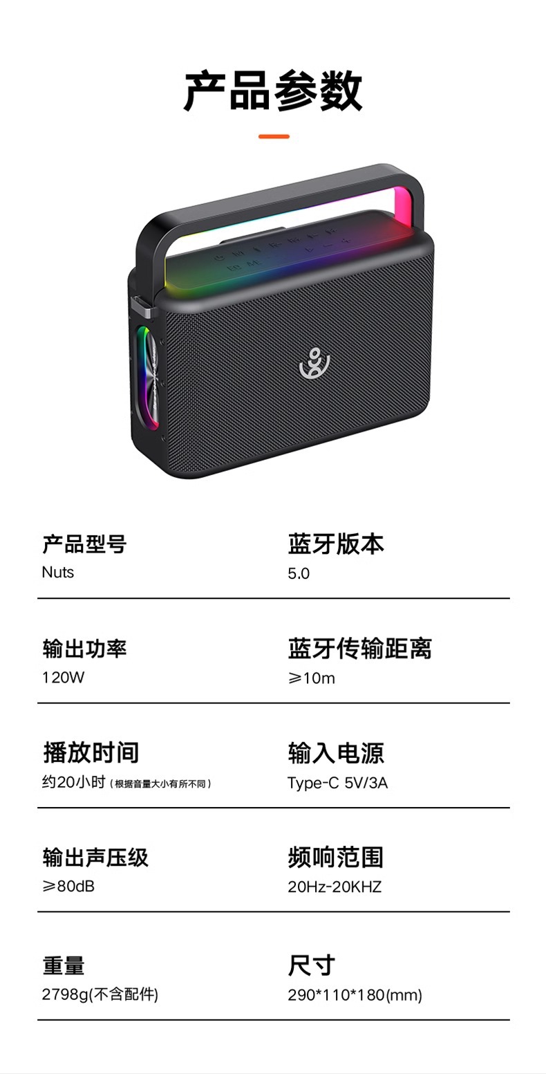 Xdobo 너츠 블루투스 스피커 120W 고출력 가족 K-노래 오디오 야외 휴대용 서브 우퍼