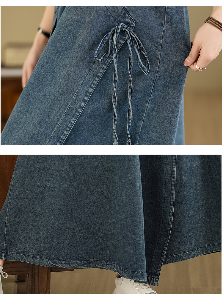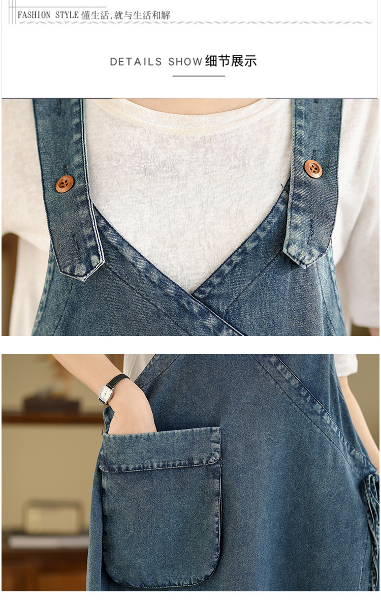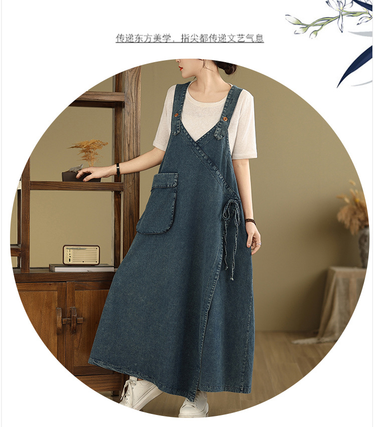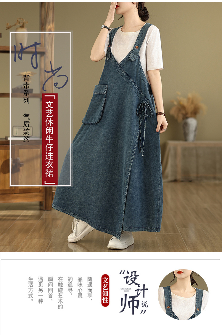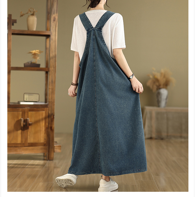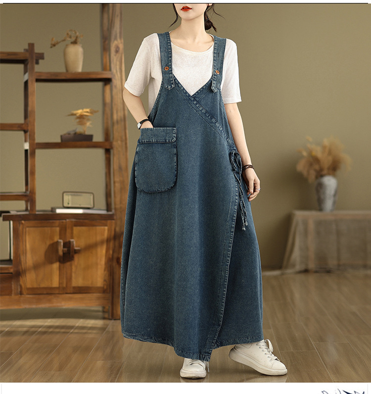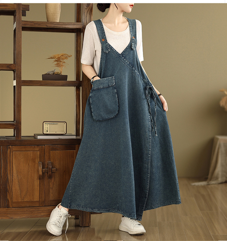빈티지 데님 서스펜더 스커트 여성 2025 년 새 봄과 가을 여름 서스펜더 스커트 느슨한 플러스 사이즈 원피스
