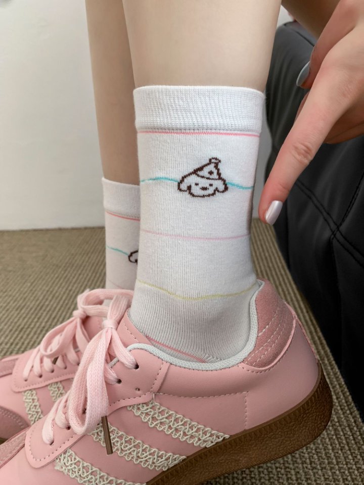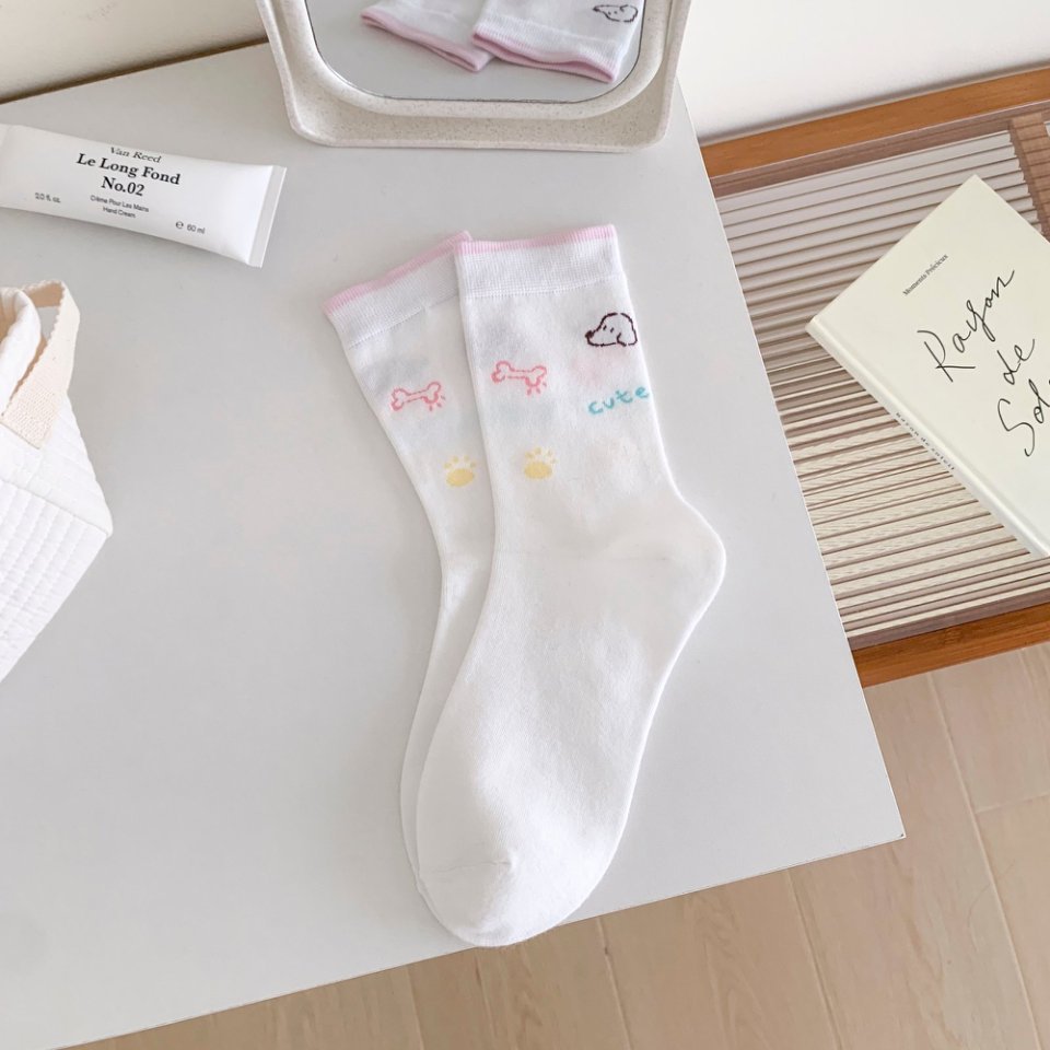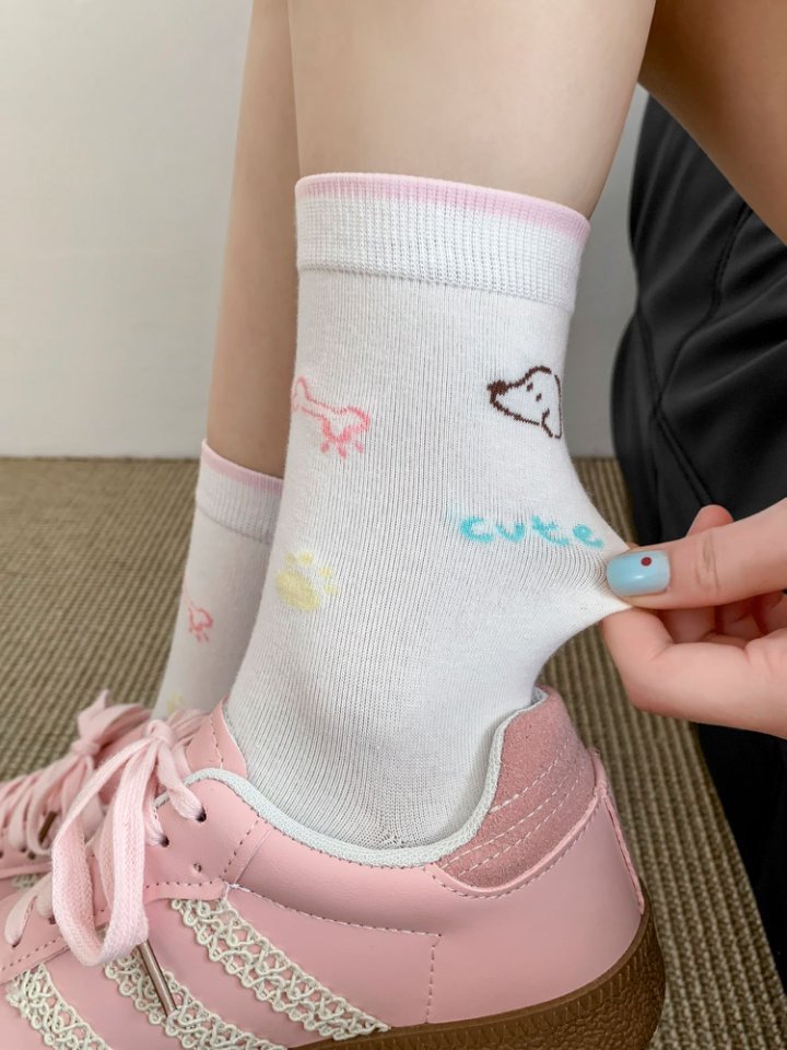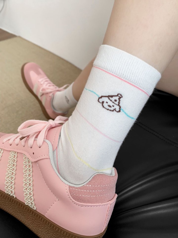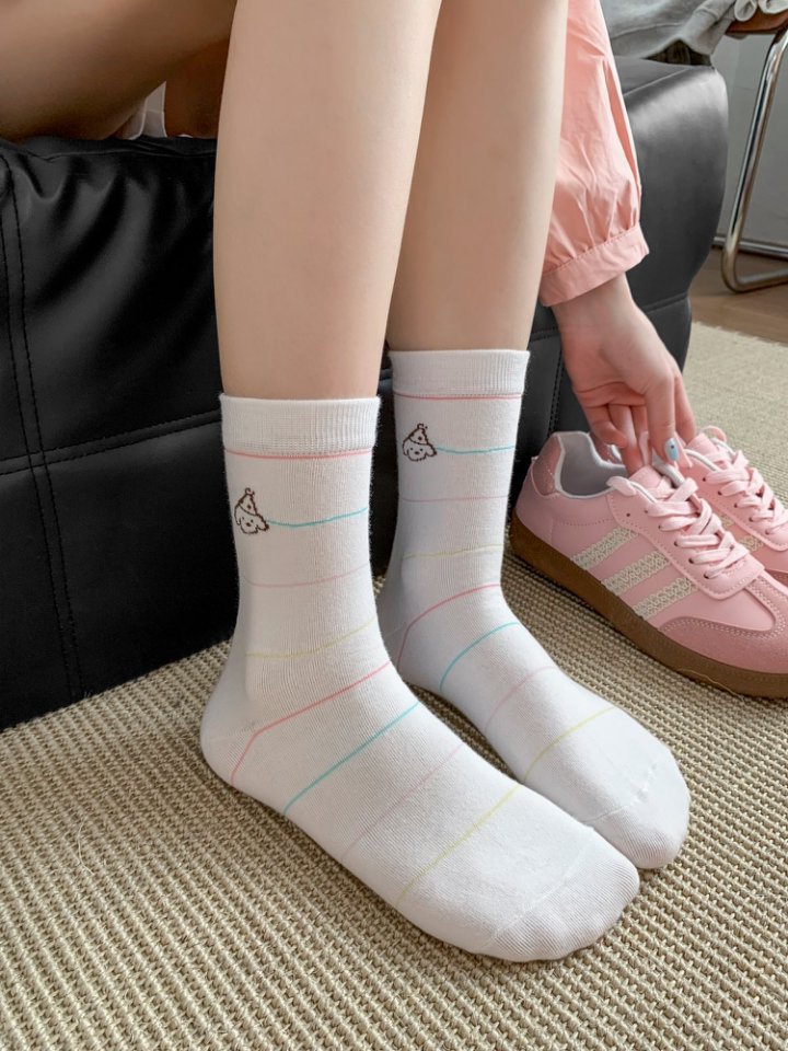 다채로운 줄무늬 강아지 만화 중간 길이 양말 달콤하고 신선한 소녀 양말면 무지개 양말은 양말 중간 길이스토어 가기