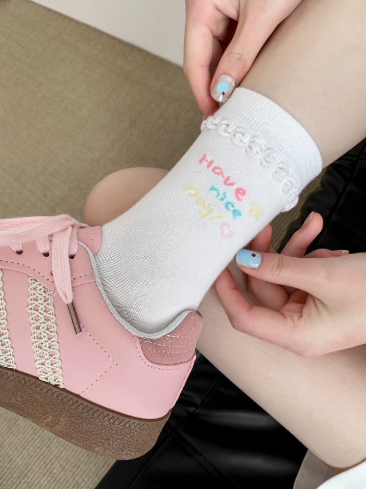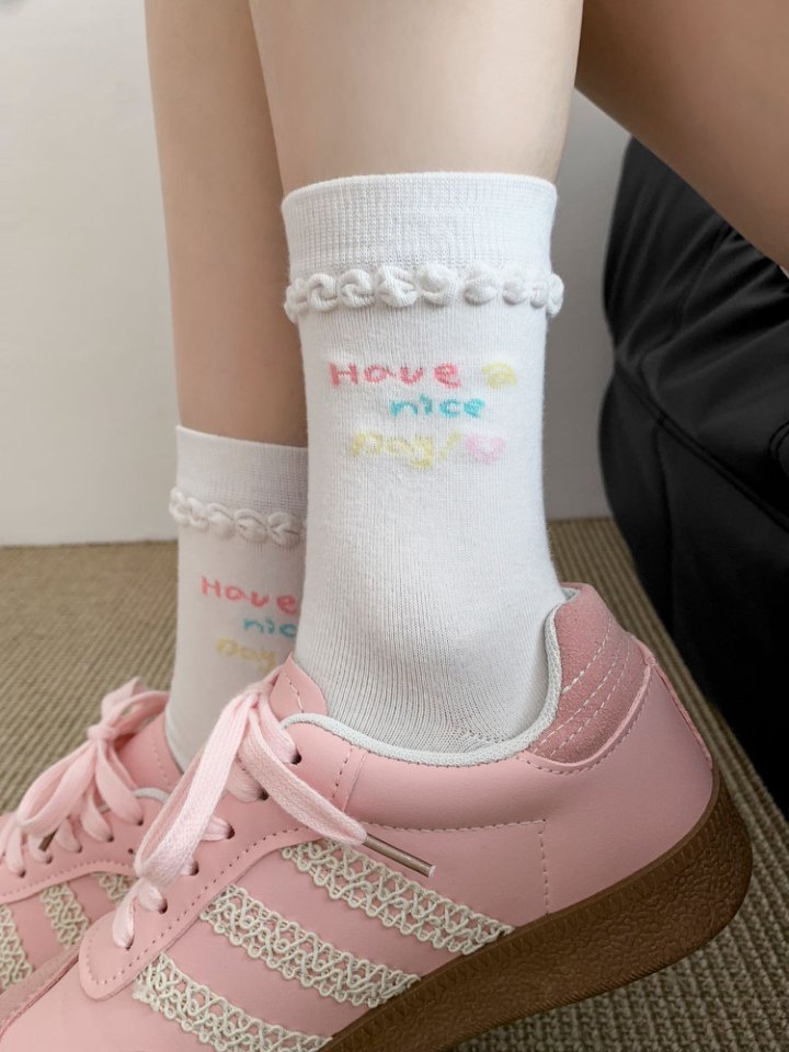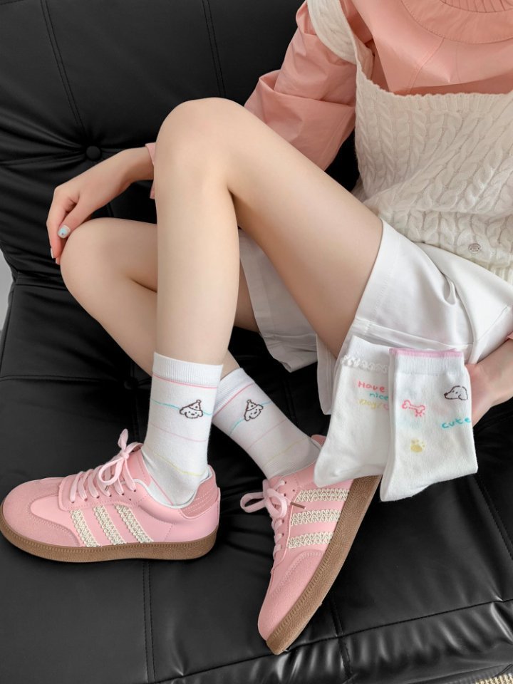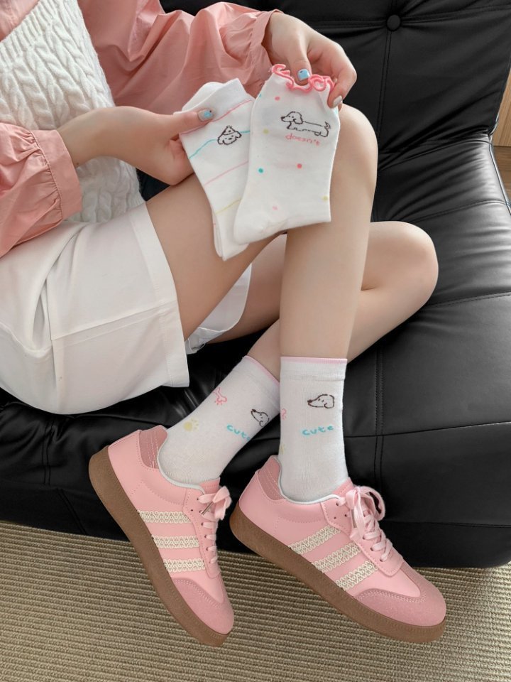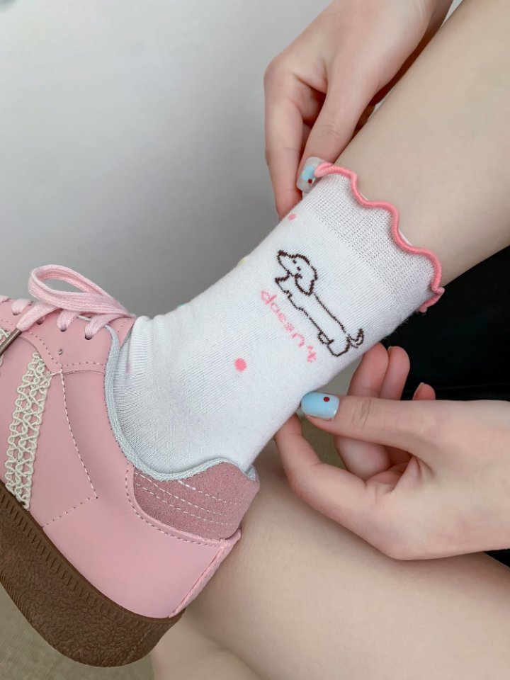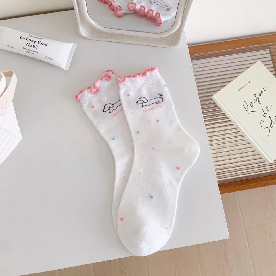 다채로운 줄무늬 강아지 만화 중간 길이 양말 달콤하고 신선한 소녀 양말면 무지개 양말은 양말 중간 길이스토어 가기