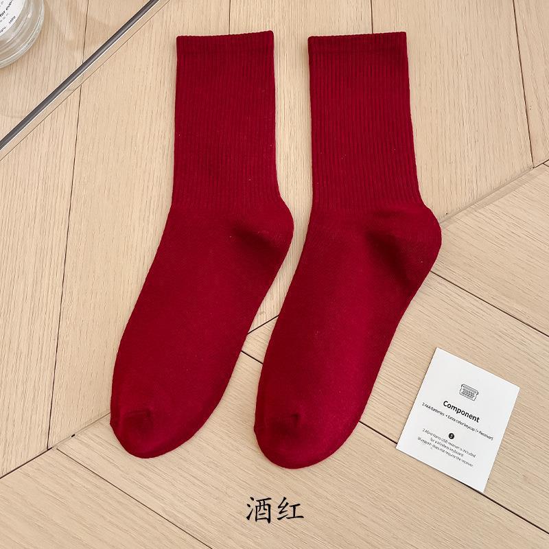 컬러풀한 고탄력 밝은 색상의 스타킹, 캔디 컬러 중목 양말, 도파민 컬러 학생용 면 양말, 단색 여성 양말스토어 가기