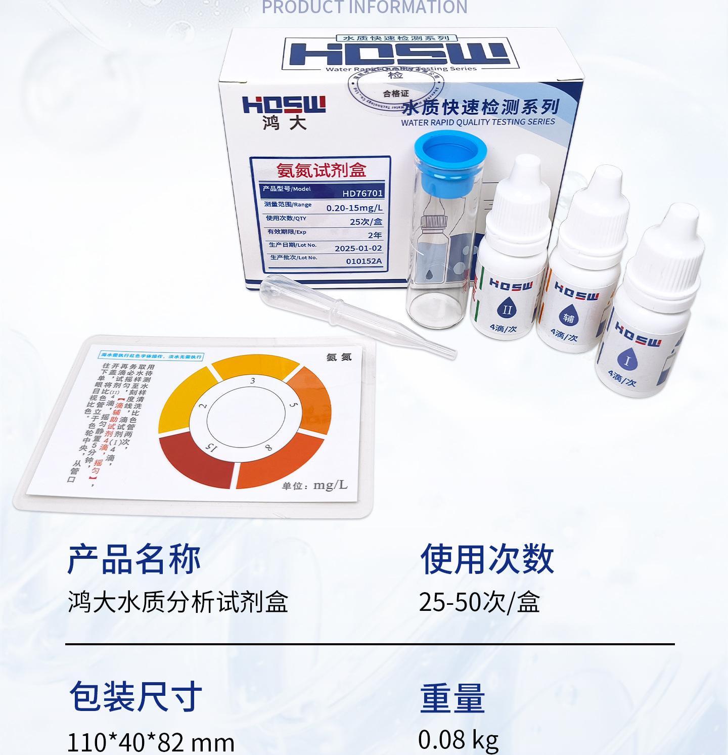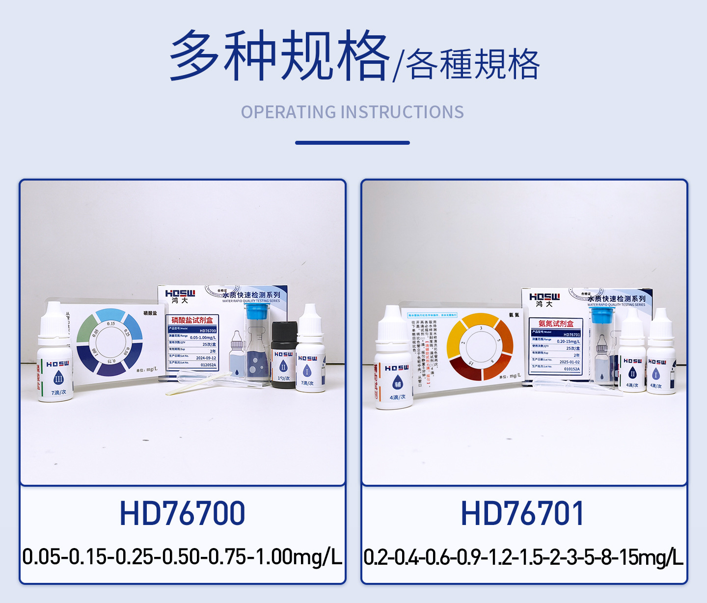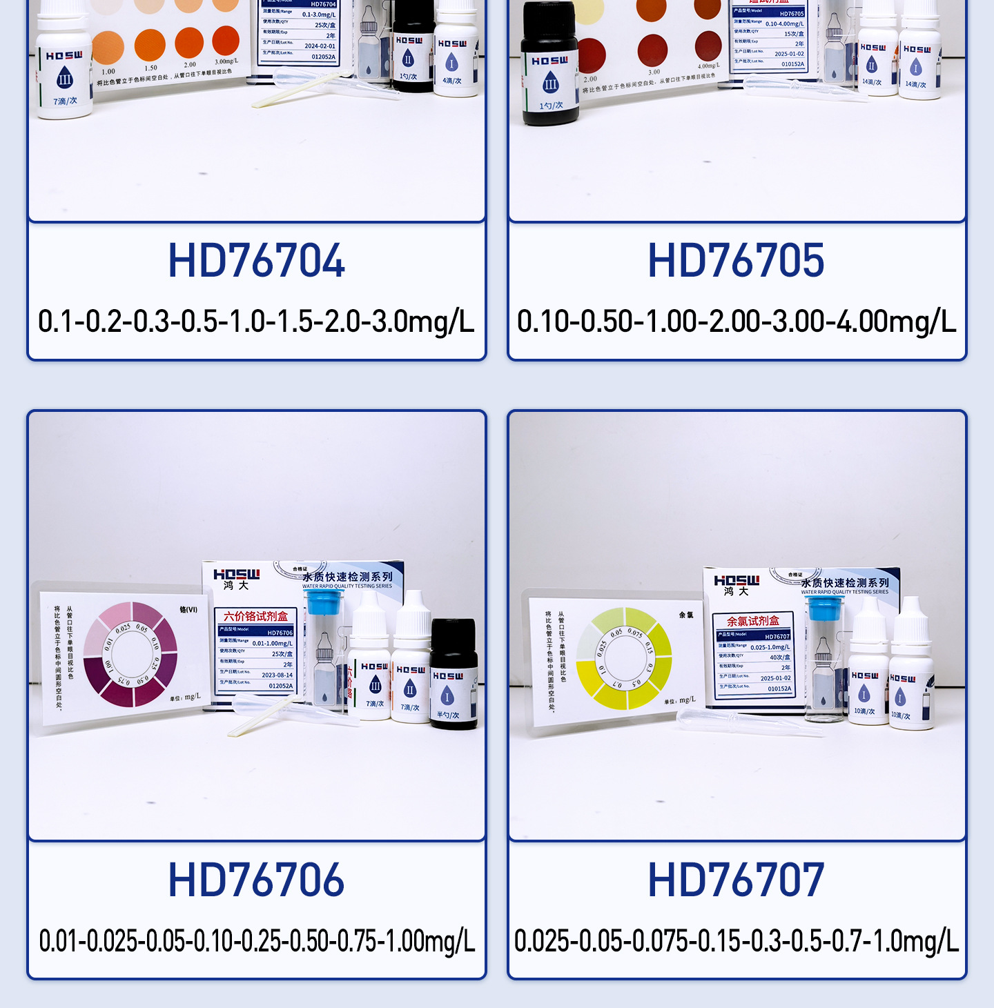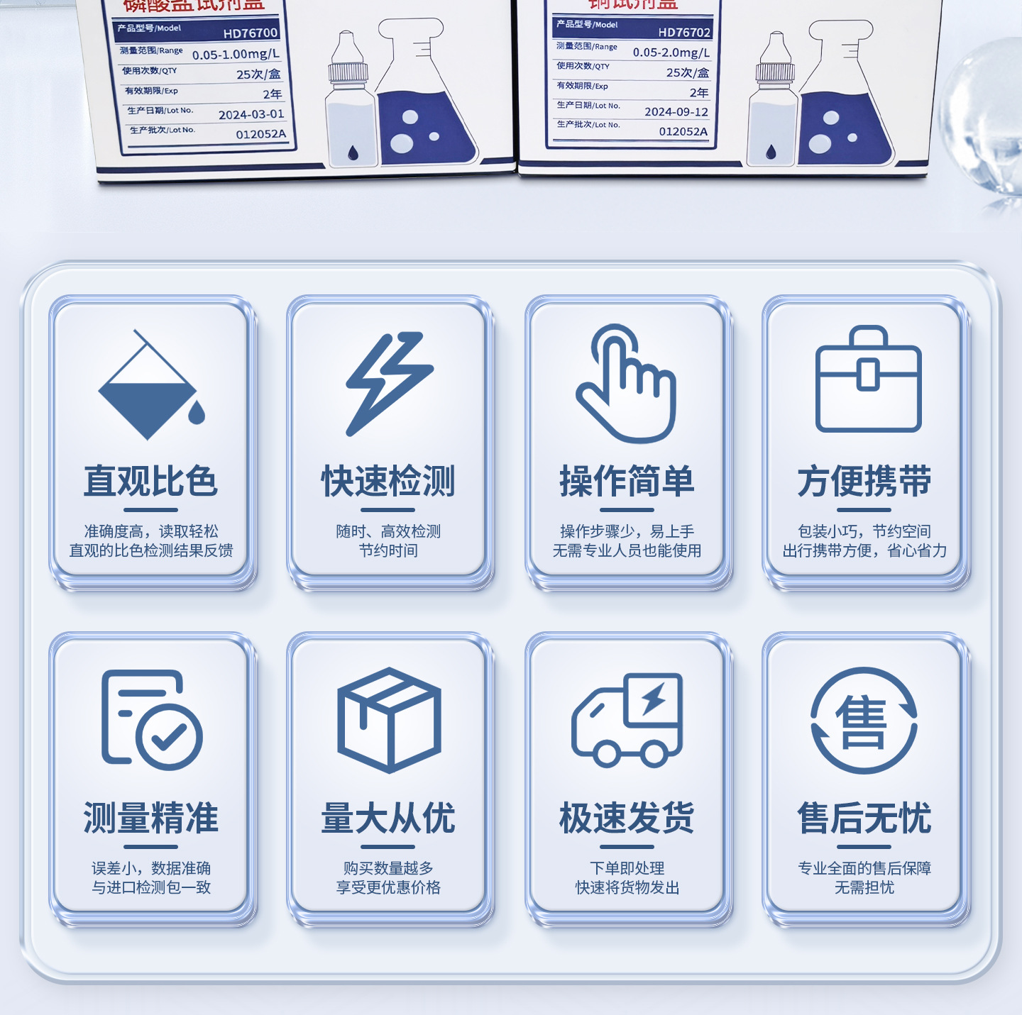 홍다 수질 시험 키트 암모니아 질소 인산염 아질산염 pH 잔류 염소 구리 니켈 육가 철 망간 시약