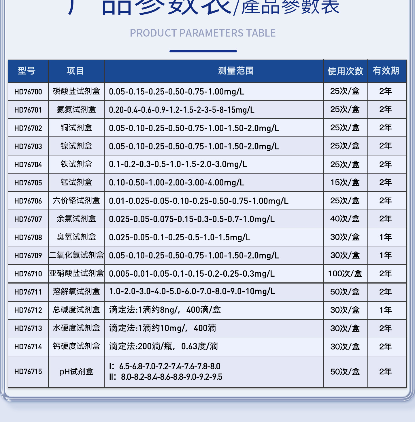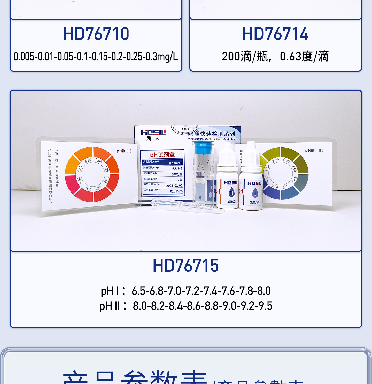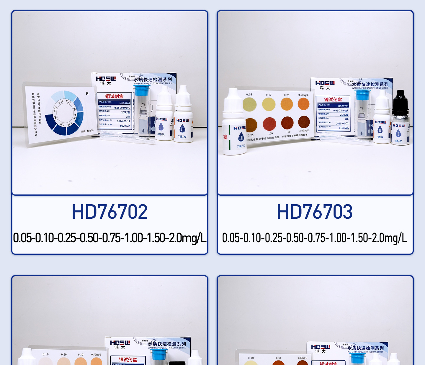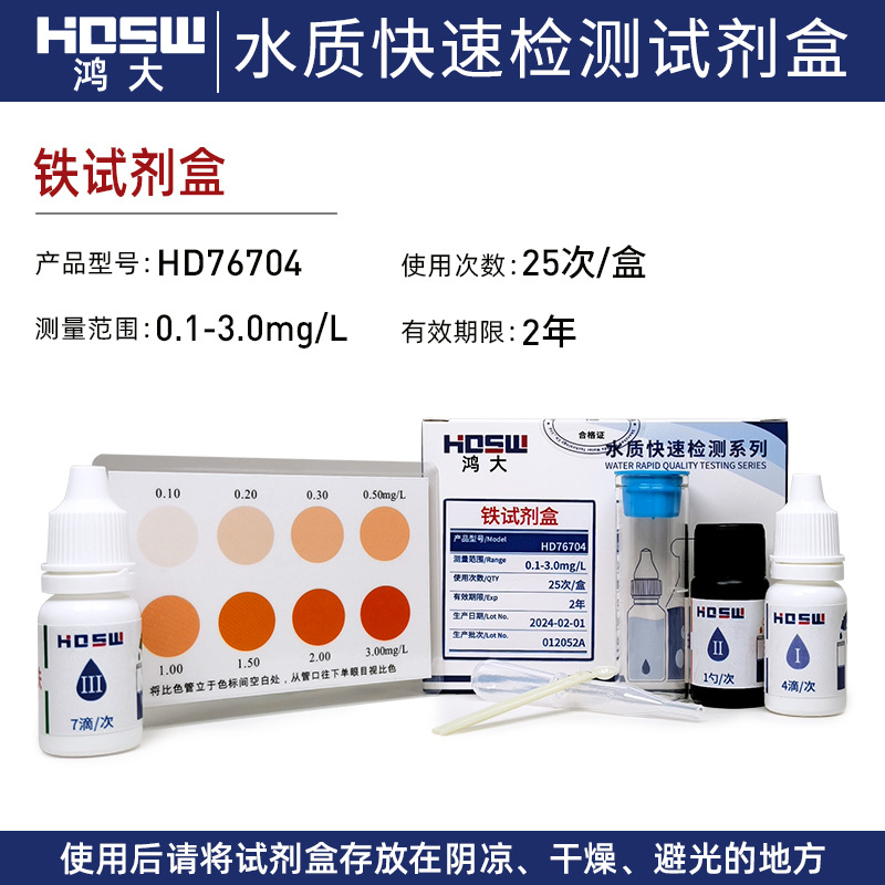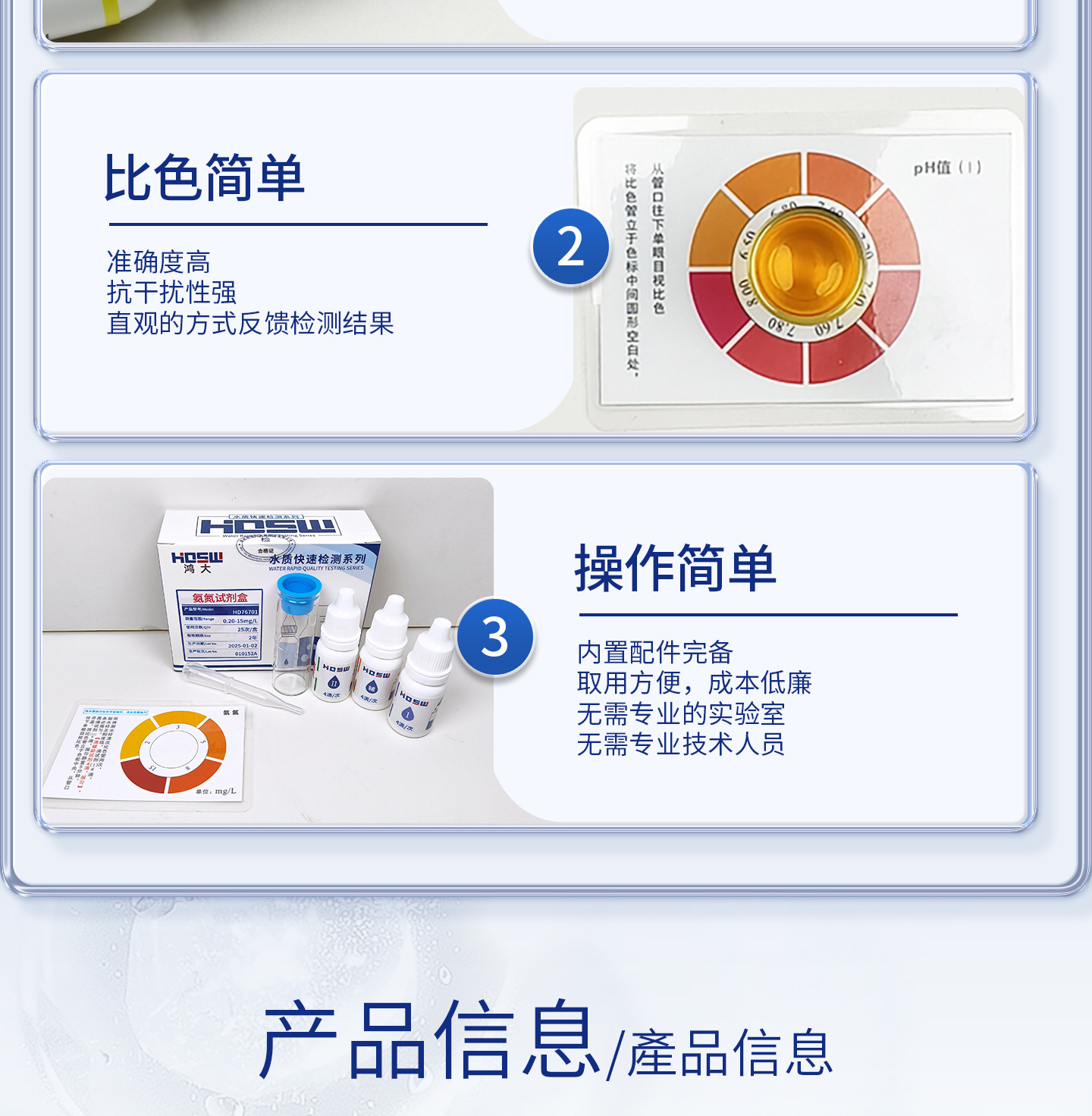 홍다 수질 시험 키트 암모니아 질소 인산염 아질산염 pH 잔류 염소 구리 니켈 육가 철 망간 시약