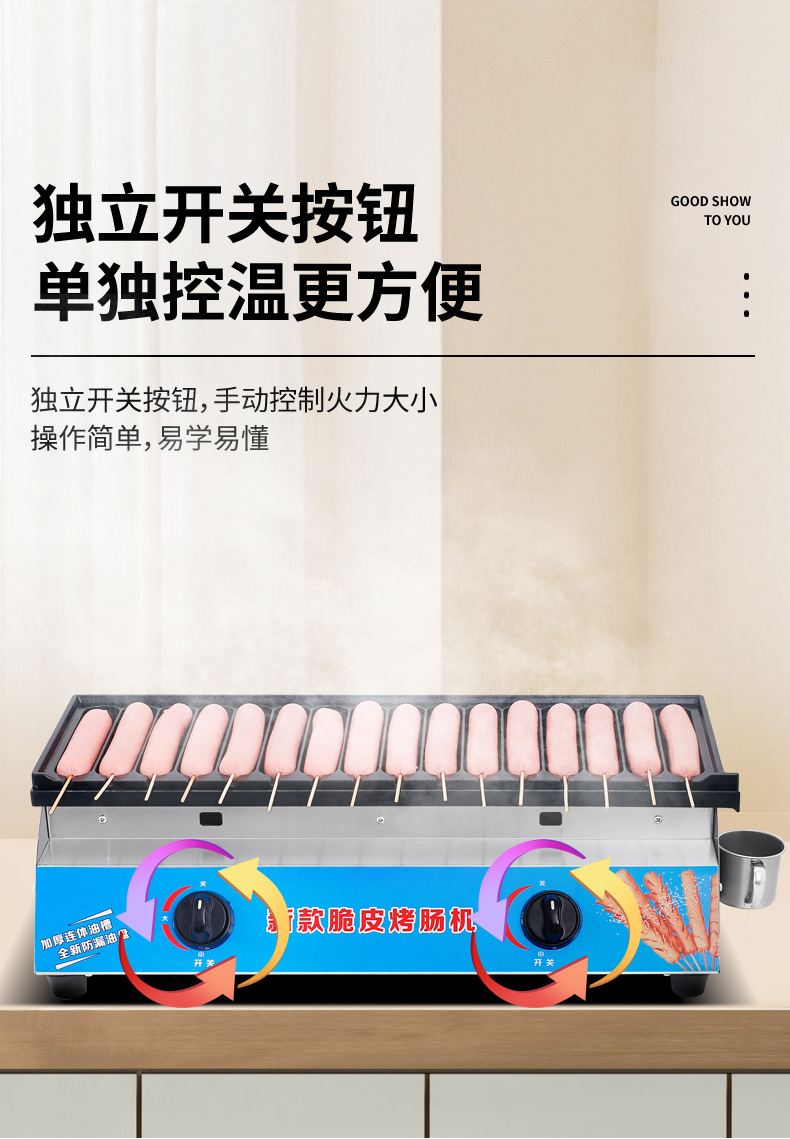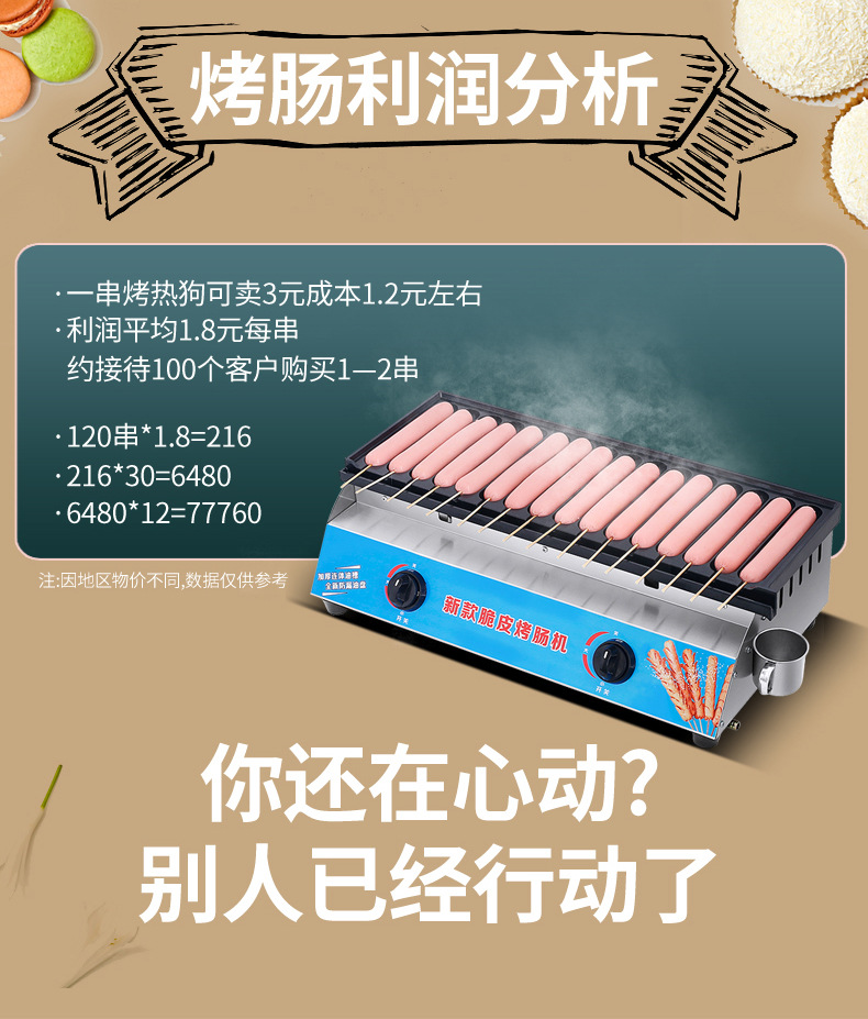 골드 바삭한 소시지 기계 실속 상업 스토브 그물 붉은 구운 전분 소시지 가스 작은 구운 햄 소시지 기계스토어 가기