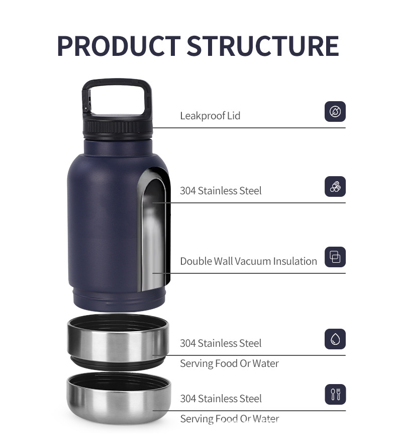 국경 304 스테인레스 스틸 진공 단열 컵 3 층 분리 가능한 공간 주전자 핸들 더블 보울 스포츠 주전자스토어 가기