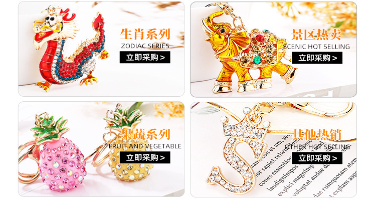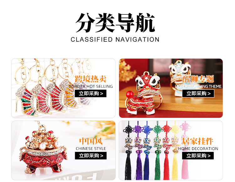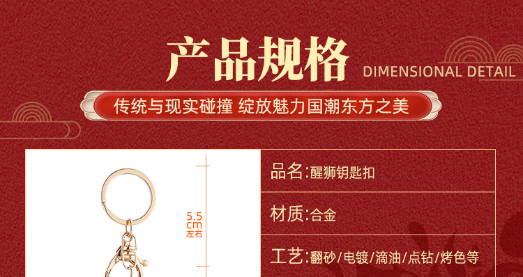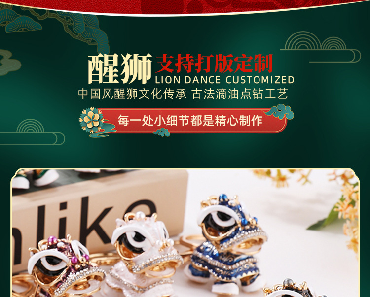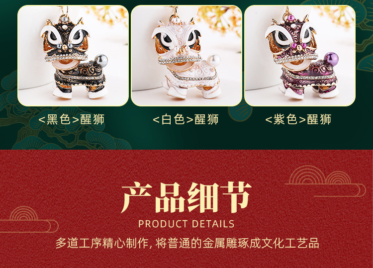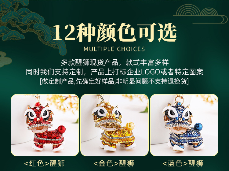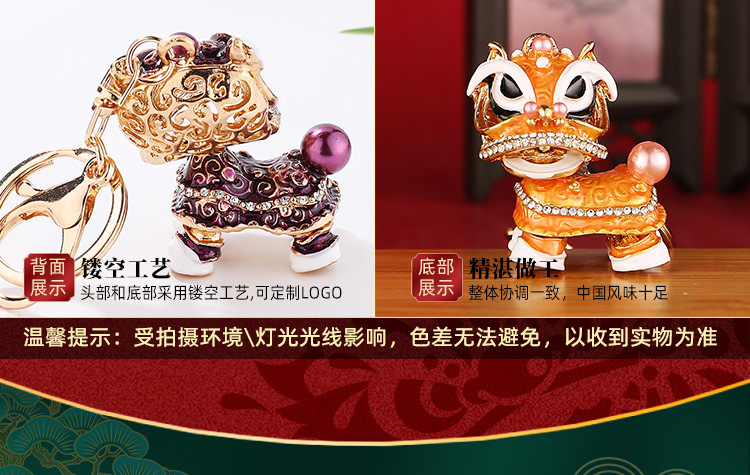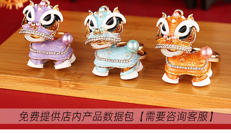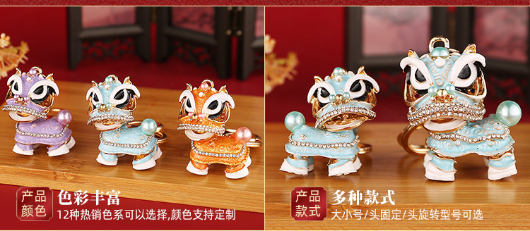 공장 도매 중국 스타일 사자 열쇠 고리 아마존 국경 최고 판매 회전 머리 보석 작은 사자 가방 펜던트스토어 가기
