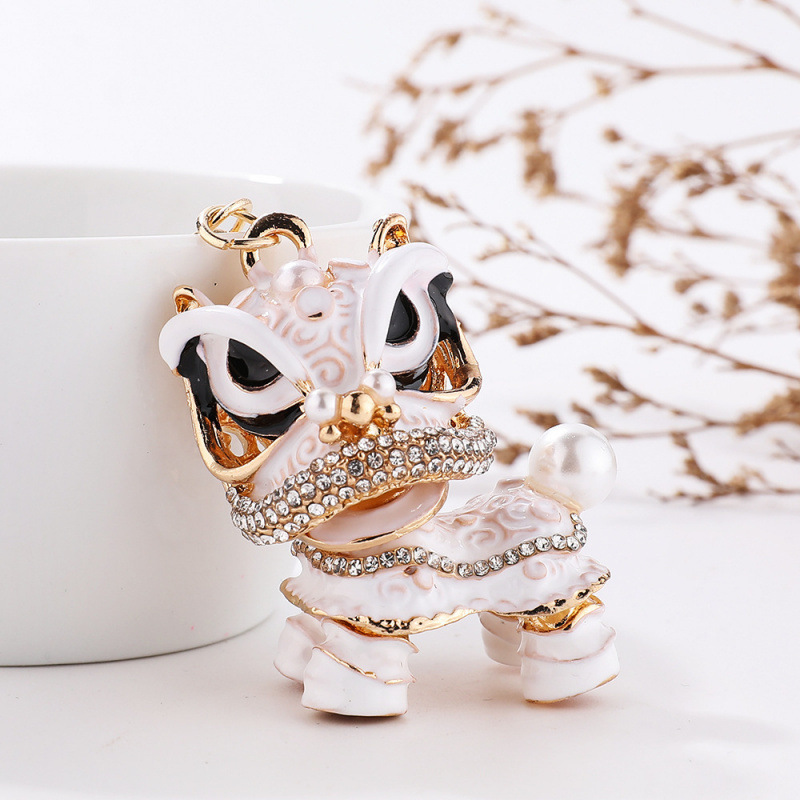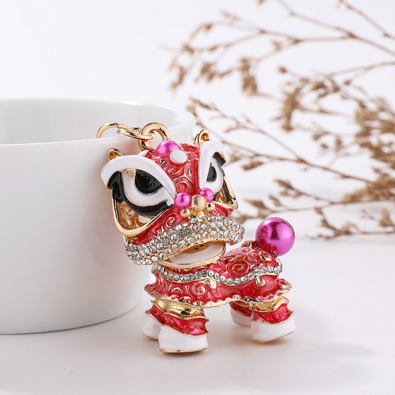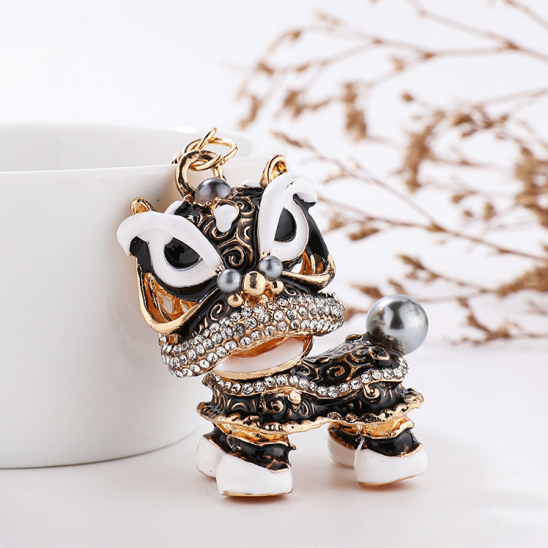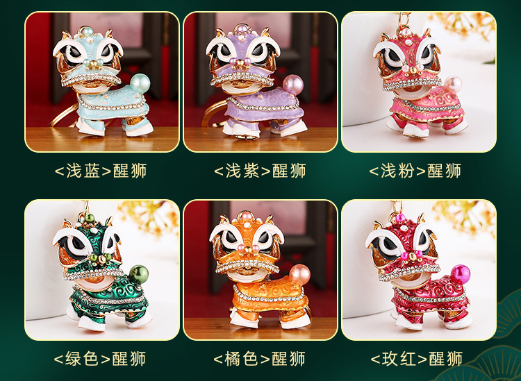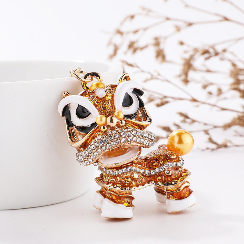 공장 도매 중국 스타일 사자 열쇠 고리 아마존 국경 최고 판매 회전 머리 보석 작은 사자 가방 펜던트