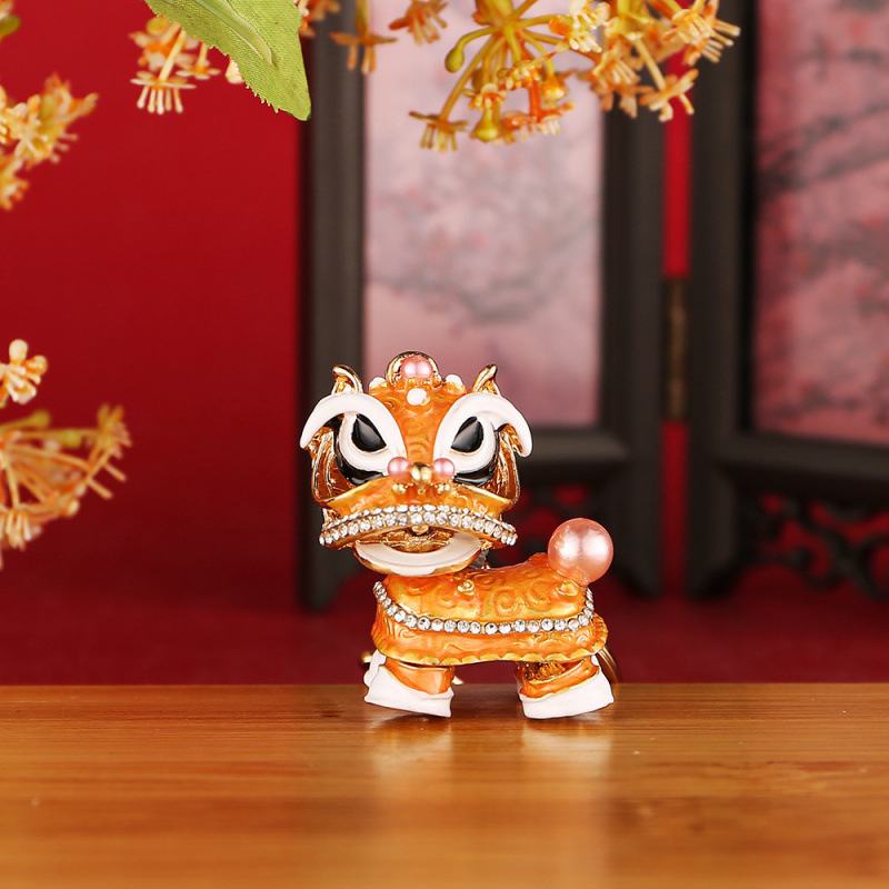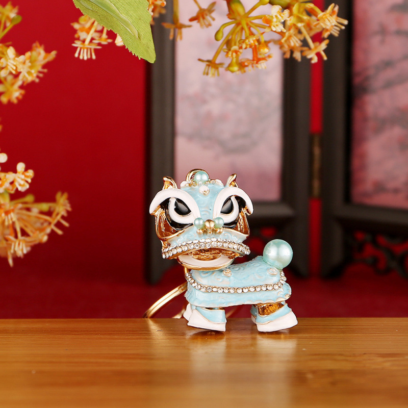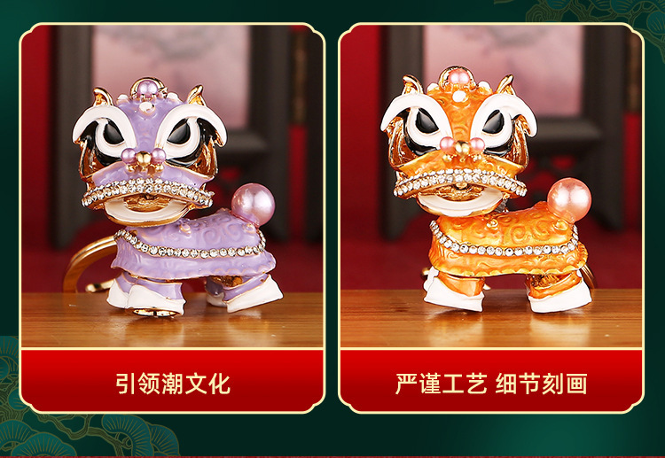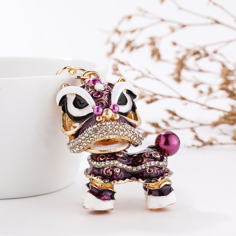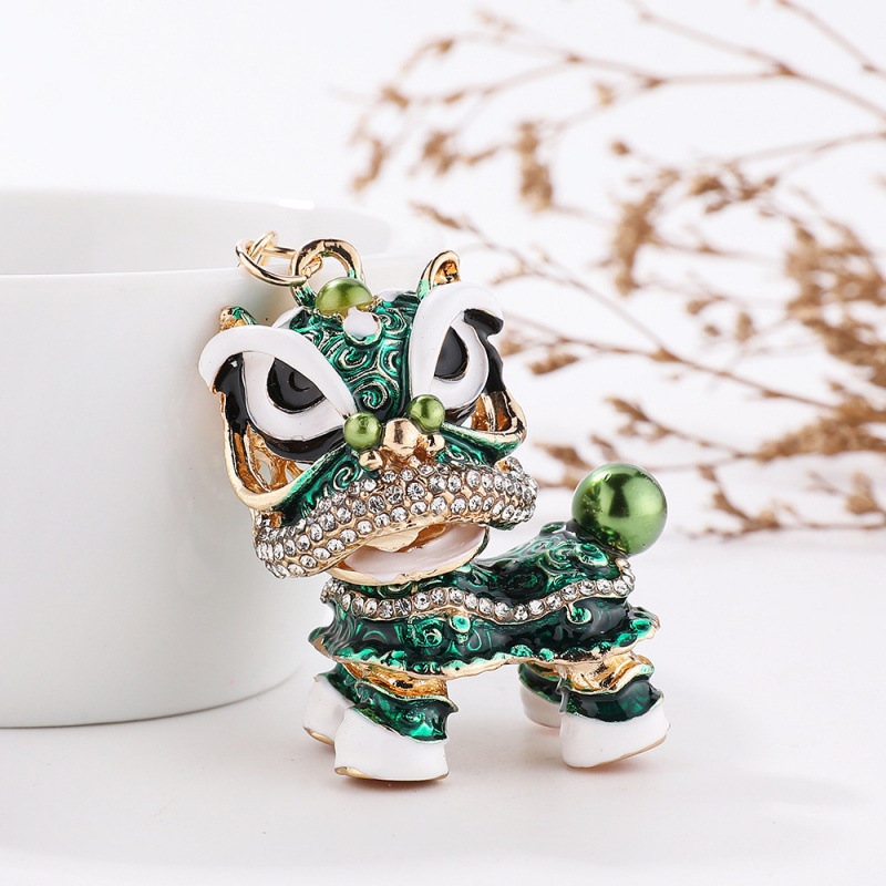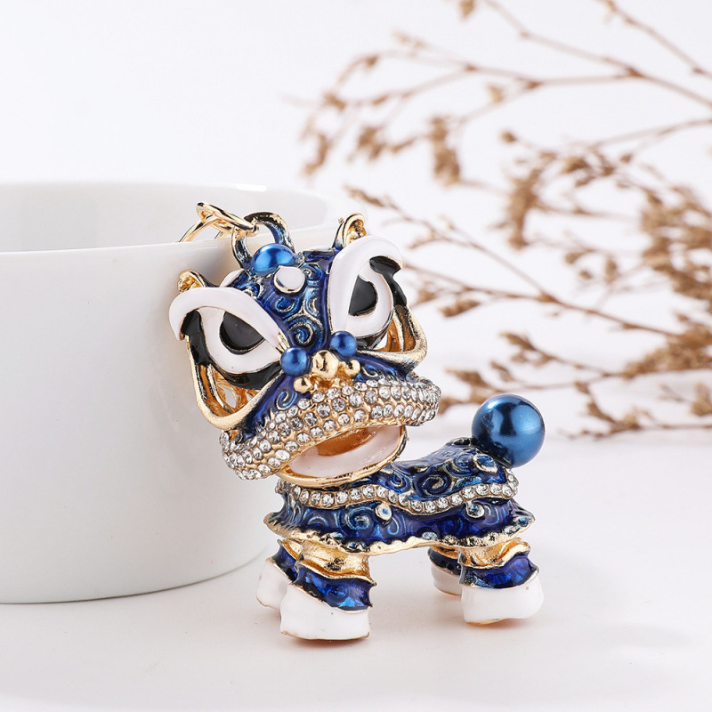 공장 도매 중국 스타일 사자 열쇠 고리 아마존 국경 최고 판매 회전 머리 보석 작은 사자 가방 펜던트