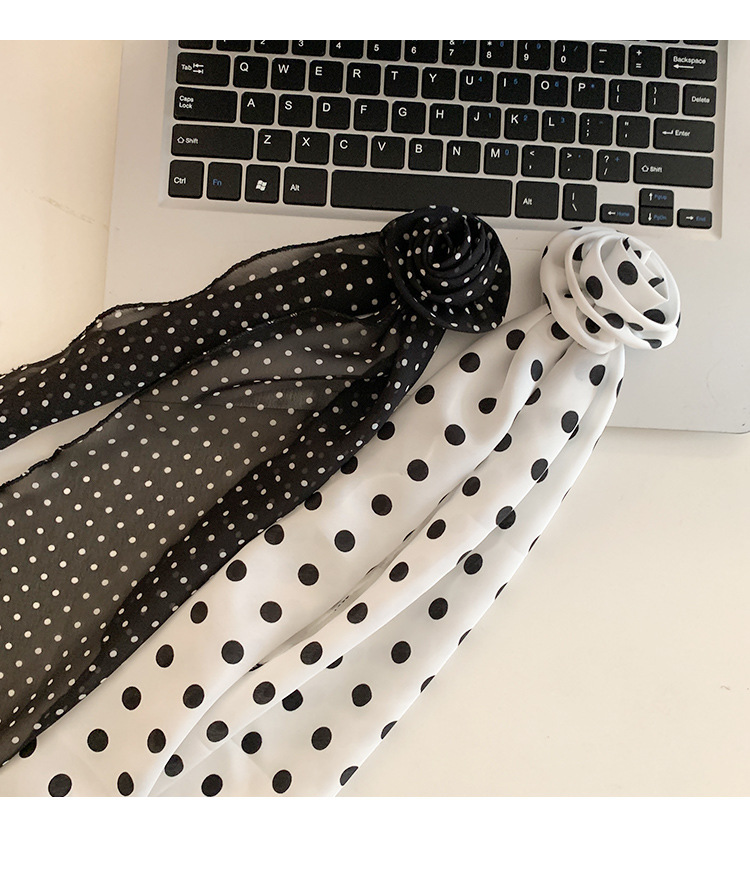고급 실크 스카프 여성 긴 설문 조사 도트 디자인 2025 새로운 스타일 로즈 스카프 리본 올 매치 넥 블랙