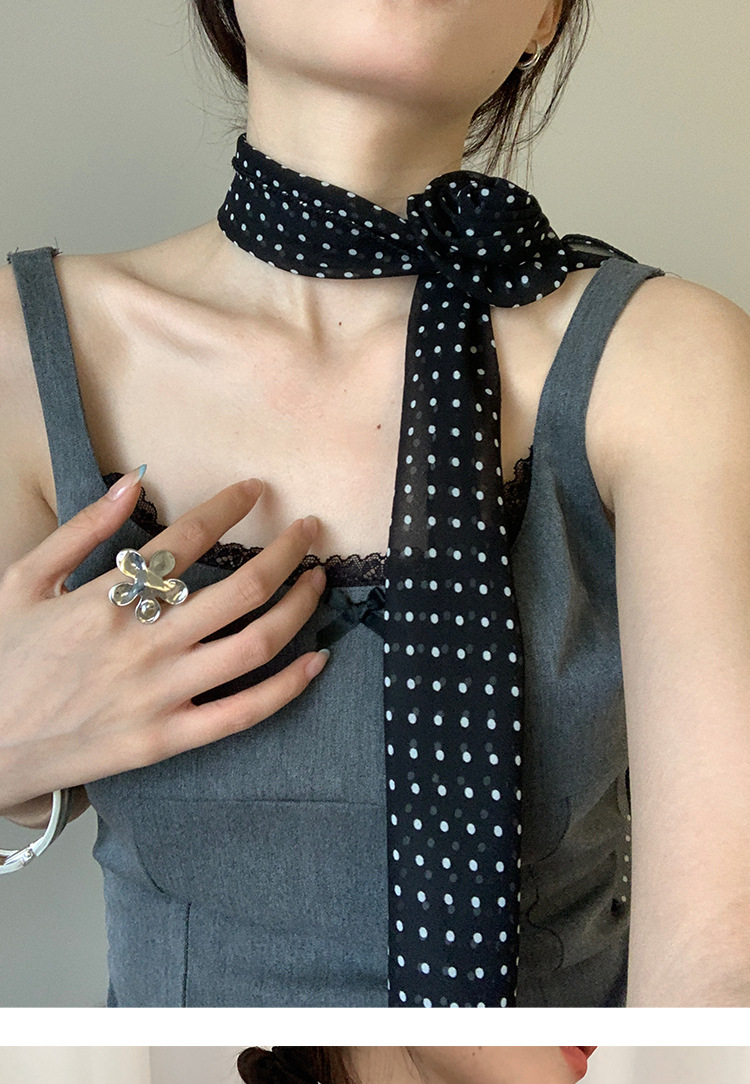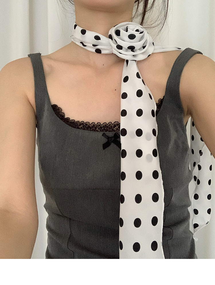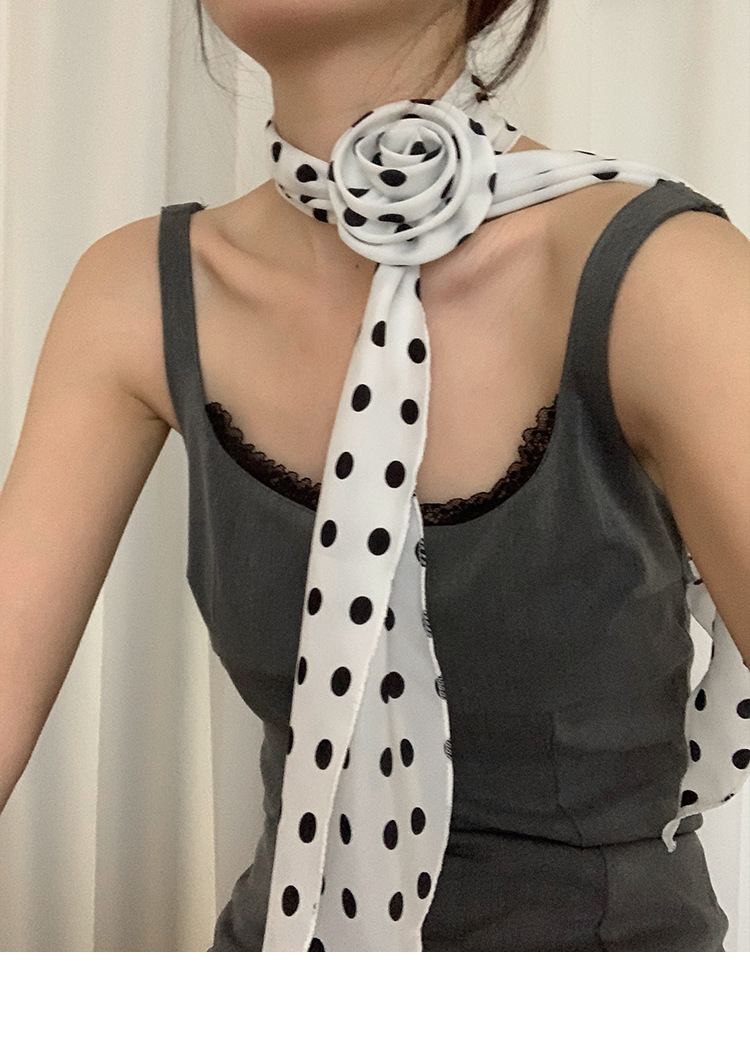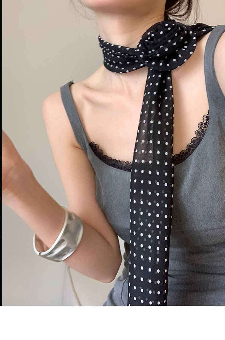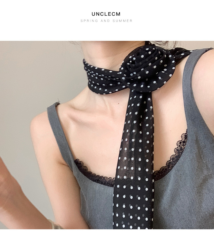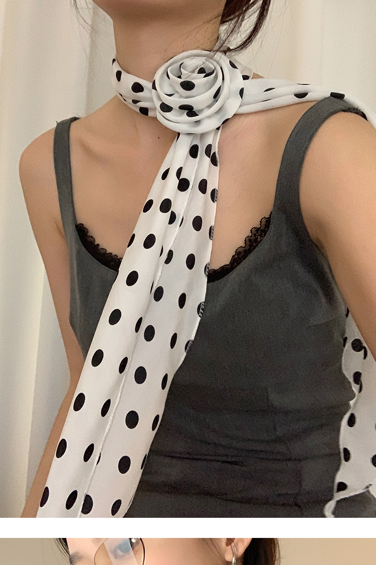 고급 실크 스카프 여성 긴 설문 조사 도트 디자인 2025 새로운 스타일 로즈 스카프 리본 올 매치 넥 블랙스토어 가기