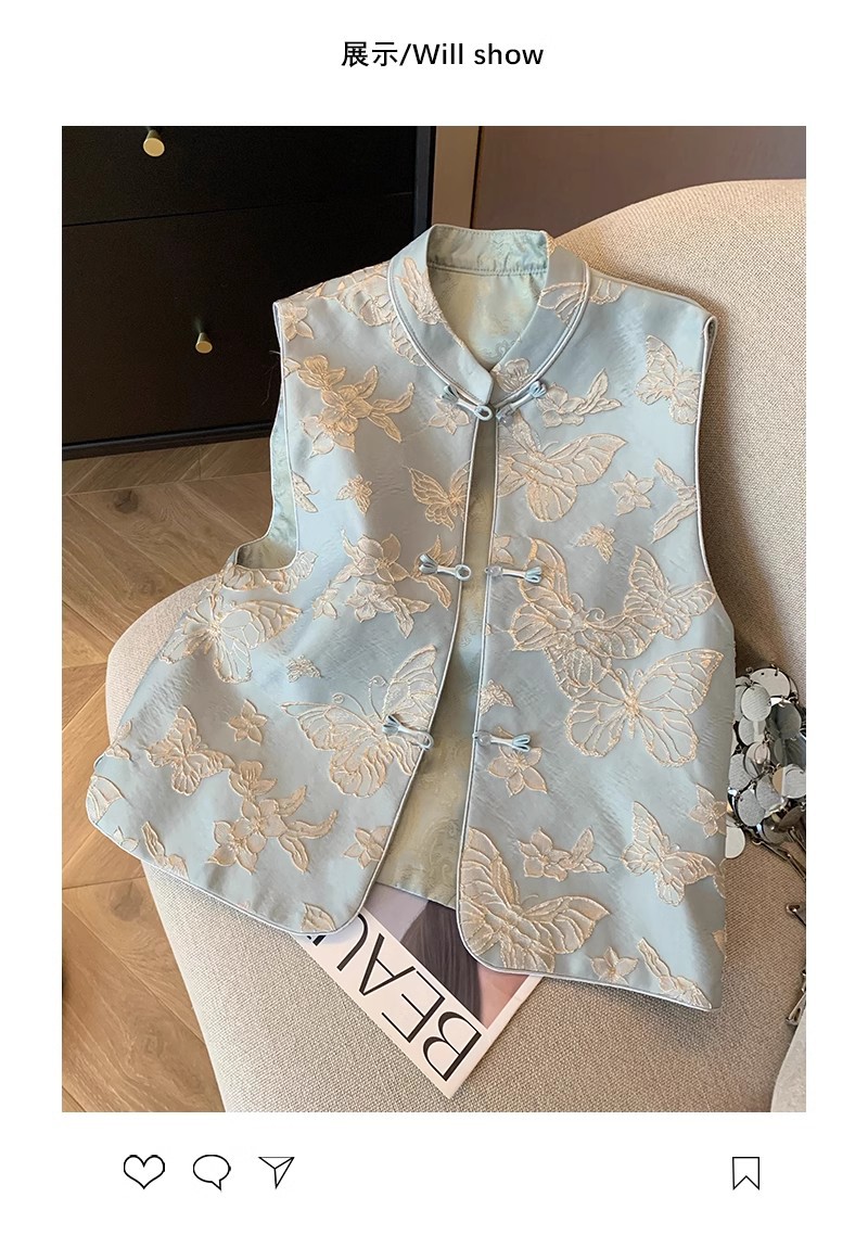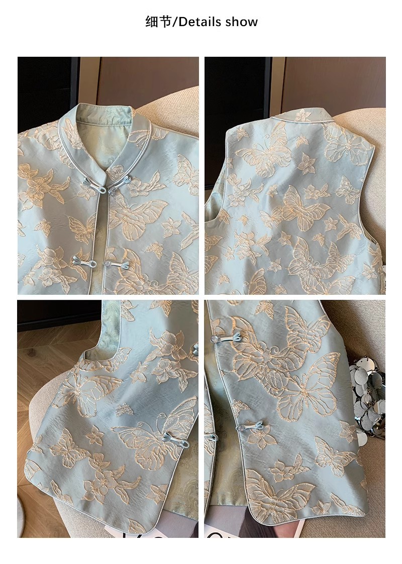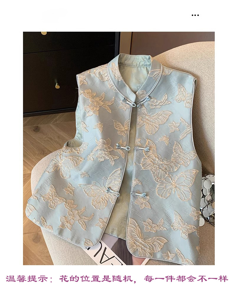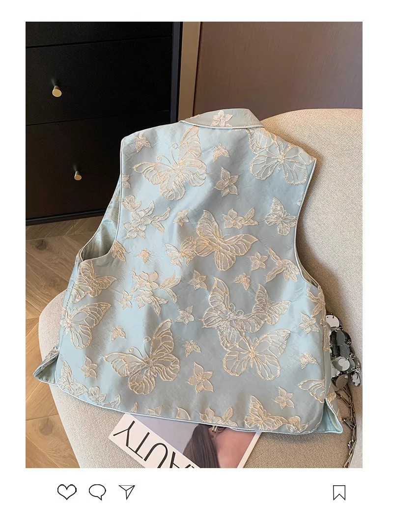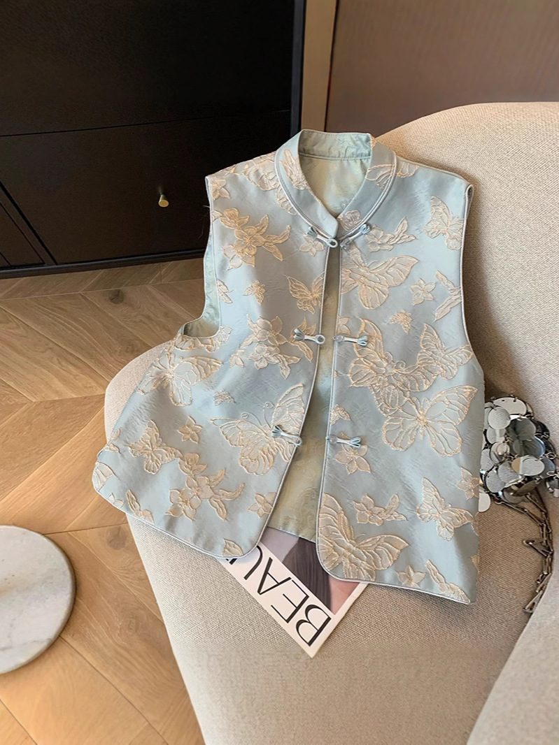 나비 자수 새로운 중국 조끼 여성 2025 봄 새로운 하이 엔드 우아한 버클 국가 스타일 민소매 조끼스토어 가기