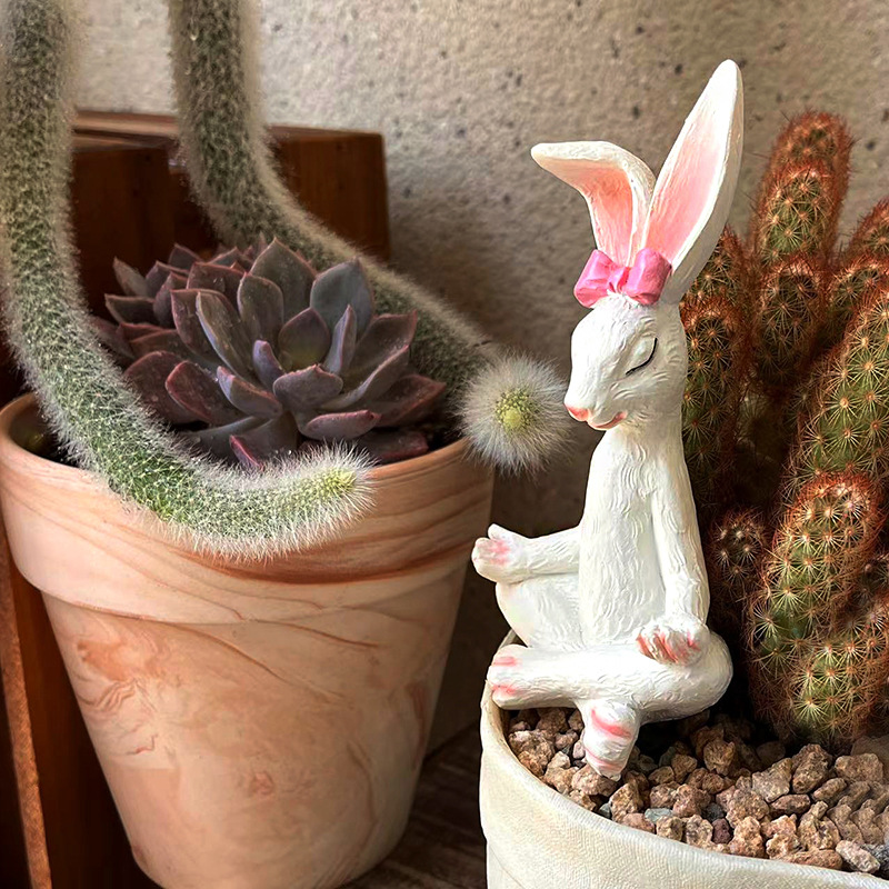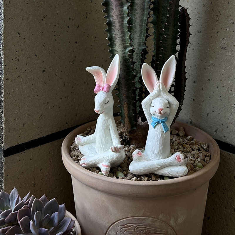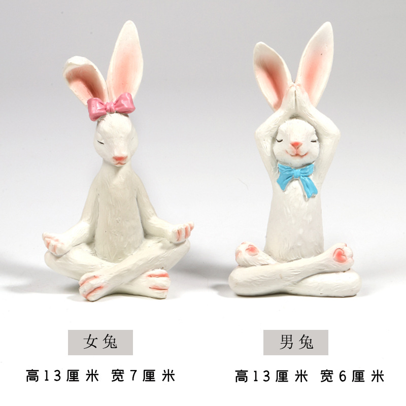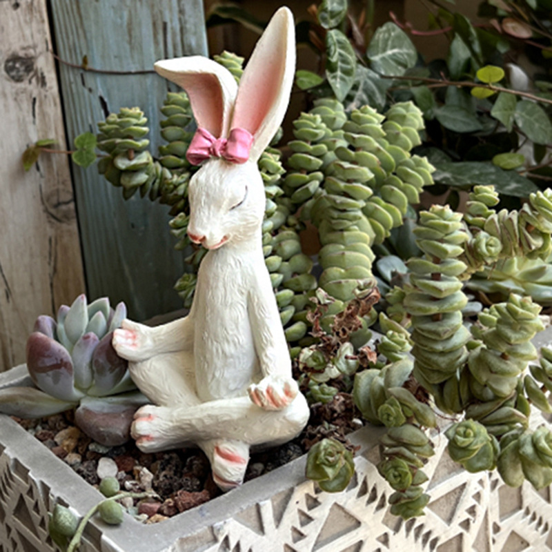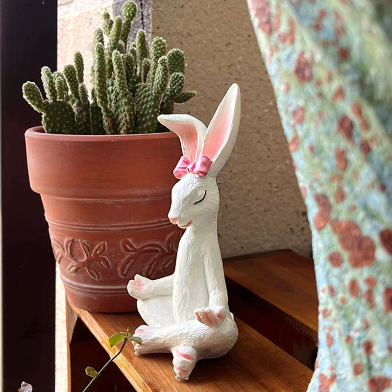 국경 간 요가 토끼 장식 꽃 공원 숲 안뜰 잔디 풍경 귀여운 동물 환영 토끼 장식 조각스토어 가기