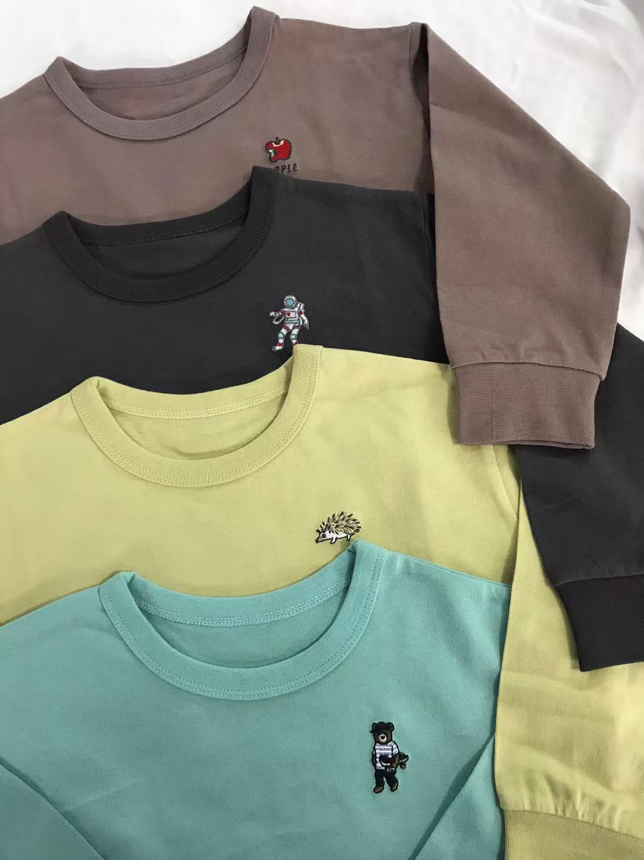 25 새로운 면 자수 둥근 목 터틀넥 긴 소매 티셔츠 소년과 소녀 솔리드 컬러 스웨트 셔츠 만화 루즈 탑스토어 가기