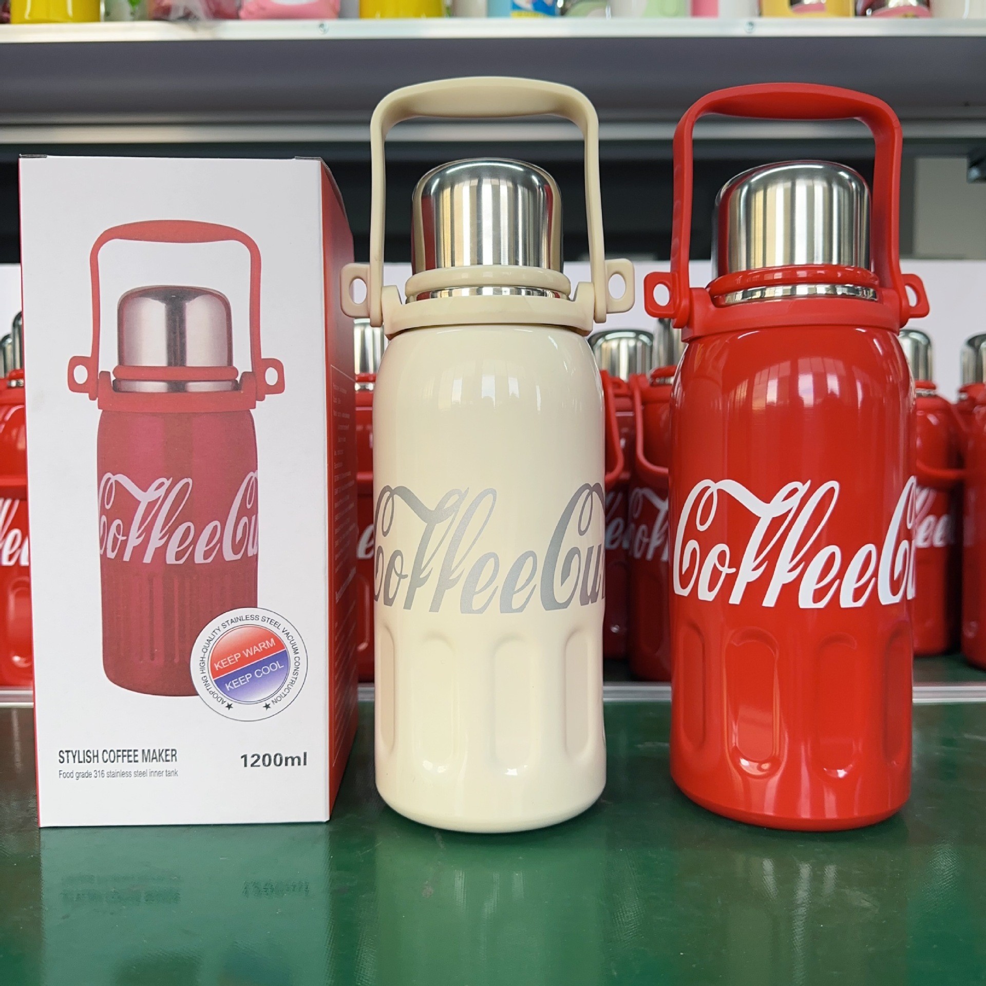 코카콜라 대용량 보온병 포트 316 스테인레스 스틸 보온병 야외 휴대용 등산 휴대용 물 컵스토어 가기
