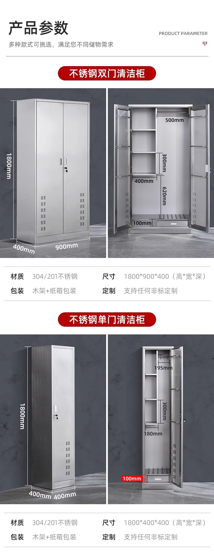 • 304 스테인레스 스틸 이중 도어 청소 캐비닛
