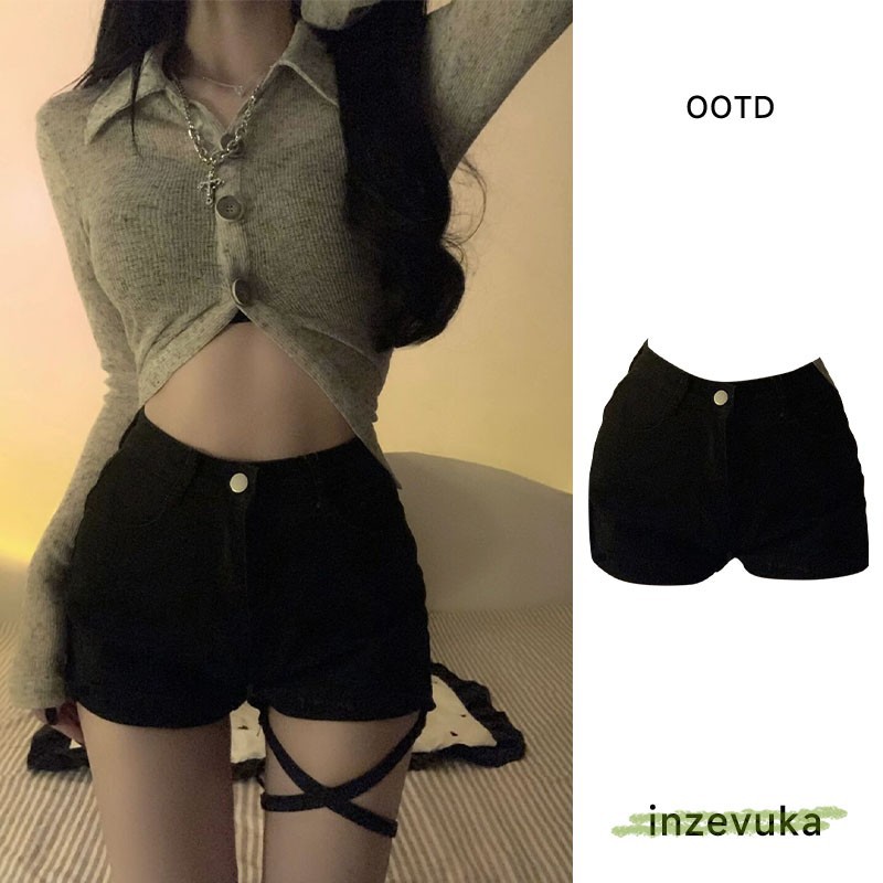 블랙 데님 반바지 여자 높은 허리 뜨거운 소녀 여름 2025 새로운 꽉 스트레치 슬리밍 올 매치 힙합 핫 팬츠 트렌디스토어 가기