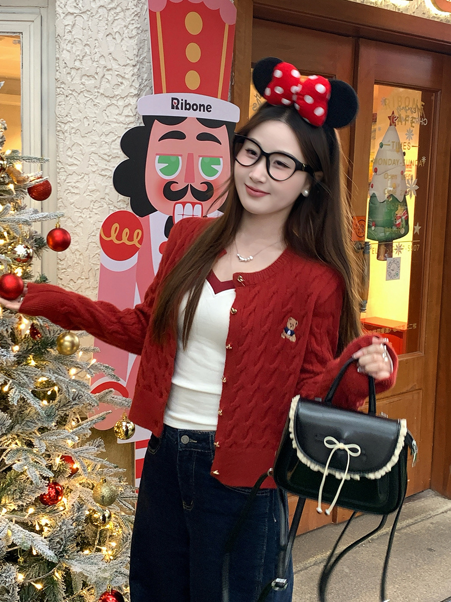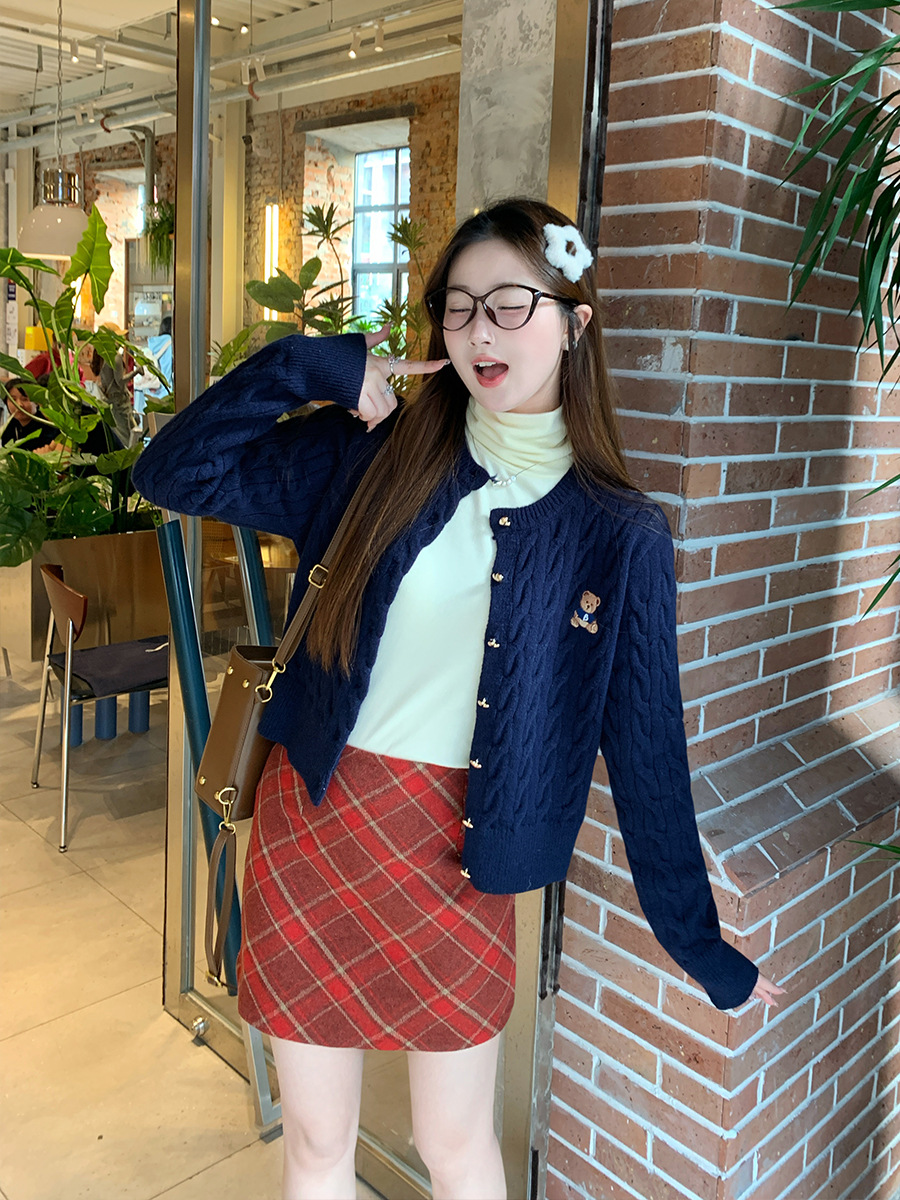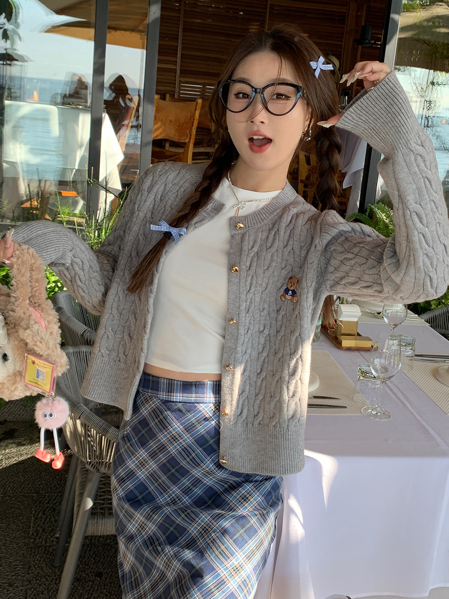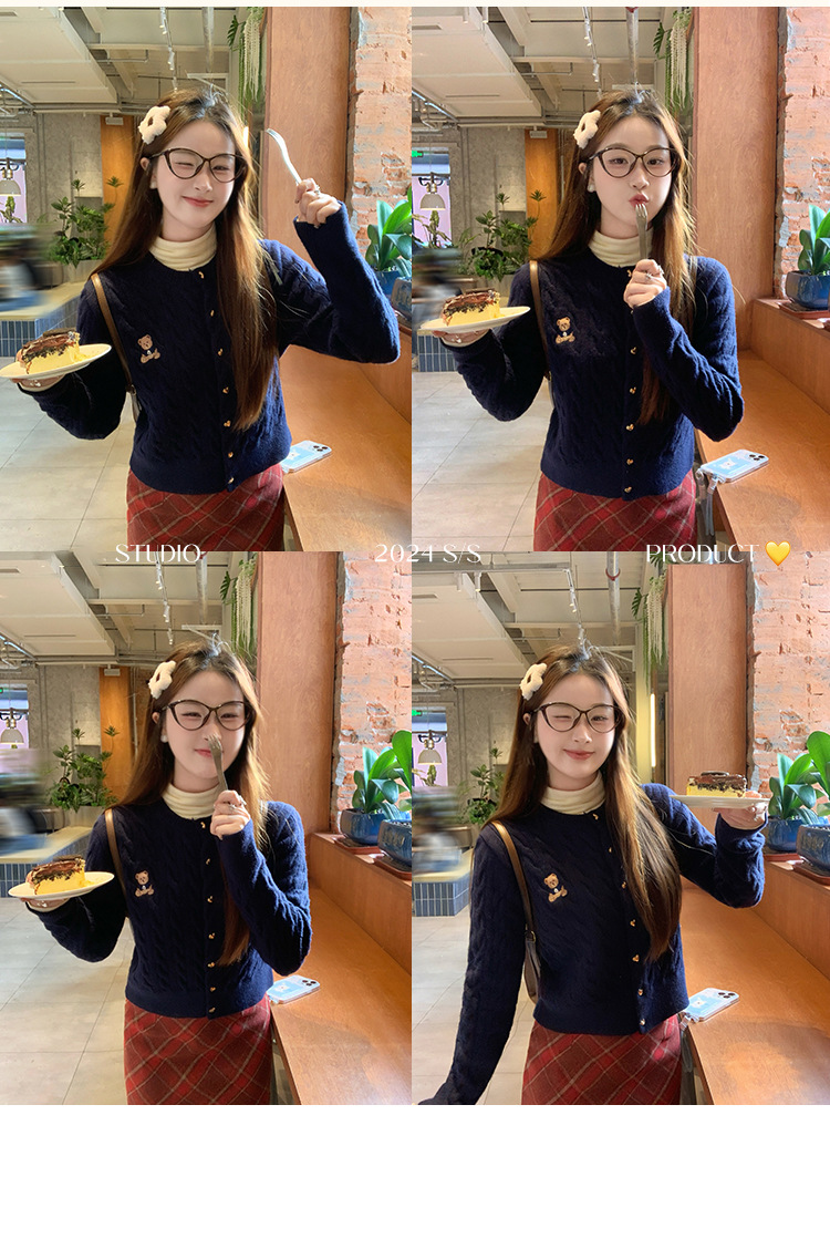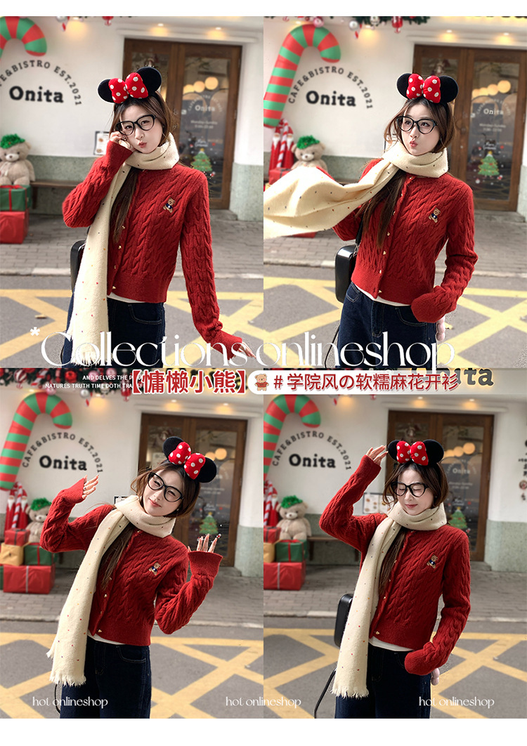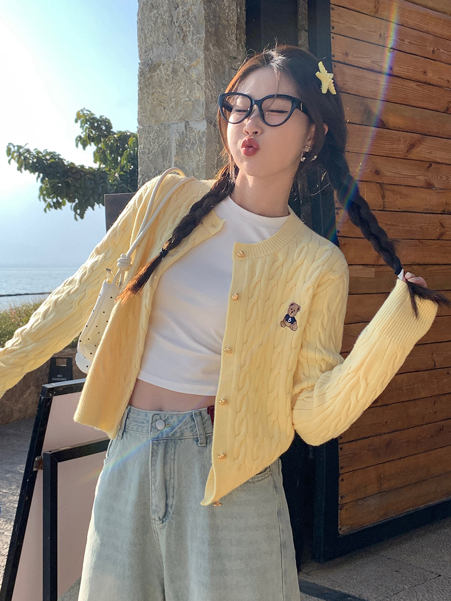 자오 루시 같은 노란 곰 자수 트위스트 카디건 니트 재킷 여자 2025 새로운 스웨터 봄 탑스토어 가기