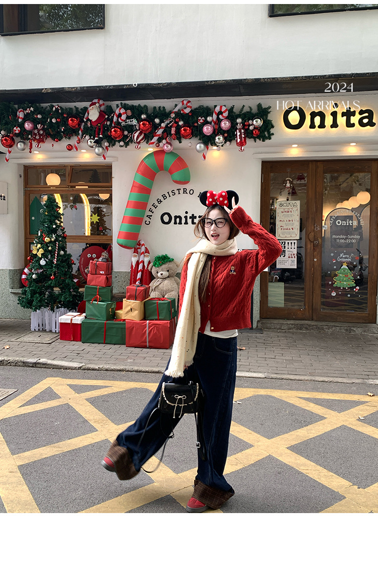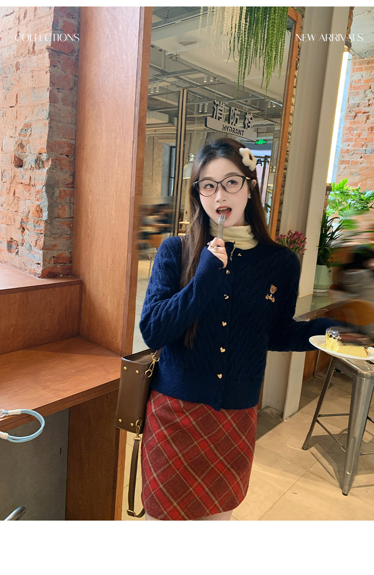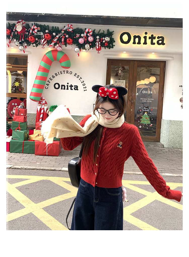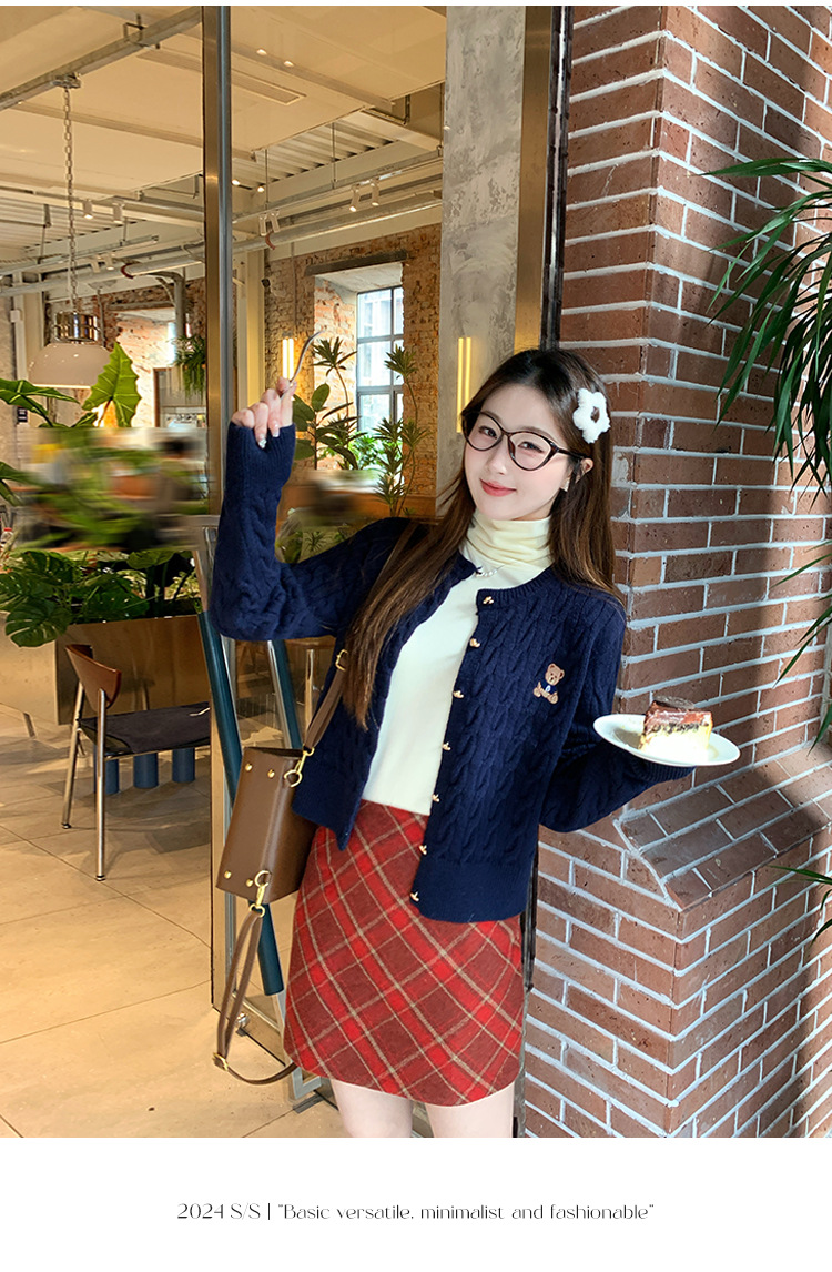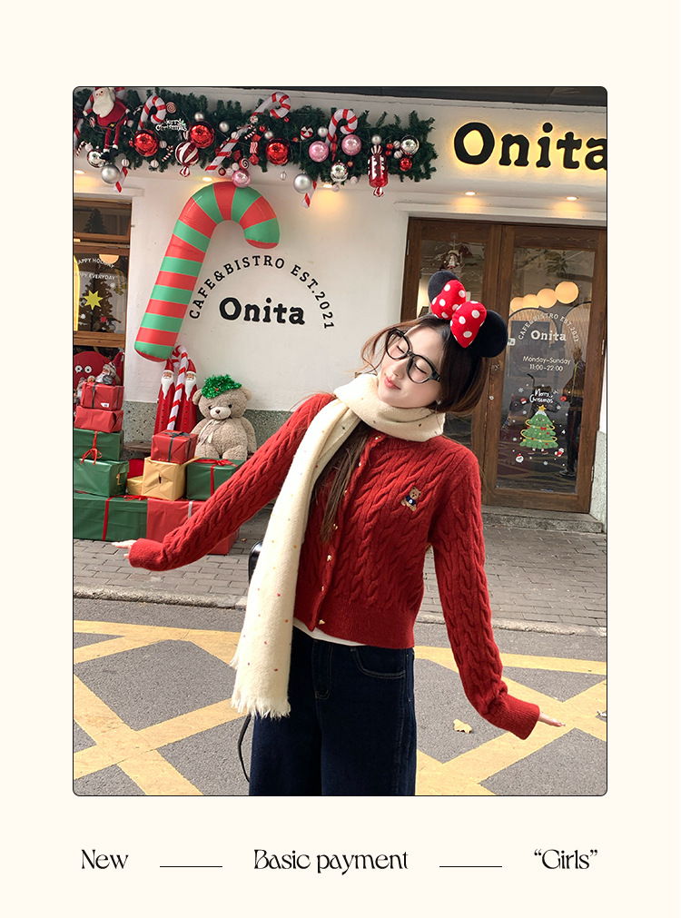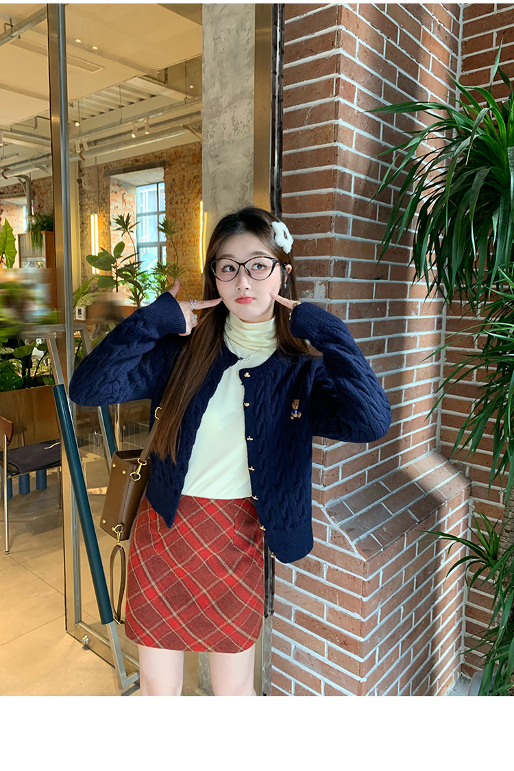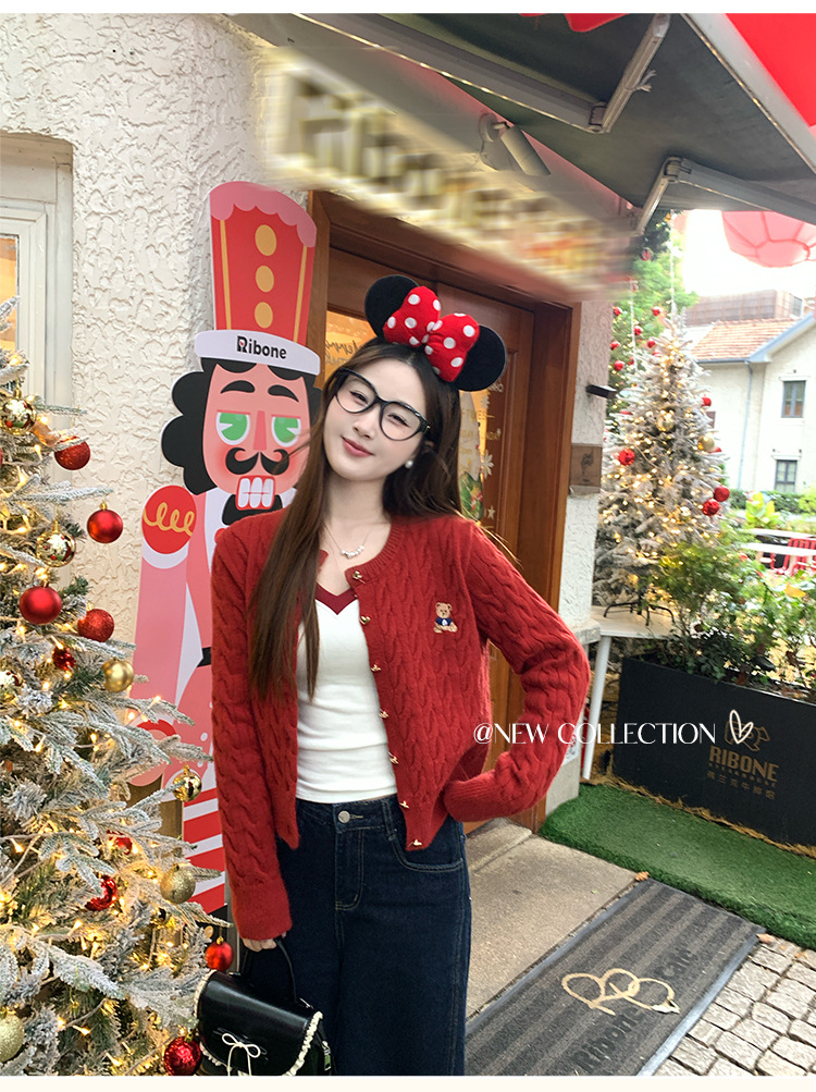 자오 루시 같은 노란 곰 자수 트위스트 카디건 니트 재킷 여자 2025 새로운 스웨터 봄 탑스토어 가기