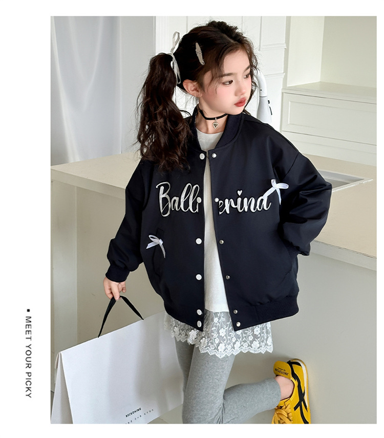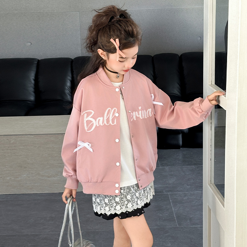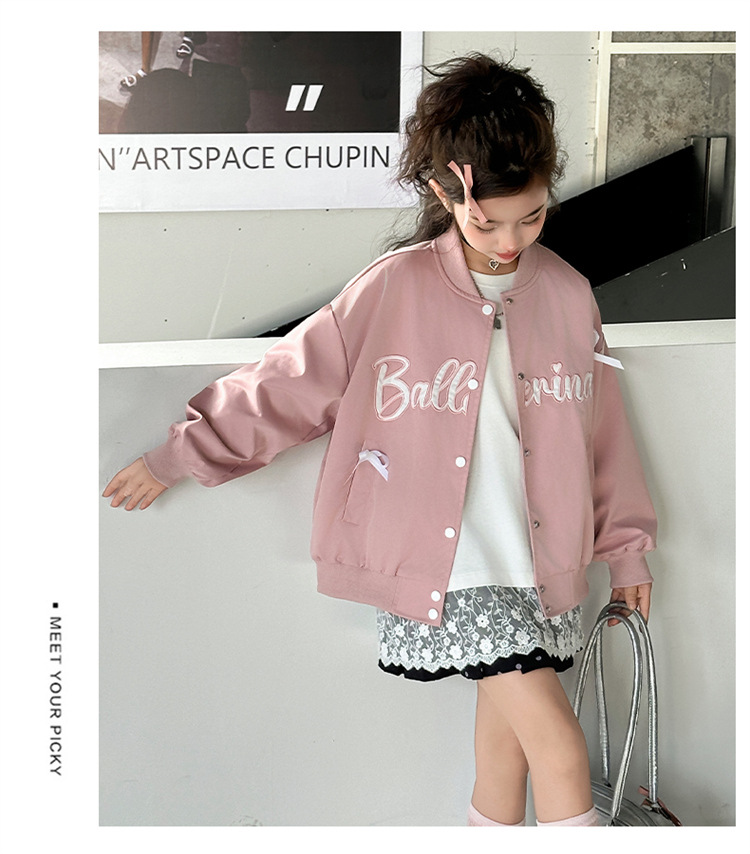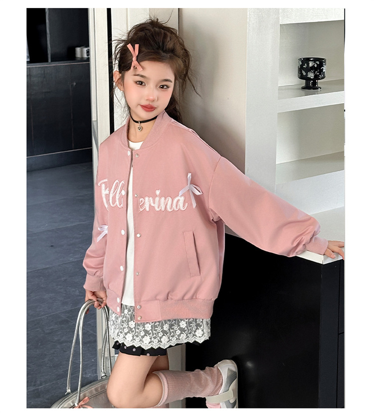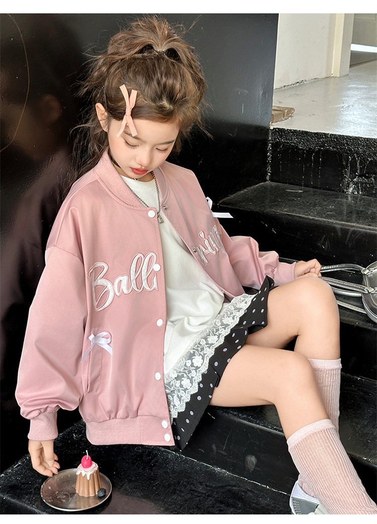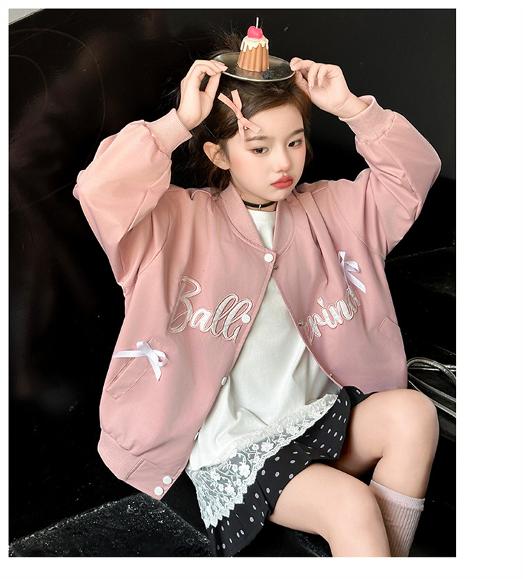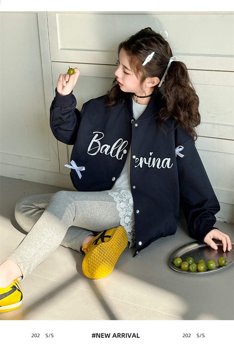 여아 아메리칸 레트로 레터링 자켓 2026 봄 신상 한국 스타일 루즈핏 디자인 리본 야구 점퍼 트렌디