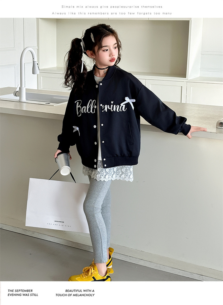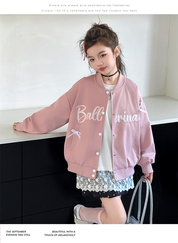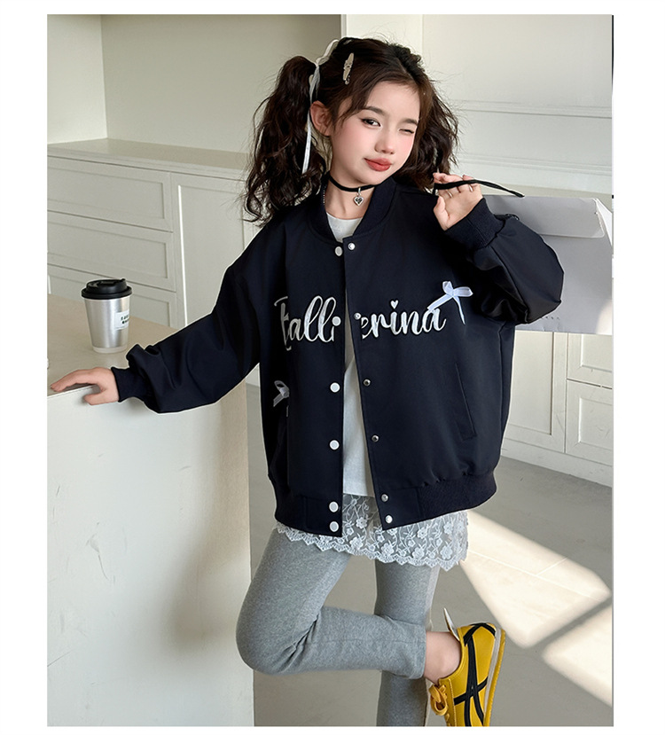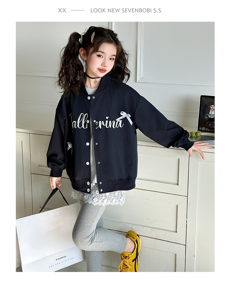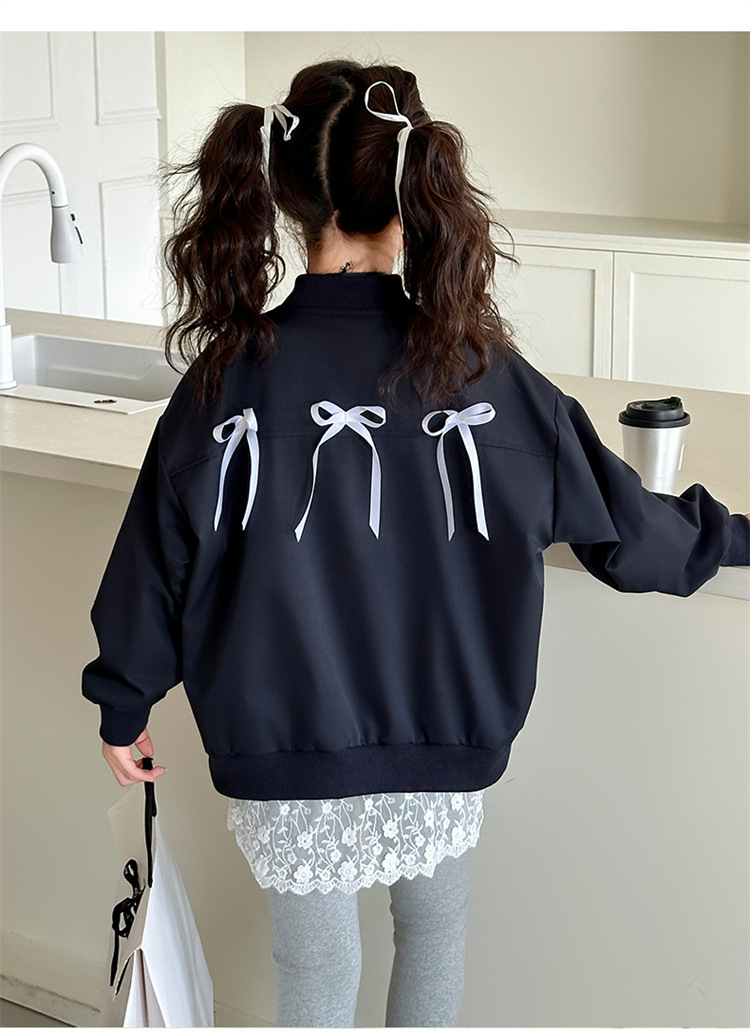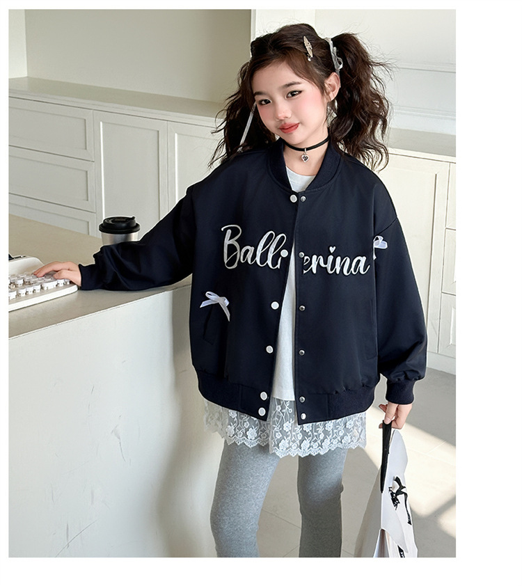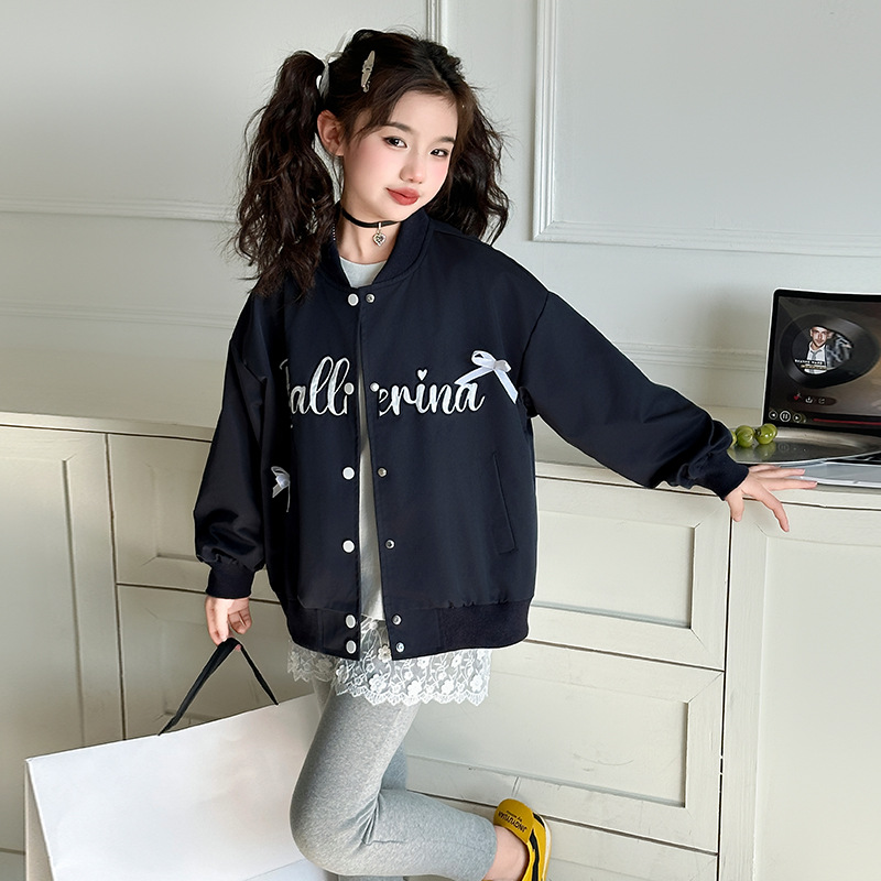 여아 아메리칸 레트로 레터링 자켓 2026 봄 신상 한국 스타일 루즈핏 디자인 리본 야구 점퍼 트렌디