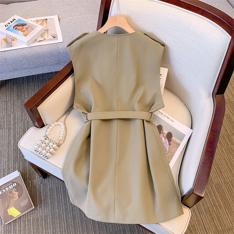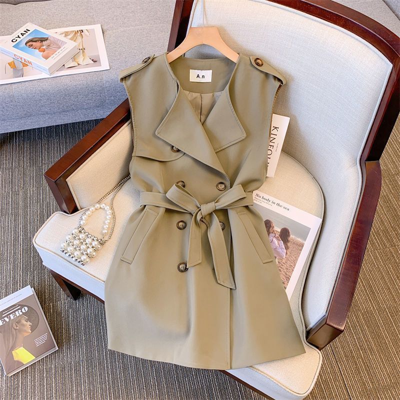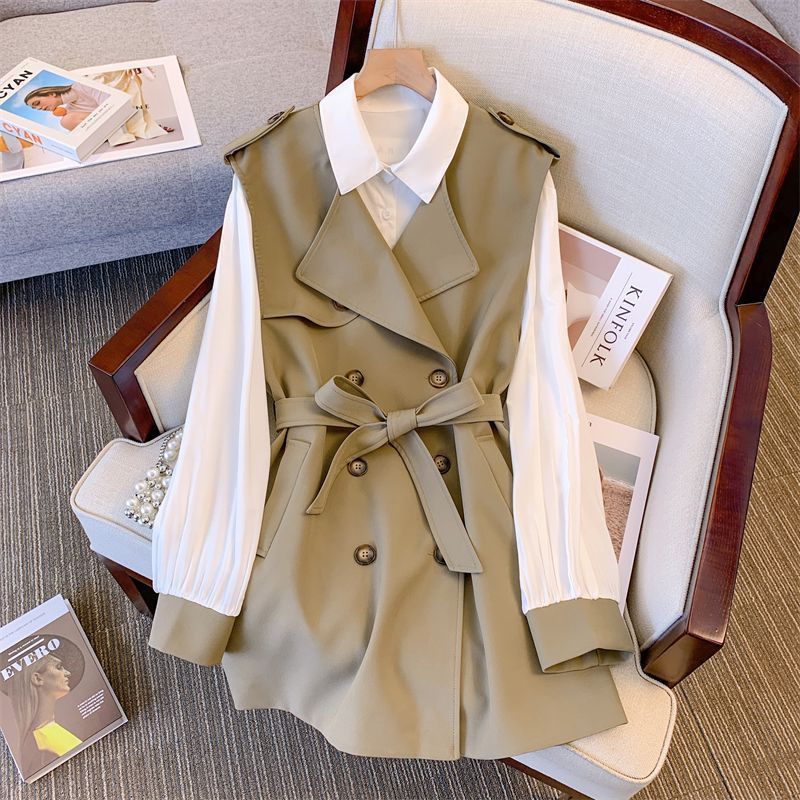 2025 새로운 봄 세트 여성 하이 엔드 센스 패션 캐주얼 작업복 윈드 브레이커 조끼 셔츠 투피스 조끼 여성