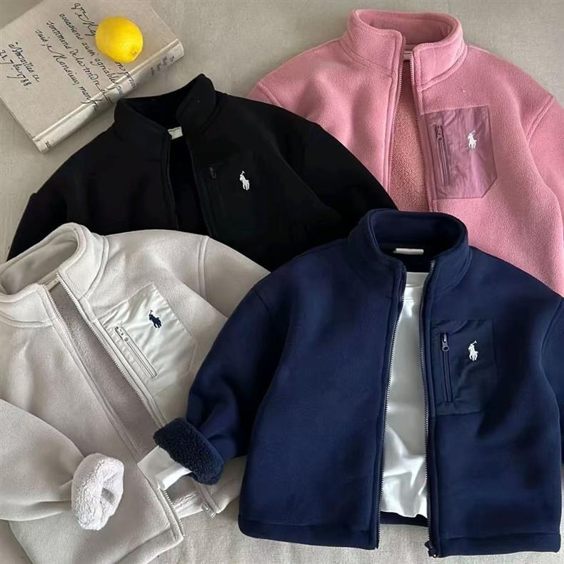 어린이용 양털 스웨터 양면 플리스 남녀공용 겨울 단색 재킷 신축성 있는 코트 보온 코트스토어 가기