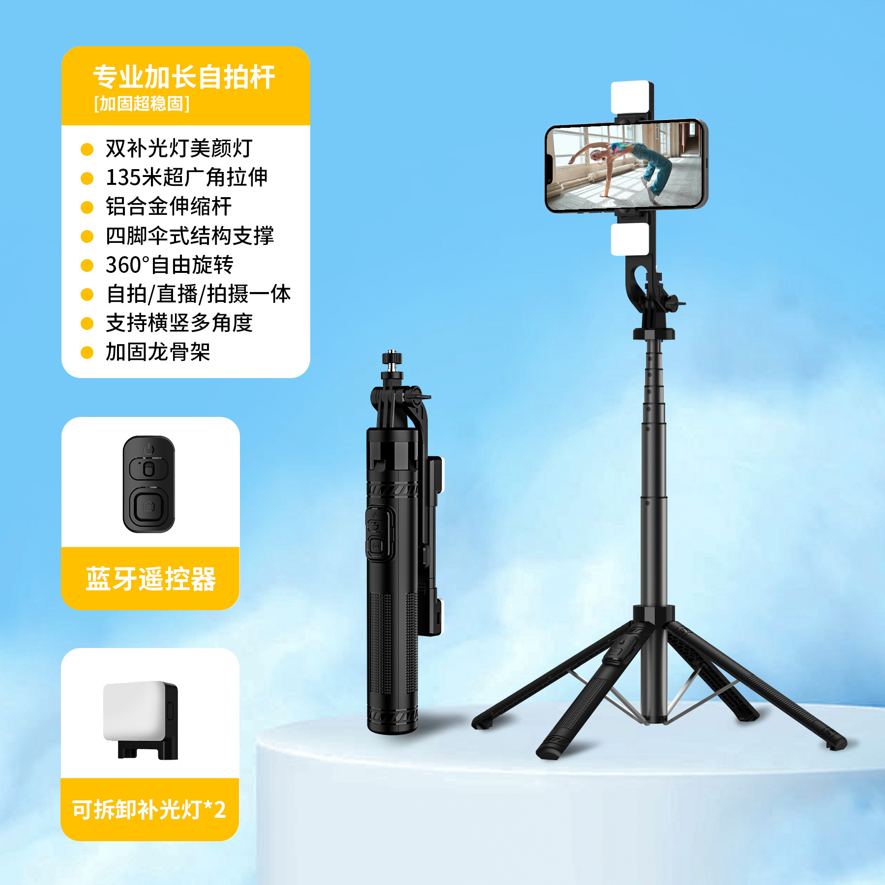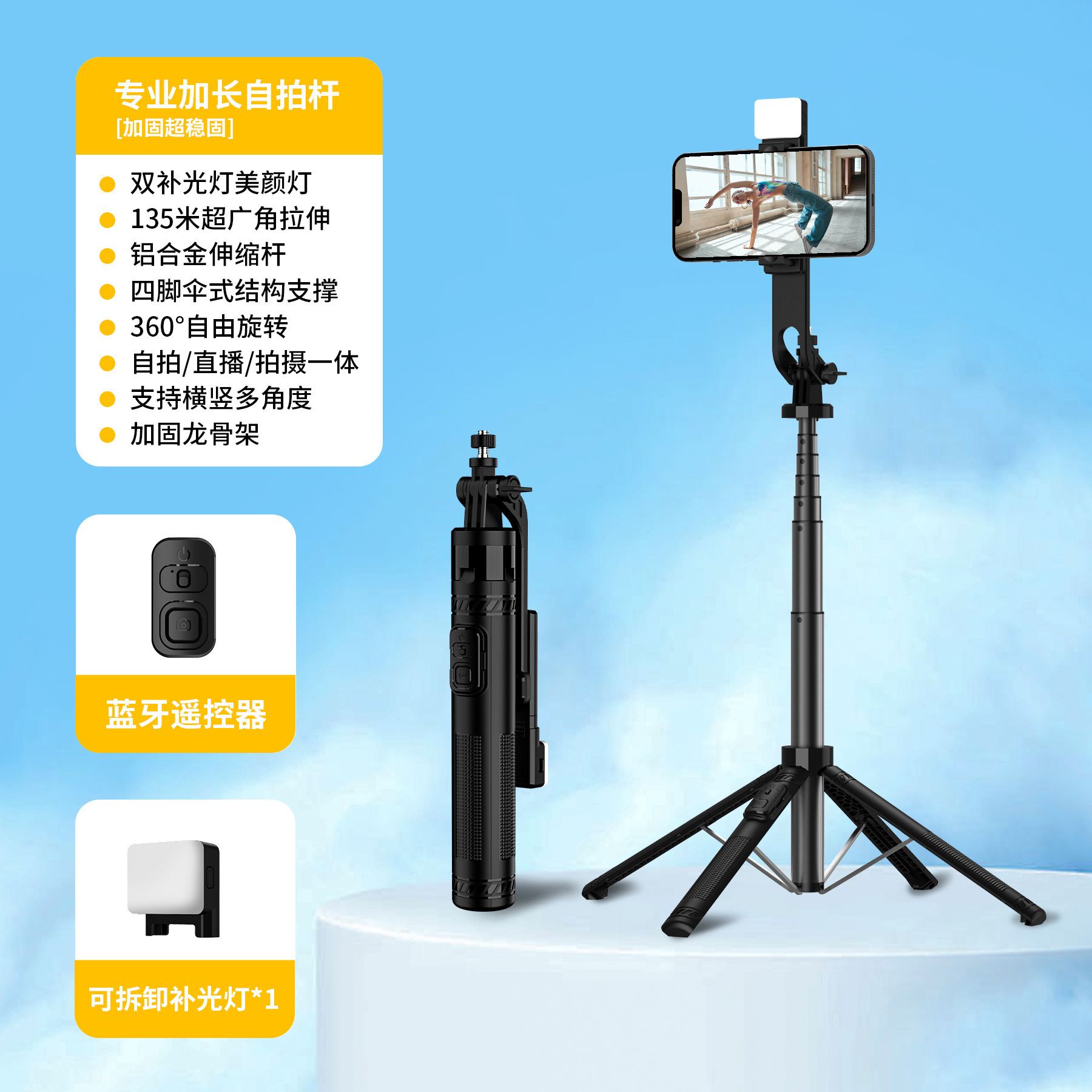 4각 블루투스 셀카봉, 휴대폰 범용 스탠드, GoPro 호환, 안정적인 라이브 방송 스탠드, 핸드헬드 브이로그