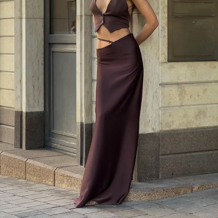 2025 봄 새로운 유럽과 미국의 섹시한 백리스 조끼 하프 할로우 허리 원피스 여성 국경 원피스 헤어