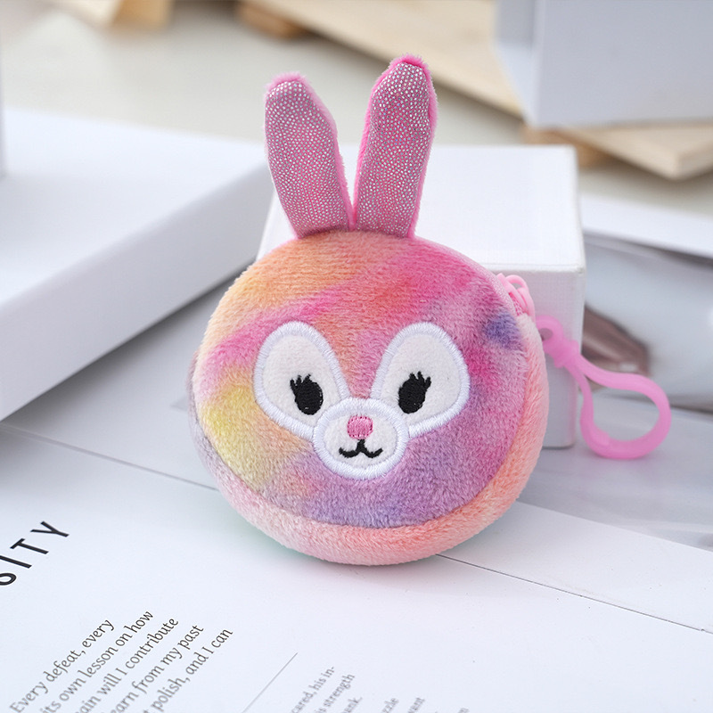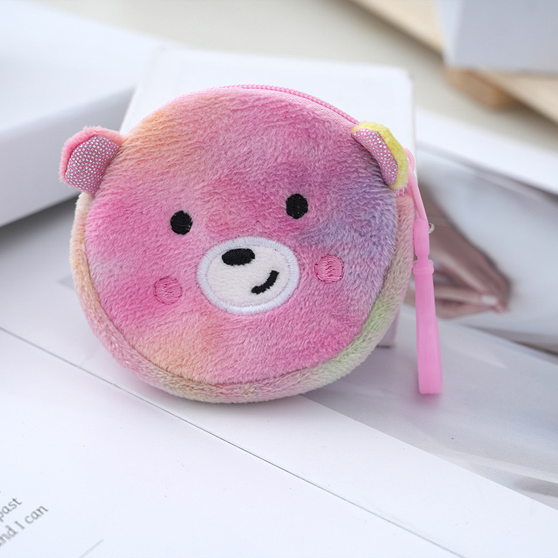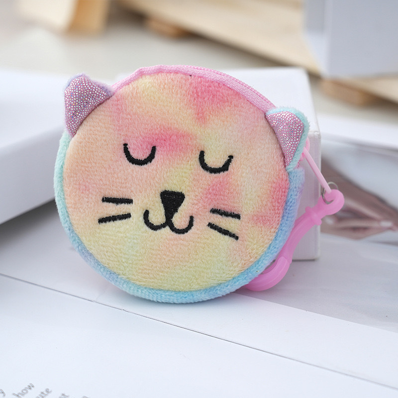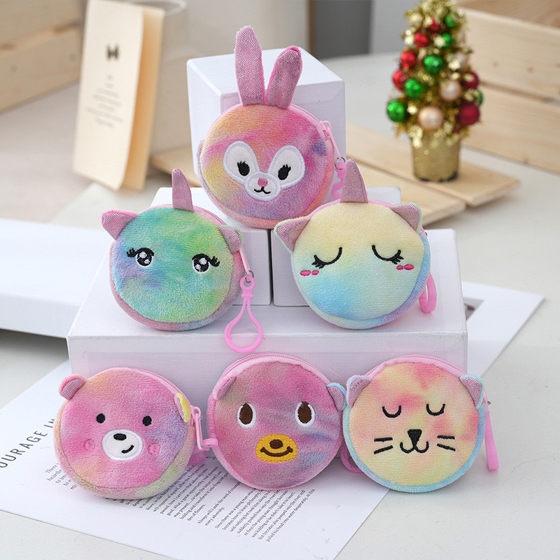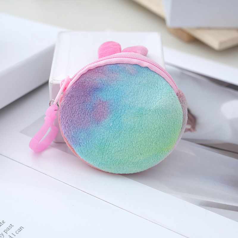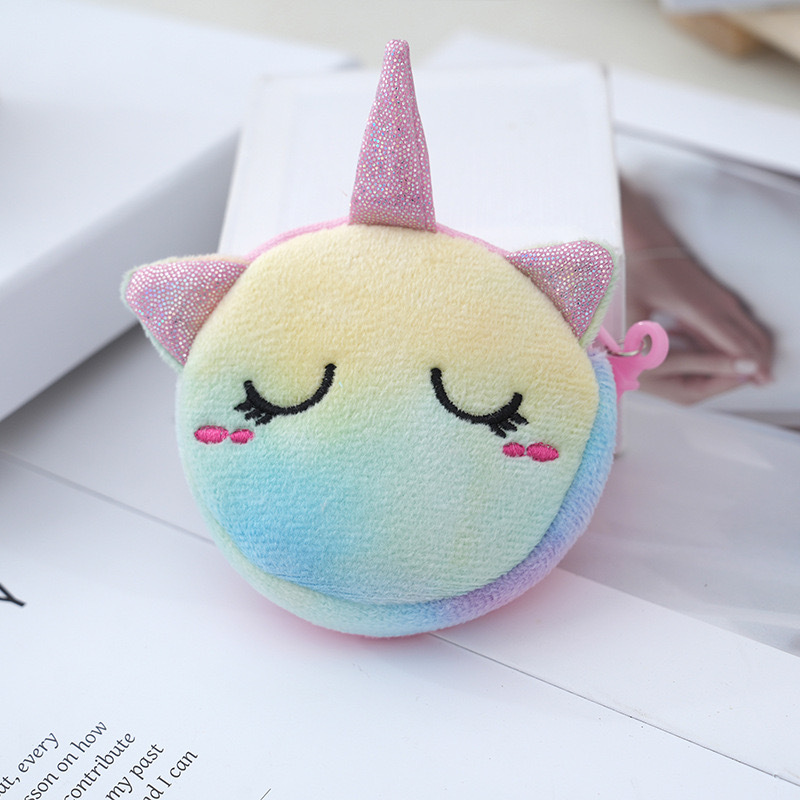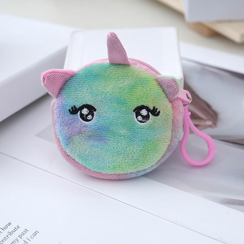 유니콘 플러시 동전 지갑 귀여운 만화 아이스크림 컬러 타이 염색 라운드 지퍼 이어폰 가방 소녀 동전 지갑