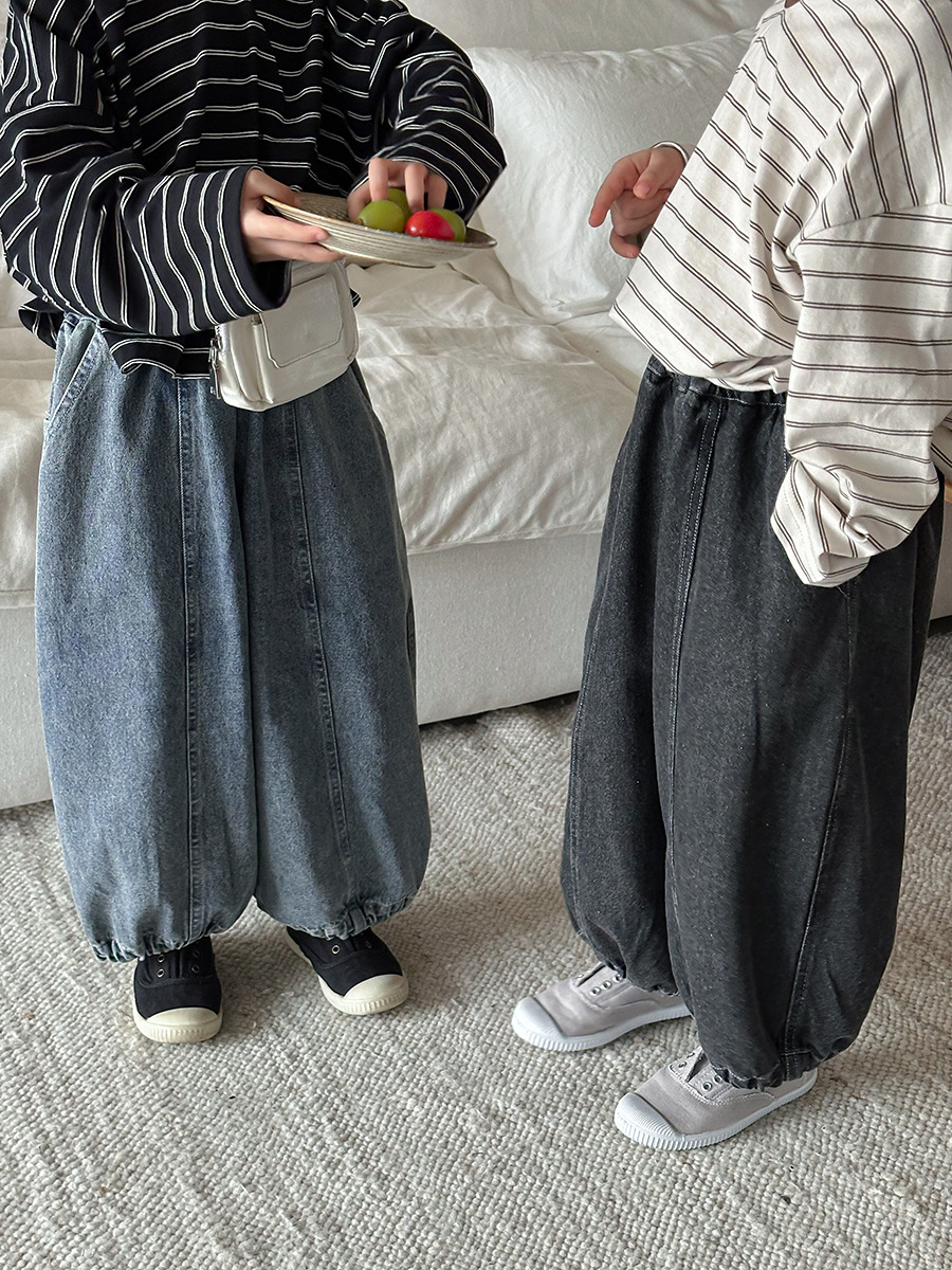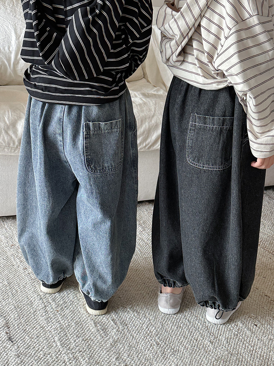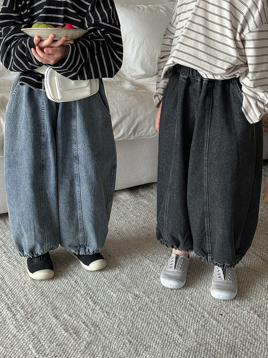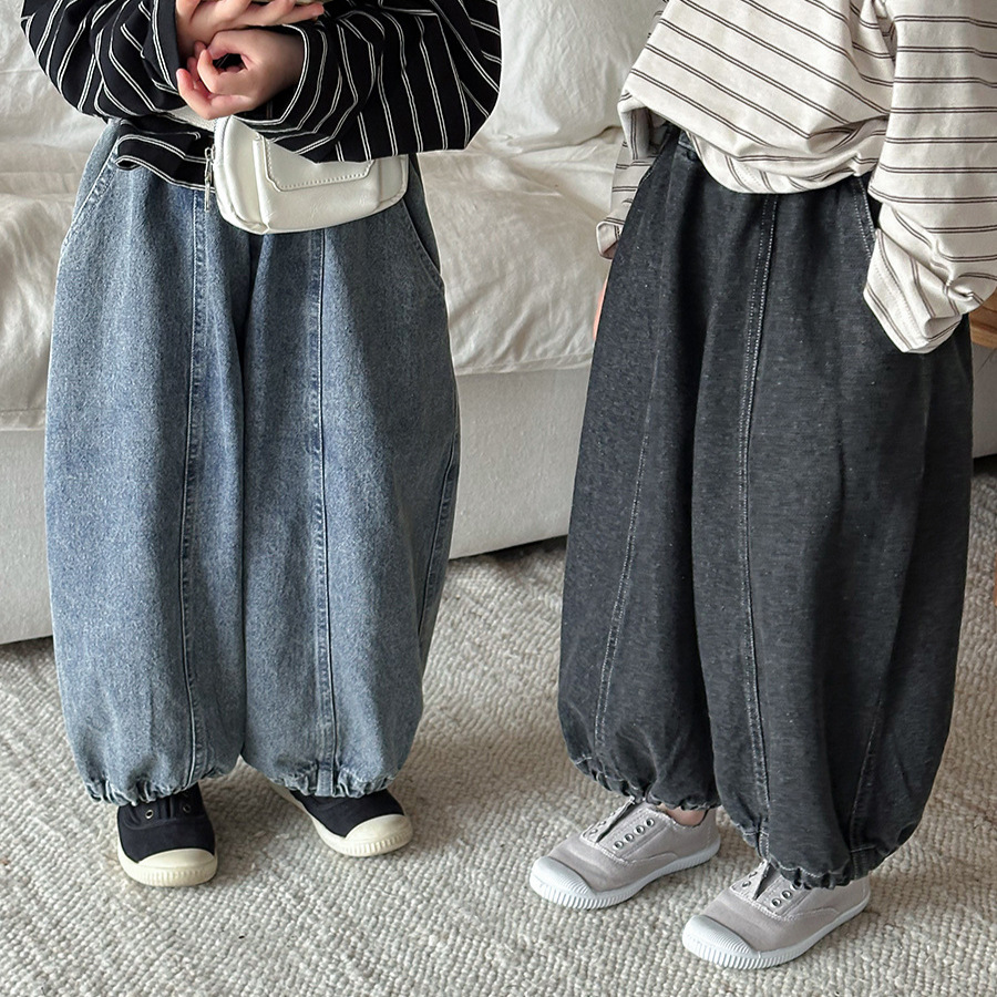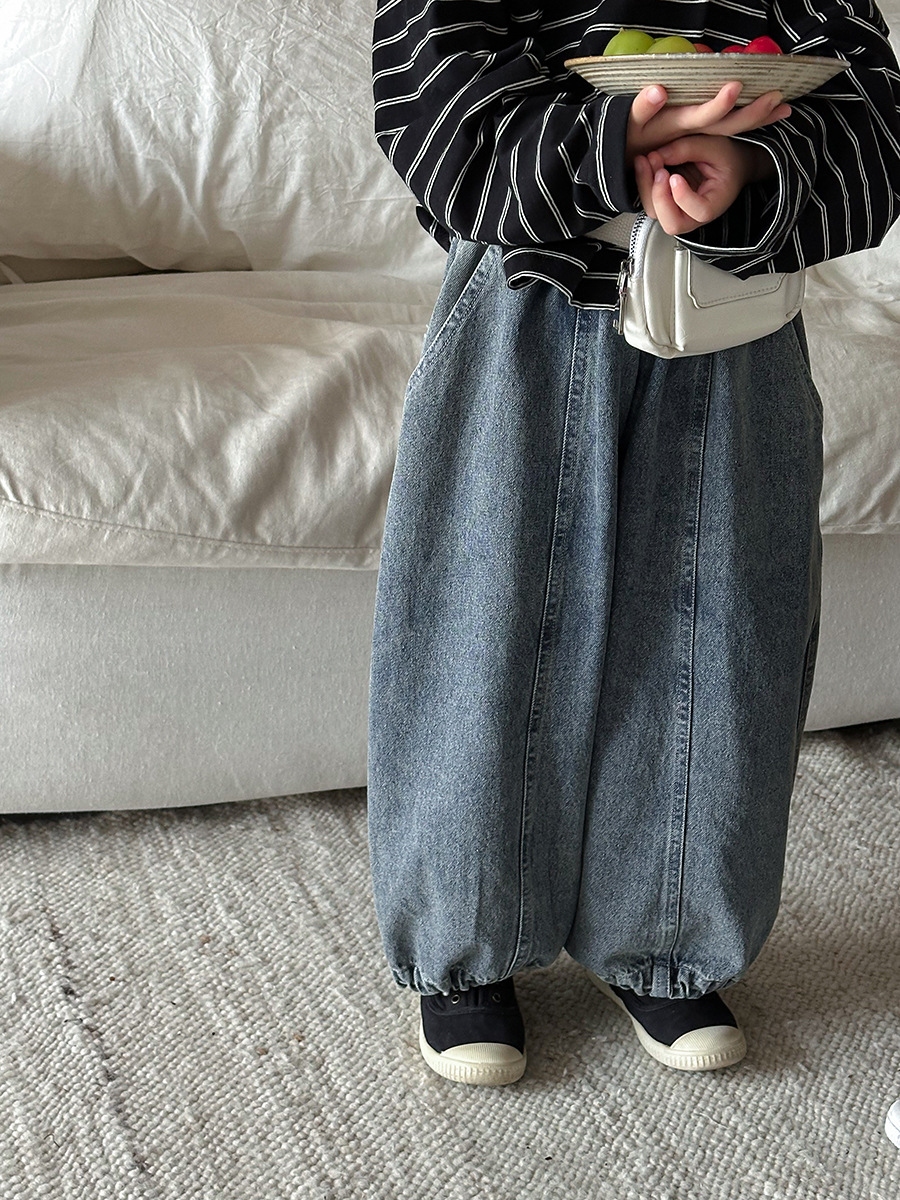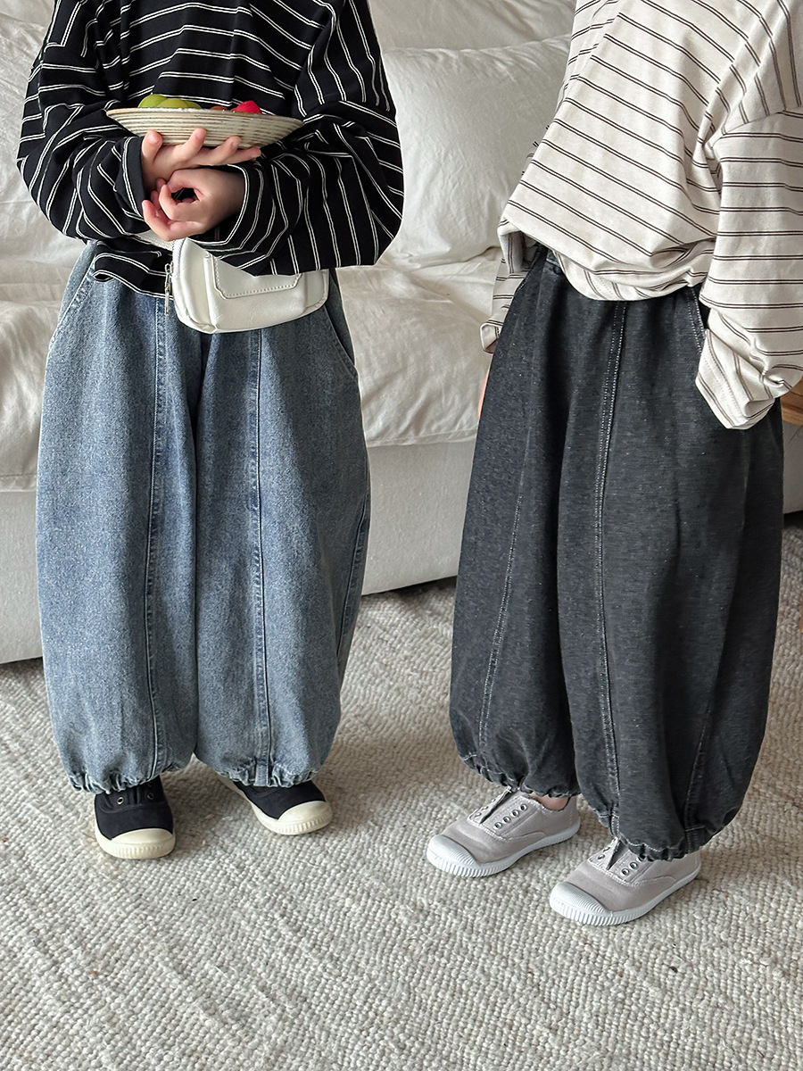 JiaYe 어린이 제품 2026년 봄 신상품 데님 바지 남녀 아기용 배색 루즈핏 캐주얼 랜턴 팬츠