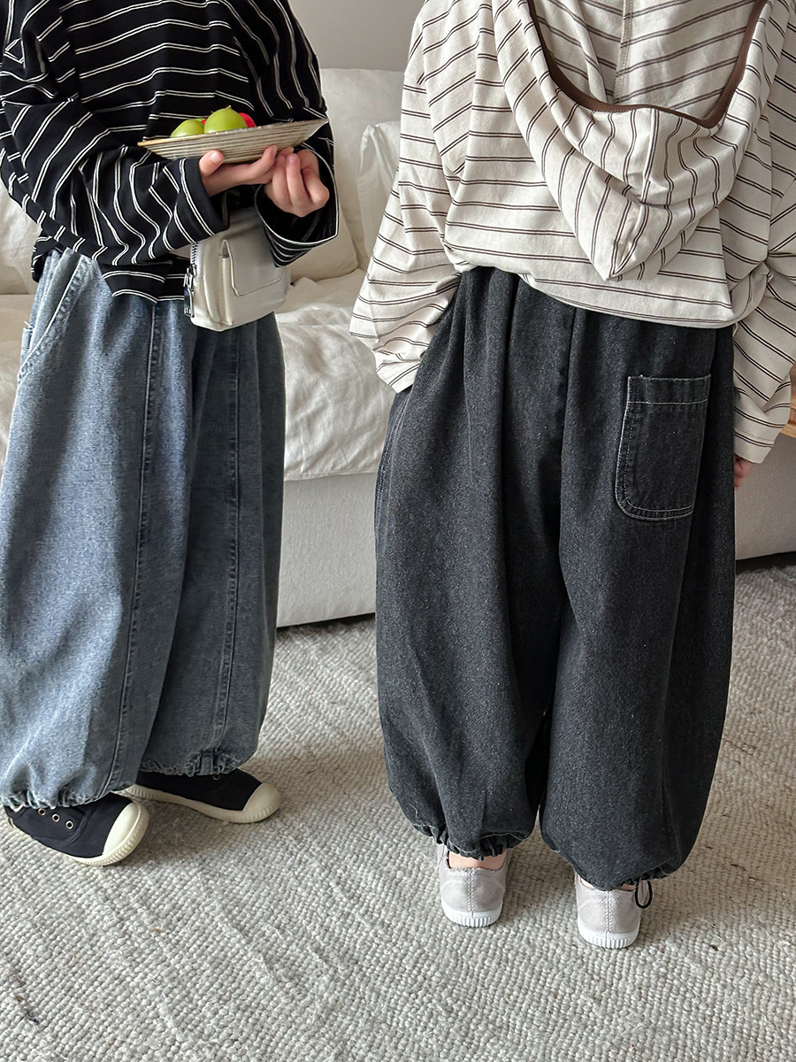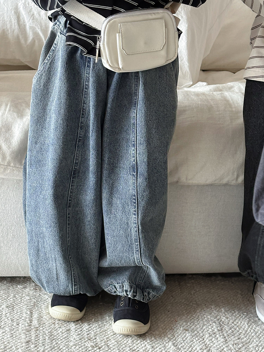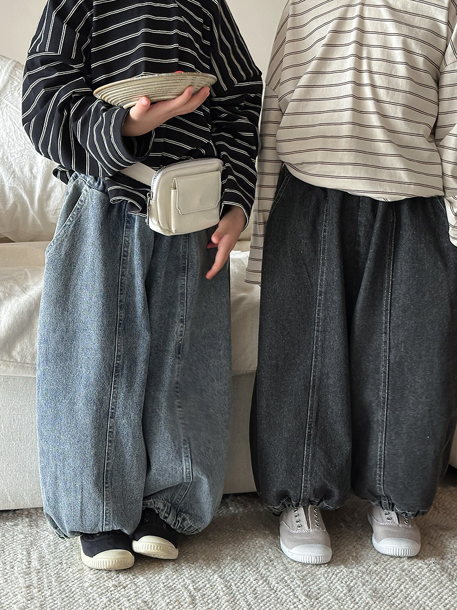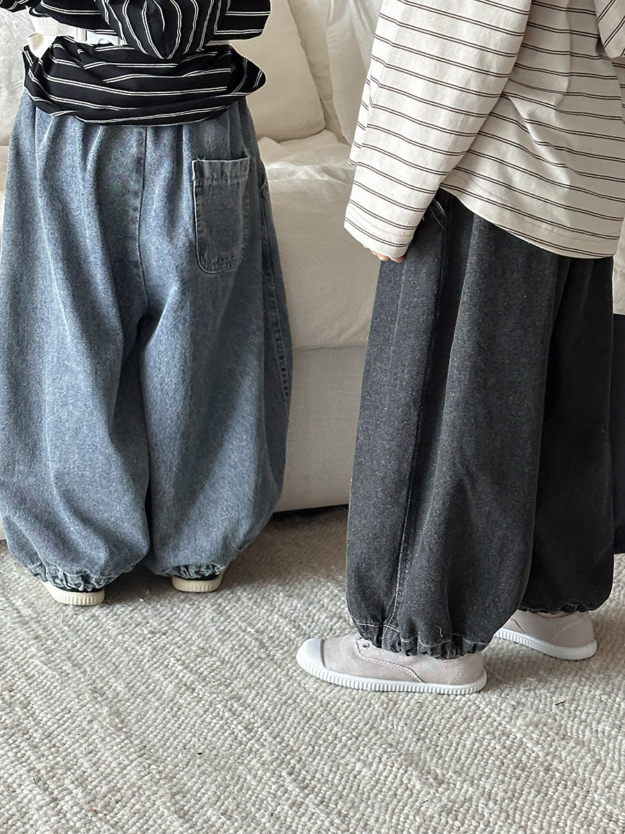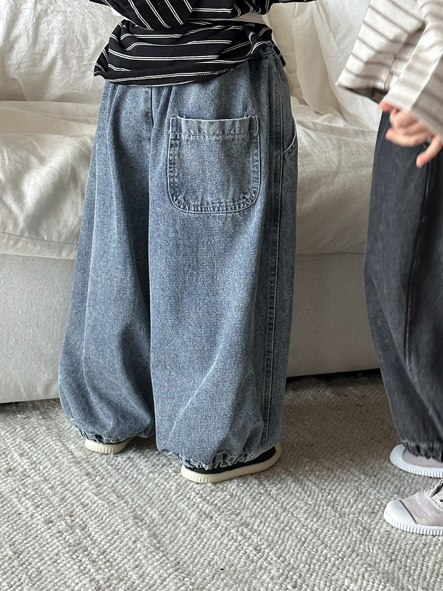JiaYe 어린이 제품 2026년 봄 신상품 데님 바지 남녀 아기용 배색 루즈핏 캐주얼 랜턴 팬츠