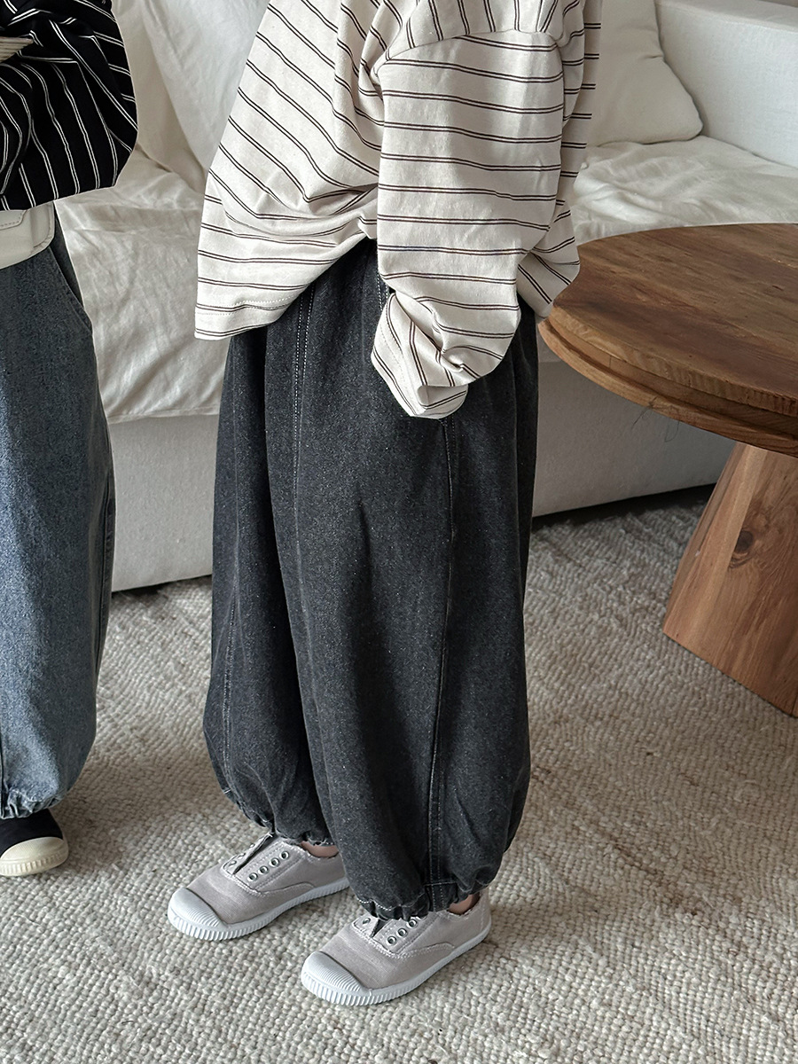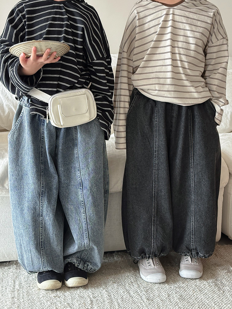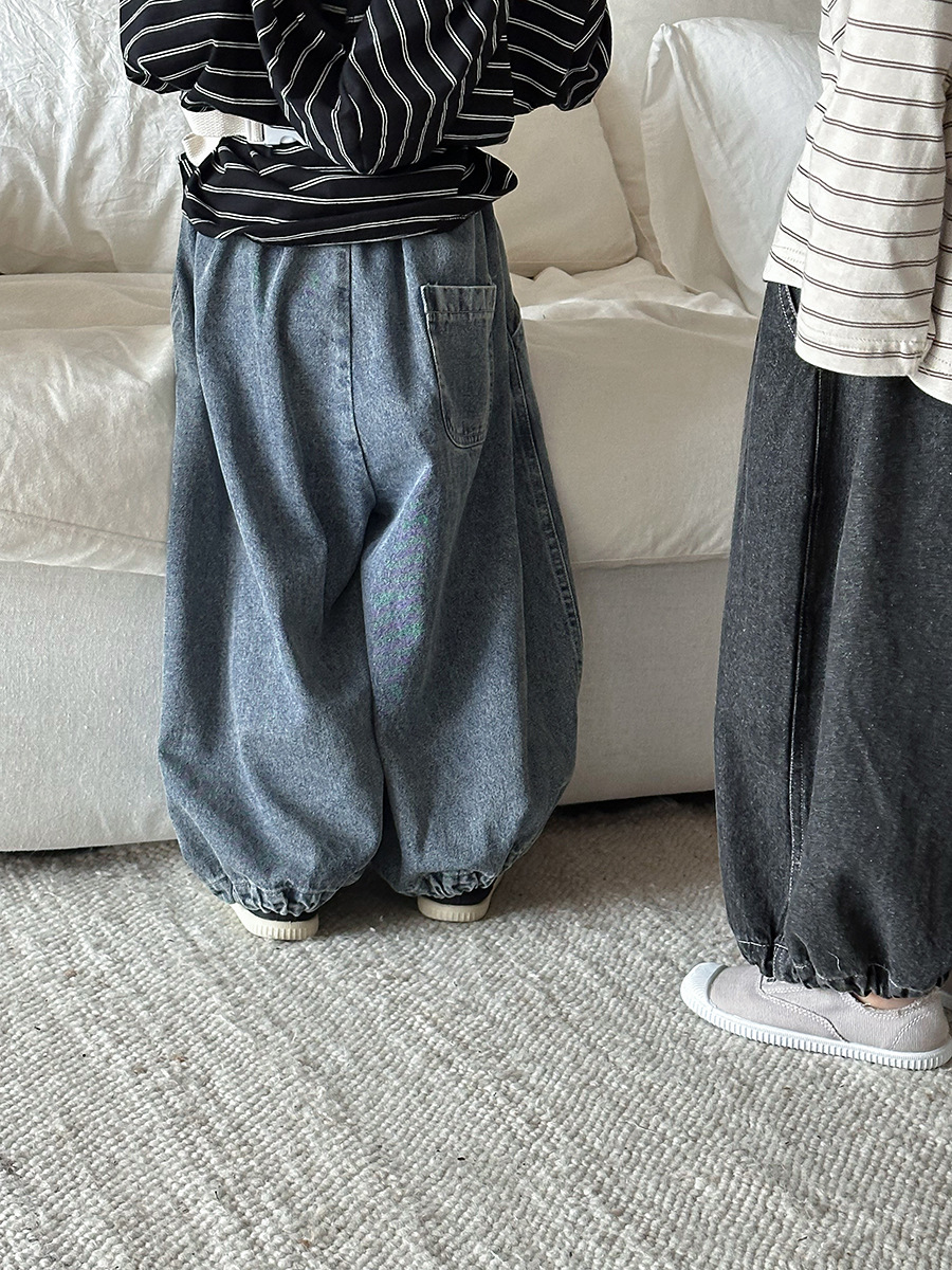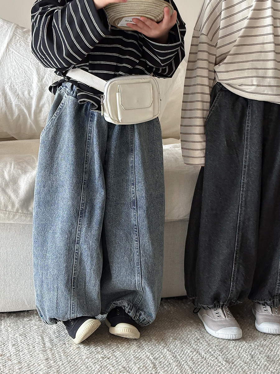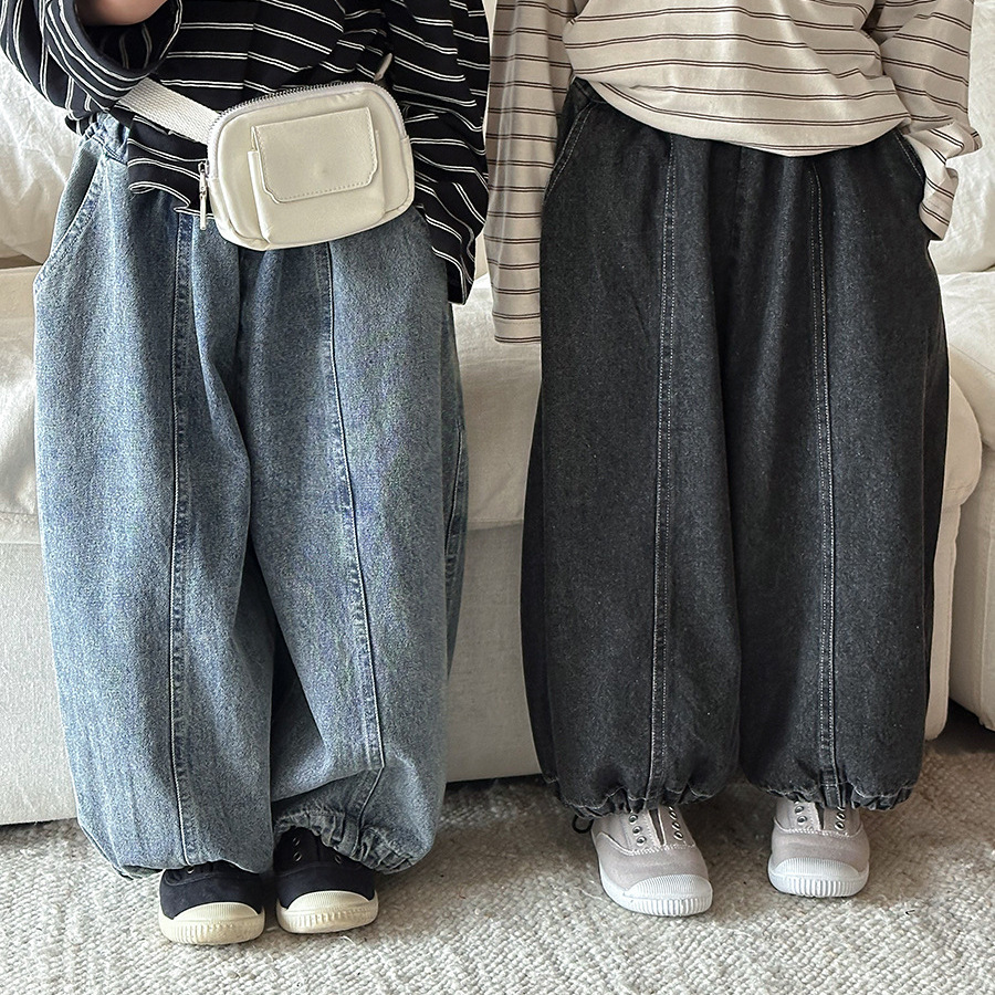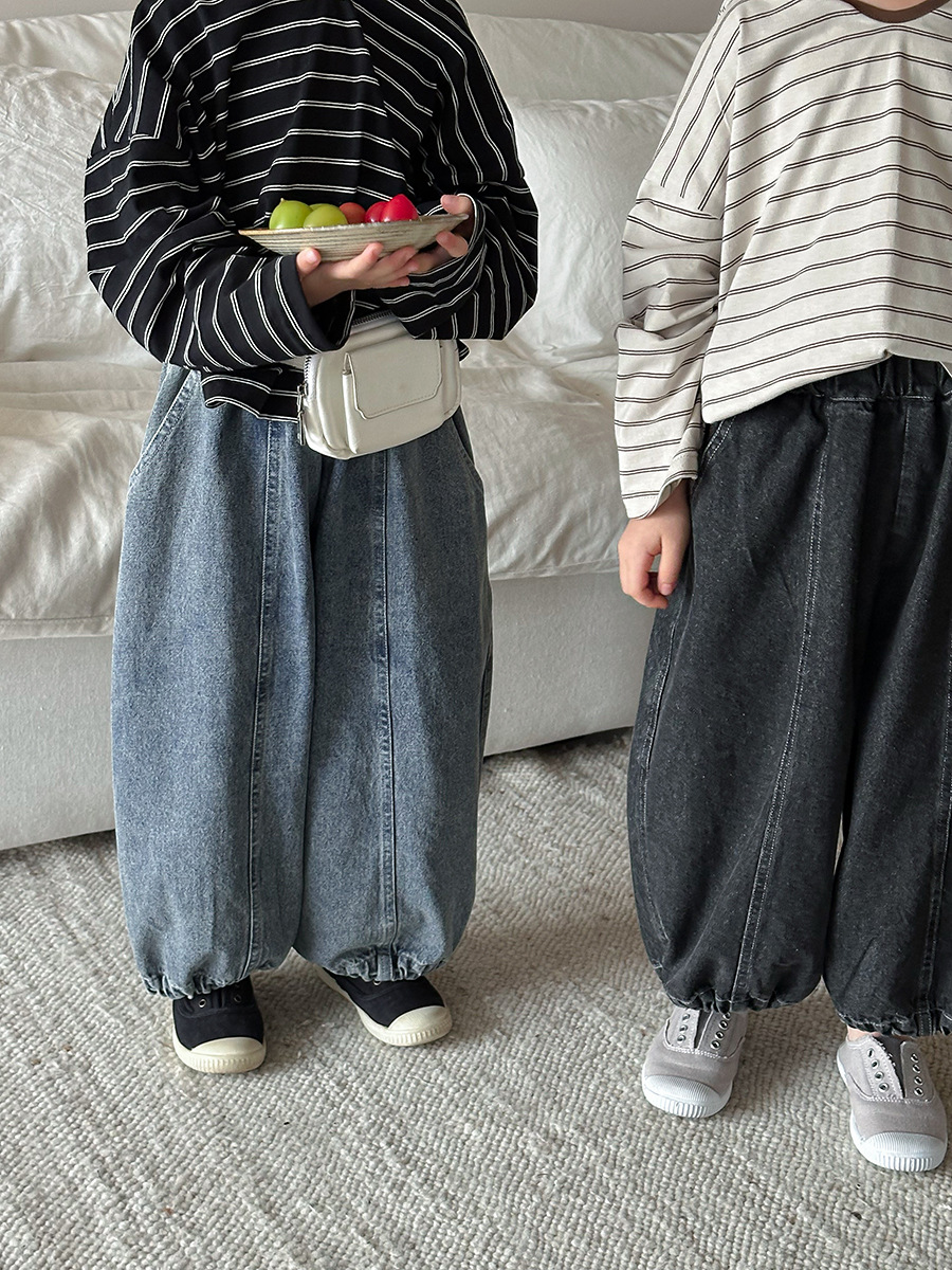 JiaYe 어린이 제품 2026년 봄 신상품 데님 바지 남녀 아기용 배색 루즈핏 캐주얼 랜턴 팬츠