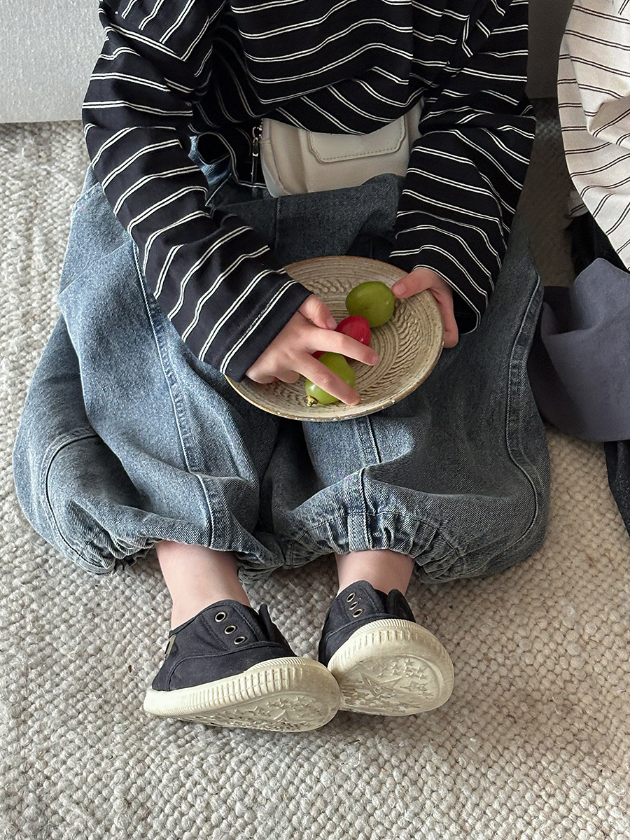 JiaYe 어린이 제품 2026년 봄 신상품 데님 바지 남녀 아기용 배색 루즈핏 캐주얼 랜턴 팬츠스토어 가기