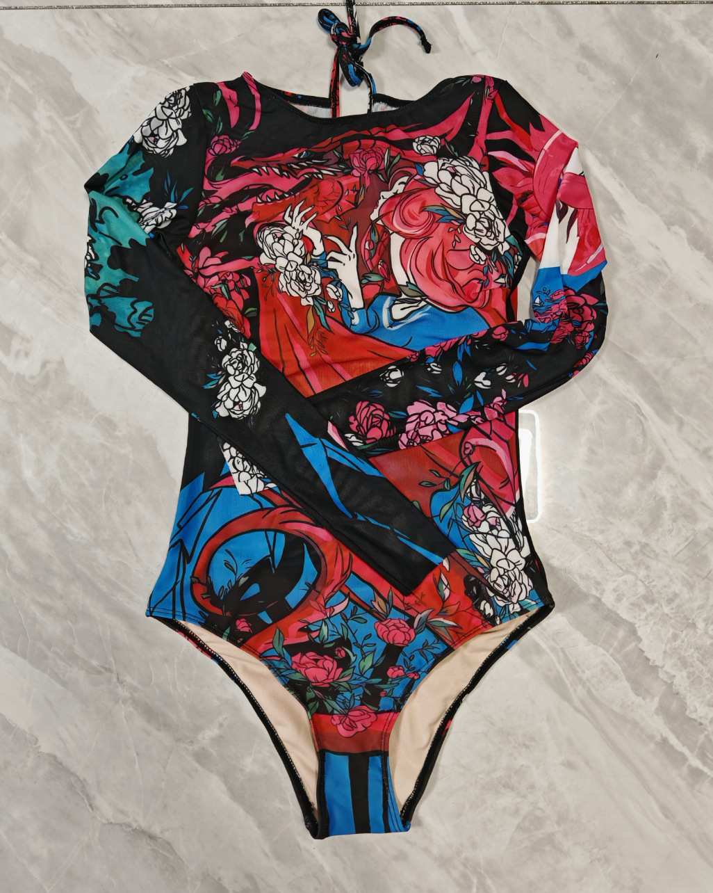 러시아산, 다양한 색상의 메쉬 자외선 차단 원피스 수영복, 섹시한 긴팔 여성 수영복, 컵 없음
