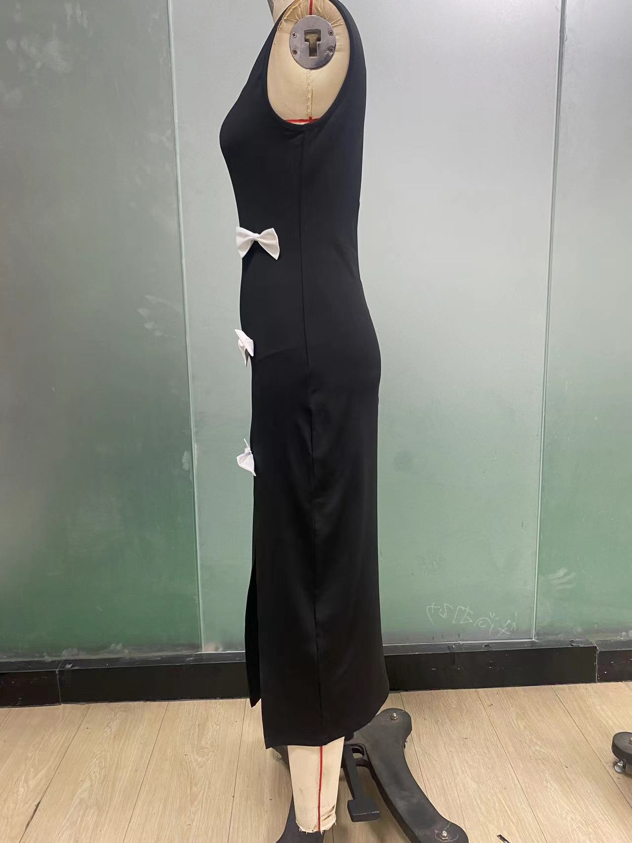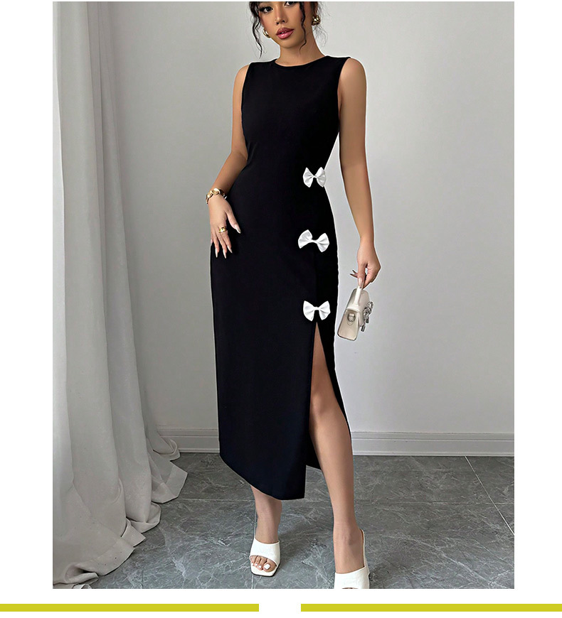 Ruihuo 국경 간 대외 무역 독립 스테이션 유럽과 미국 드레스 2025 가을 슬림 보우 민소매 슬릿 원스텝 스커트